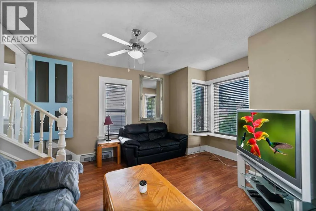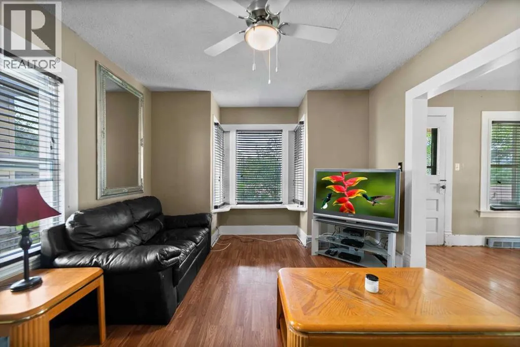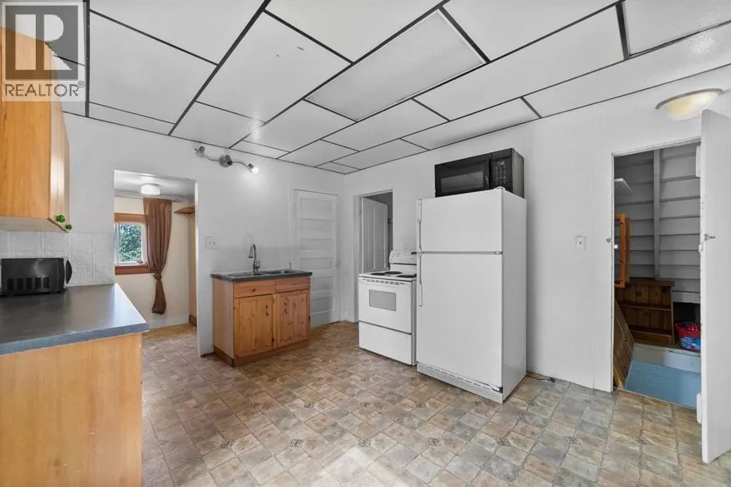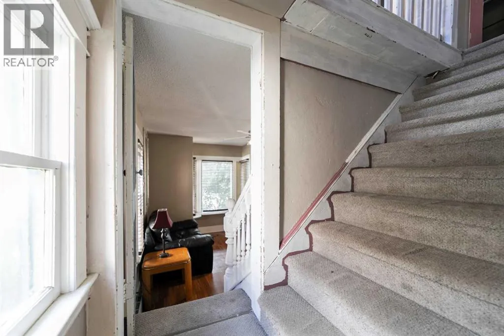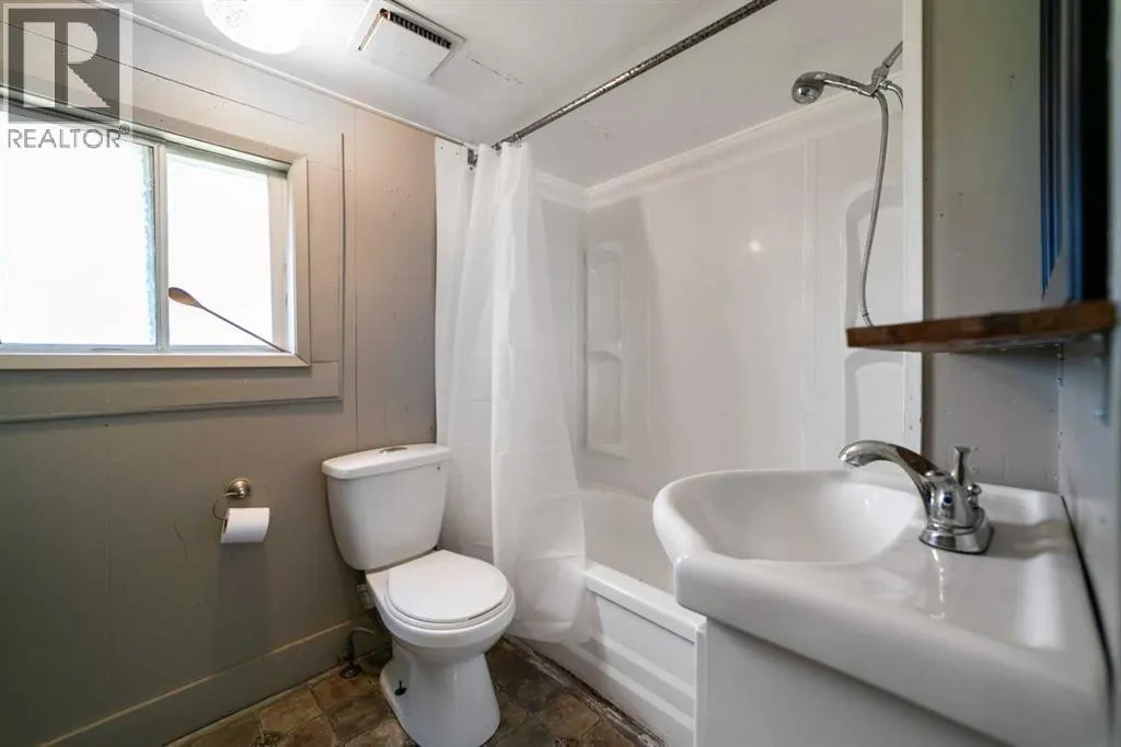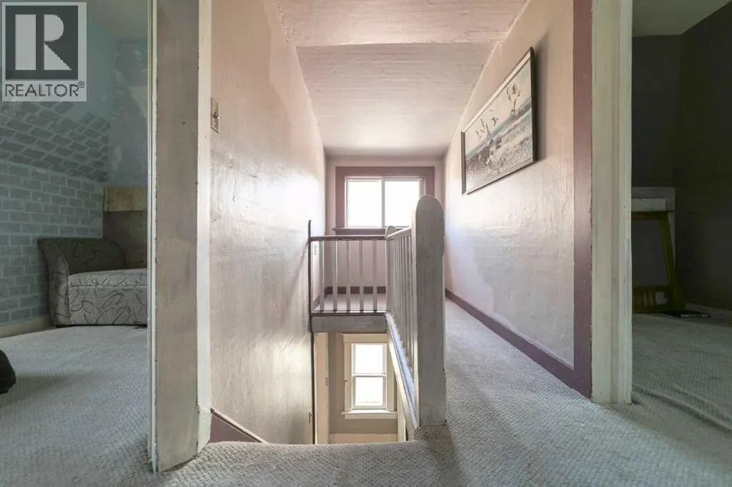 Step into timeless charm with this 1.5-story home built in 1917, ideally located in the welcoming community of Hardisty, Central Alberta. Set on a generous double lot overlooking scenic walking trails, this property offers the perfect balance of character, space, and small-town living. Inside, the home showcases original wood trim, solid wood doors, and hardwood flooring hidden beneath the carpetâready for your personal touch. The main floor offers a spacious kitchen with ample room to customize with additional cabinetry or counter space. The open-concept dining and living room areas create a warm and inviting space for gatherings. Youâll also find a convenient main floor bedroom and a 4-piece bathroom that includes laundry for added practicality. Upstairs, three more bedrooms provide room for family or guests. The basement is clean, dry, and ideal for storage, hobbies, or future development. Outdoors, enjoy the peace and privacy of a fully usable yard complete with mature trees, including a fruit-bearing apple tree, a firepit area, a detached single-car garage, and a handy garden shed. Located in a vibrant town with its own lake, golf course, campground, grocery store, bank, hospital, and local shoppingâthis is small-town living with big-time amenities. Whether you're a first-time buyer, investor, or looking for a place with character and potential, this gem in Hardisty is one to see! (id:27476)