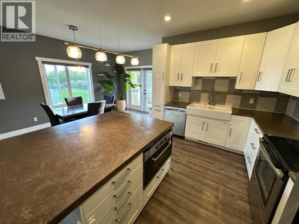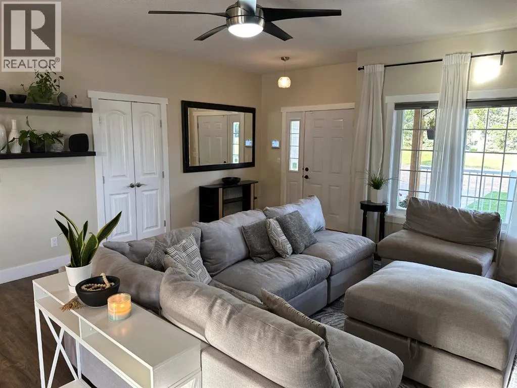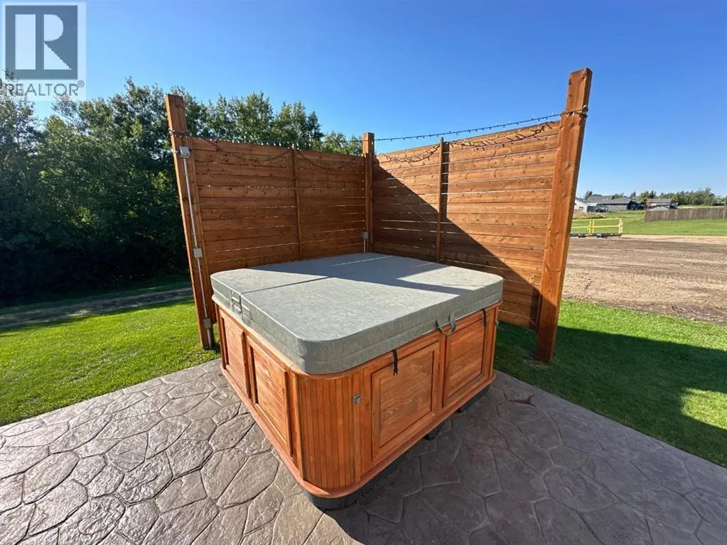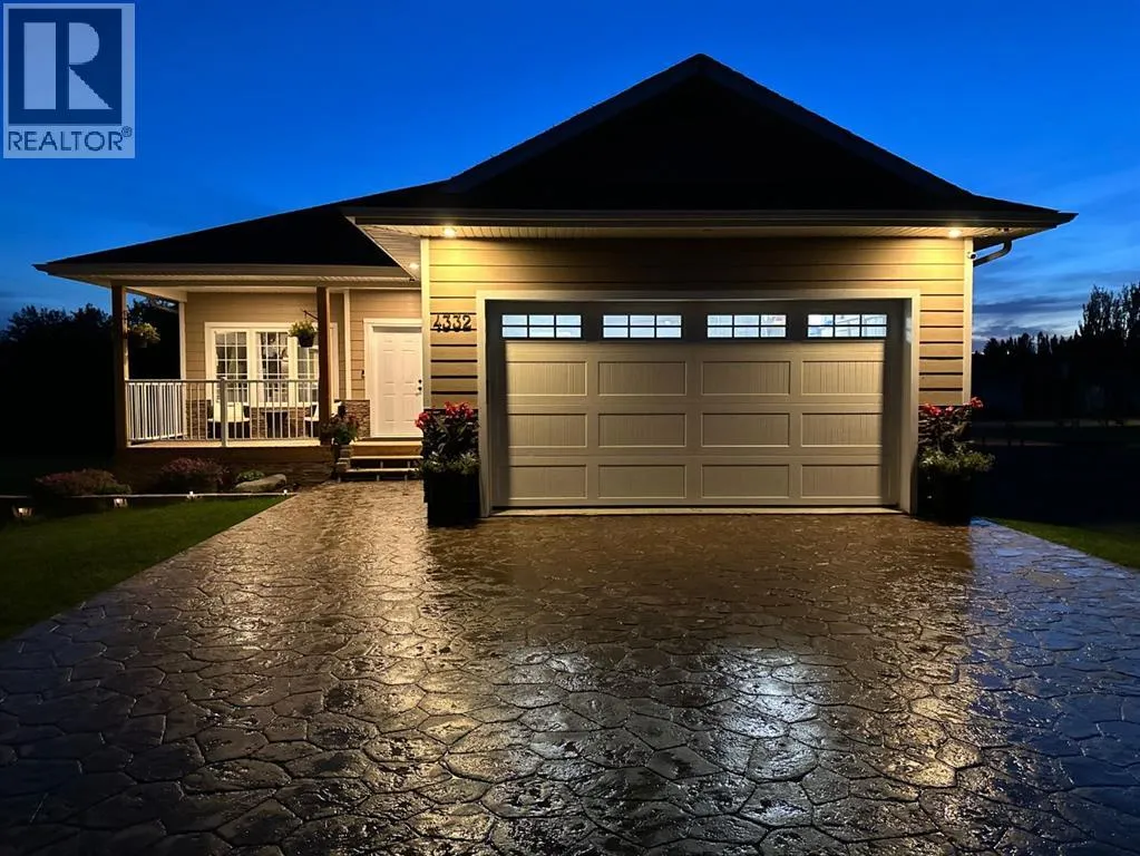Welcome to 4332 51 Avenueâwhere comfort, quality, and thoughtful upgrades come together in one exceptional property.From the moment you arrive, the beautifully landscaped yard and impressive stamped concrete driveway set the tone. The double attached garage is a standout feature on its own, complete with epoxy floors, hot and cold hose bibs, a remote-controlled fan system, motion-sensor exhaust, air intake fan, sink, and even a urinalâperfect for hobbyists, mechanics, or anyone who appreciates a well-equipped workspace.Step inside and be greeted by a bright, open-concept main floor that seamlessly connects the living room, dining area, and kitchen. The living room offers abundant natural light, a thermostat-controlled gas fireplace, and remote-controlled ceiling fans. The modern kitchen is designed for both function and style, featuring sleek appliances, USB outlets, generous cabinetry, and a spacious island ideal for meal prep and gathering.The main floor continues with a convenient laundry room, a comfortable secondary bedroom, and a beautiful primary suite complete with a spa-inspired ensuiteâhighlighted by a deep soaker tub and refreshing rain shower.The fully finished lower level expands your living space with an additional kitchen, cozy living room, a full 4-piece bathroom, and two more well-sized bedrooms. The utility room provides peace of mind with on-demand hot water, a water softener, and a high-efficiency furnace.The backyard is truly the showstopper. Enjoy the cedar deck with aluminum railingâperfect for morning coffee or summer BBQs. The deck leads to a stamped concrete patio featuring a hot tub with a private screened enclosure and dedicated plug-ins. Beside it, a large fireplace pad creates the perfect outdoor retreat for relaxing or entertaining year-round.Homes like this donât come along oftenâpacked with features, beautifully maintained, and move-in ready. A must-see! (id:27476)