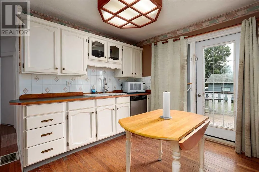 CLASSIC CHARACTER IN HAY LAKES! Come see the potential that this one and a half storey gives you. Primary bedroom on the main floor along with your full, 4 piece bathroom. Upstairs offers you more bedrooms along with a 2 piece bathroom. Basement is an empty canvas ready for your finishing touches. Fully fenced back yard, great for those with kids and/or dogs. Double detached garage a huge bonus. Conveniently located 30 minutes from Sherwood Park and just 20 from Camrose. (id:27476)