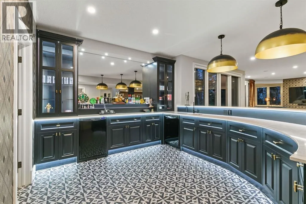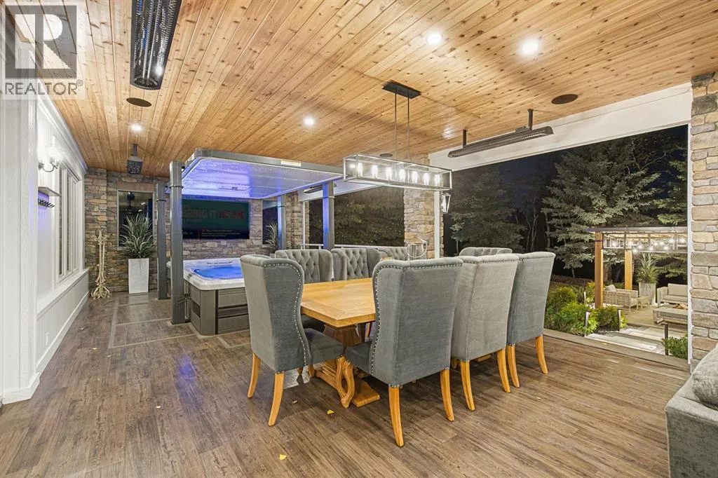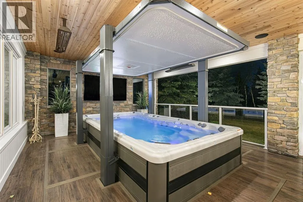 Welcome to this stunning executive bungalow located on one of the most coveted streets in Pinehurst, just south of Calgary and backing the Heritage Pointe Golf Course wooded area. Completely renovated from top to bottom, this exceptional residence offers over 6,200 sq. ft. of luxurious developed living space designed for both comfort and entertaining. Set on a private .86-acre treed lot, the home features an incredible outdoor oasis complete with a three-season room, accessible by acordian doors, a swim spa, and multiple spaces to relax or host gatherings surrounded by nature. Inside, the open-concept design showcases high-end finishes, soaring vaulted ceilings, and expansive windows that fill the home with natural light and frame stunning views of the professionally landscaped grounds. The chef-inspired kitchen is equipped with premium appliances, perfect for culinary enthusiasts, while the full bar on the main floor makes entertaining effortless, including a wood burning pizza oven. The walkout basement extends the living space with additional areas for recreation, wet bar, added storage, fitness, or relaxation. Also offering an oversized heated triple garage, underground sprinklers, fenced dog run, and every convenience you could ask for. Every detail has been thoughtfully crafted, creating an elegant, modern retreat that perfectly balances sophistication, warmth, and functionalityâan absolute entertainerâs dream in one of the most prestigious communities south of Calgary. (id:27476)