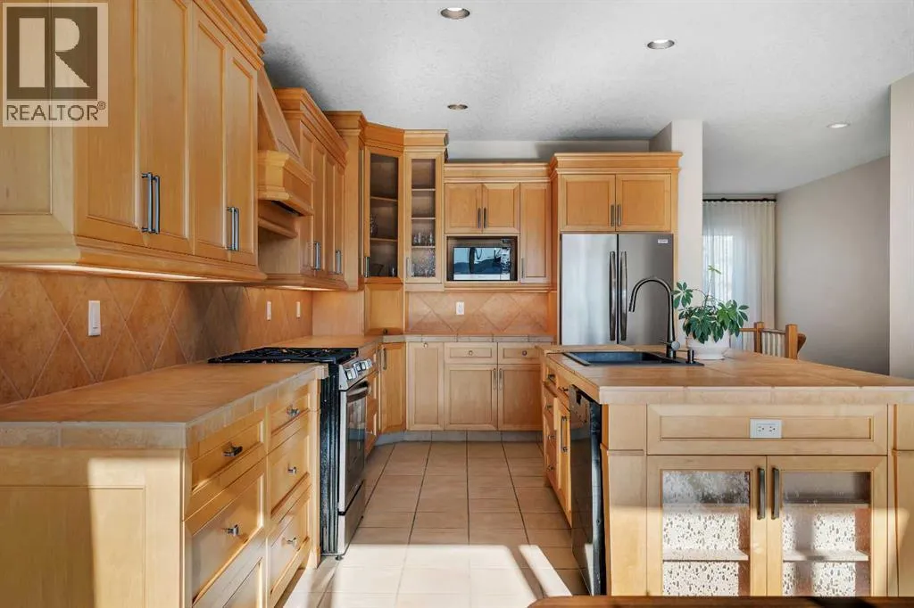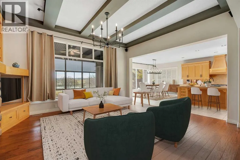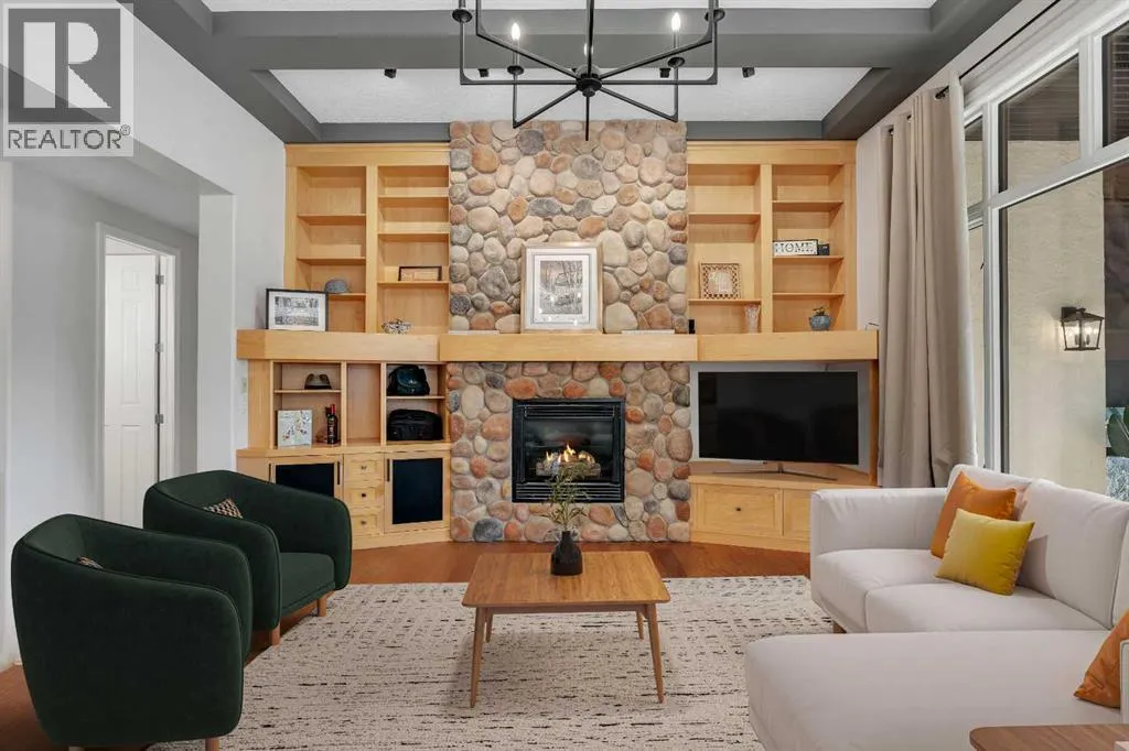 Welcome to this beautifully appointed home in one of Heritage Pointeâs most sought after locations - directly backing onto the 18th hole with tranquil pond views. Combining timeless design with modern charm, this property offers a thoughtful layout filled with upscale finishes and inviting spaces.The open concept main floor is designed for both comfort and entertaining. Soaring ceilings, rich hardwood flooring and expansive windows flood the space with natural light. A striking river rock fireplace serves as the living roomâs focal point, framed by custom built in shelving for both function and style.The chef inspired kitchen features backlit cabinetry, stainless steel appliances (new refrigerator / gas range) and a classic tile backsplash. Adjacent to the kitchen is a spacious dining area, enhanced by a contemporary light fixture and direct access to an impressive 3 season sunroom - perfect for enjoying all of Calgaryâs seasons!Step outside to a large, south facing deck where you can unwind and take in the beautifully landscaped backyard, 18th green and serene pond beyond.Downstairs, the fully finished basement offers a generous rec room, two additional bedrooms and a full bathroom - ideal for guests or family. In floor heating keeps the space warm and comfortable year round.Additional features include two hot water tanks (2018), Central A/C (2018) *Recently Serviced*, Furnace (2018), a BRAND NEW boiler pump and a HEATED GARAGE, ensuring efficiency and comfort throughout the seasons.Just steps away from Launch Pad and the Heritage Pointe Golf Club, pro shop and clubhouse with its highly rated restaurant, this is a rare opportunity to own in an unbeatable setting. (id:27476)