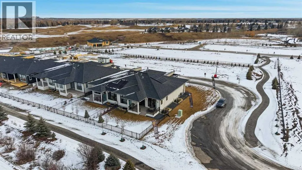 Nestled in the heart of Serenity at Heritage Pointe and backing onto a beautifully landscaped greenspace, this luxurious 3 bedroom, 3.5 bath villa with the Sawyer floorplan has been carefully crafted by RareBuilt Homes & offers over 3200 sq ft of exceptional living space. The open concept main floor impresses with engineered wide plank hardwood, custom tile detailing, 10â ceilings, and a spacious great room with large sliding doors that open to a covered rear deck and private fenced yard. The chef inspired kitchen is equipped with a full KitchenAid appliance package, including a six burner gas cooktop, custom hood fan, refrigerator/freezer, dishwasher, and built in oven with convection microwave. A generous island, ample storage, and thoughtful layout make this kitchen ideal for both everyday living and entertaining. A stylish home office with beam detailing adds both character and functionality. The primary suite provides a serene retreat, complete with a spa inspired 5 piece ensuite featuring heated floors, a freestanding soaker tub, an oversized shower, and a custom walk in closet. The fully finished basement extends the living space with a large recreation room, two additional bedrooms (one with a 3 piece ensuite), a second full bath plus a home gym & infrared sauna. Additional highlights include tilt and turn triple glazed windows, 6 standard solar panels, a high efficiency furnace, heat pump, air conditioning, and radiant in floor heatingâensuring year round comfort and energy efficiency. Outside, enjoy a covered composite rear deck with custom aluminum railing plus a fully landscaped & irrigated yard including ornamental fencing and gate in the rear yard providing access to 2 km of local pathways. Parking is effortless with a fully finished and painted oversized double attached garage complete with epoxy flooring, aggregate driveway and EV charger readiness. Enjoy the freedom of full landscape maintenance and snow removal plus close proximity to Heritage Poin te Golf Club, LaunchPad Golf at Heritage Pointe & easy access to Calgary or Okotoks via highway 2 or 2A. (id:27476)