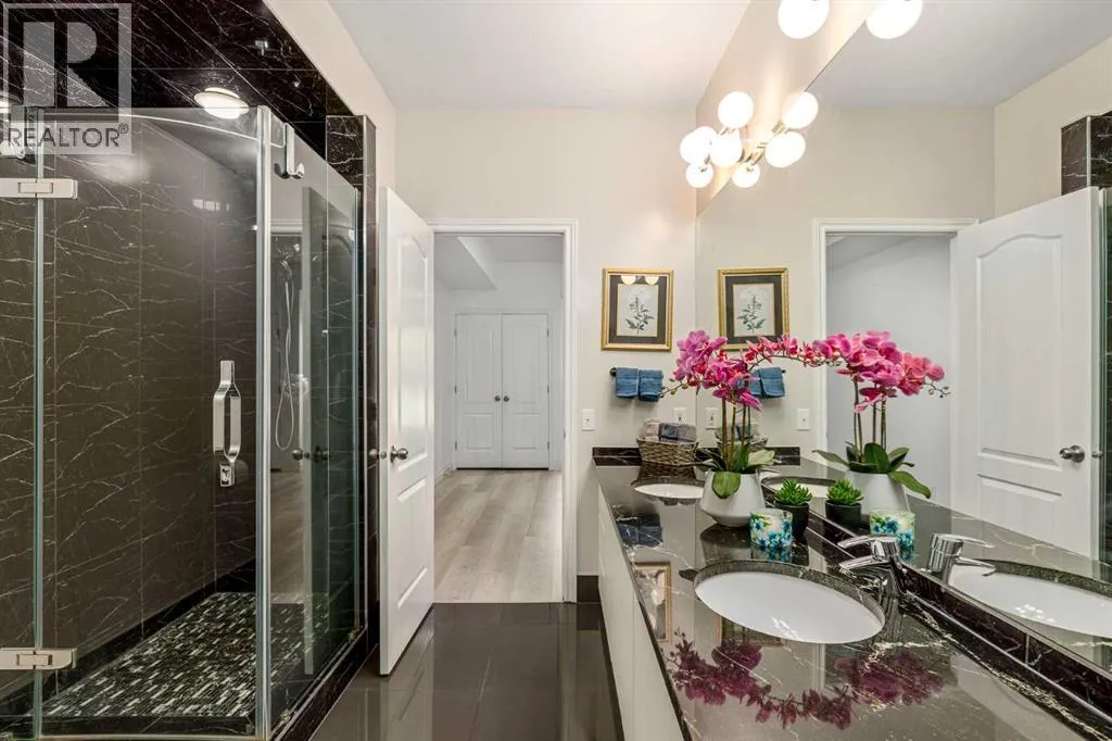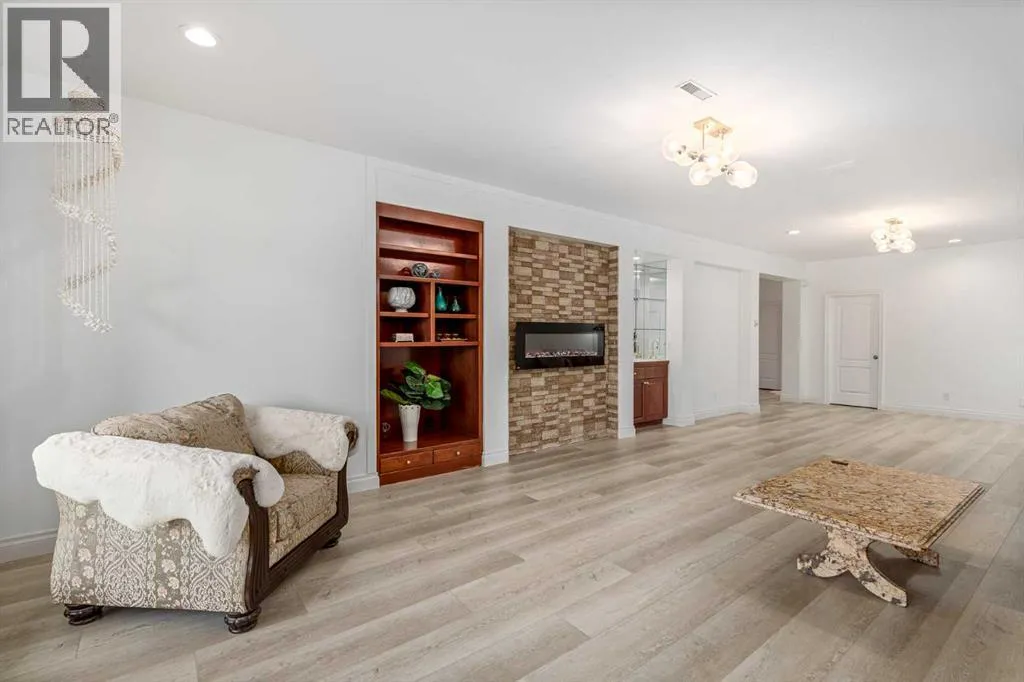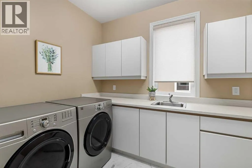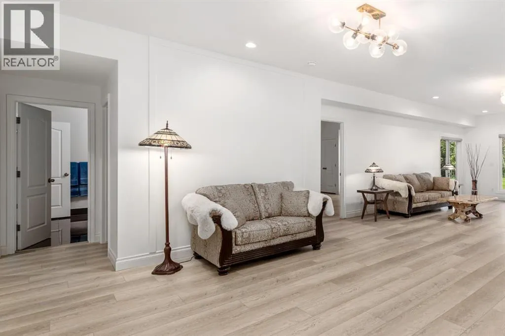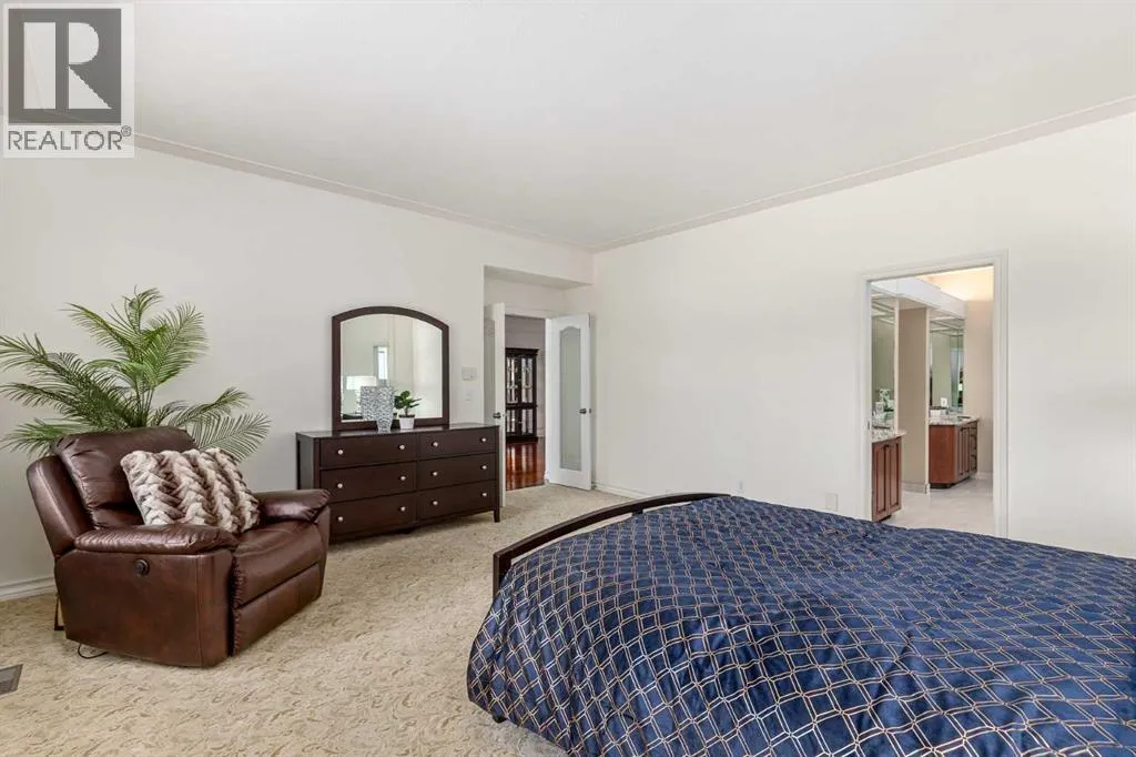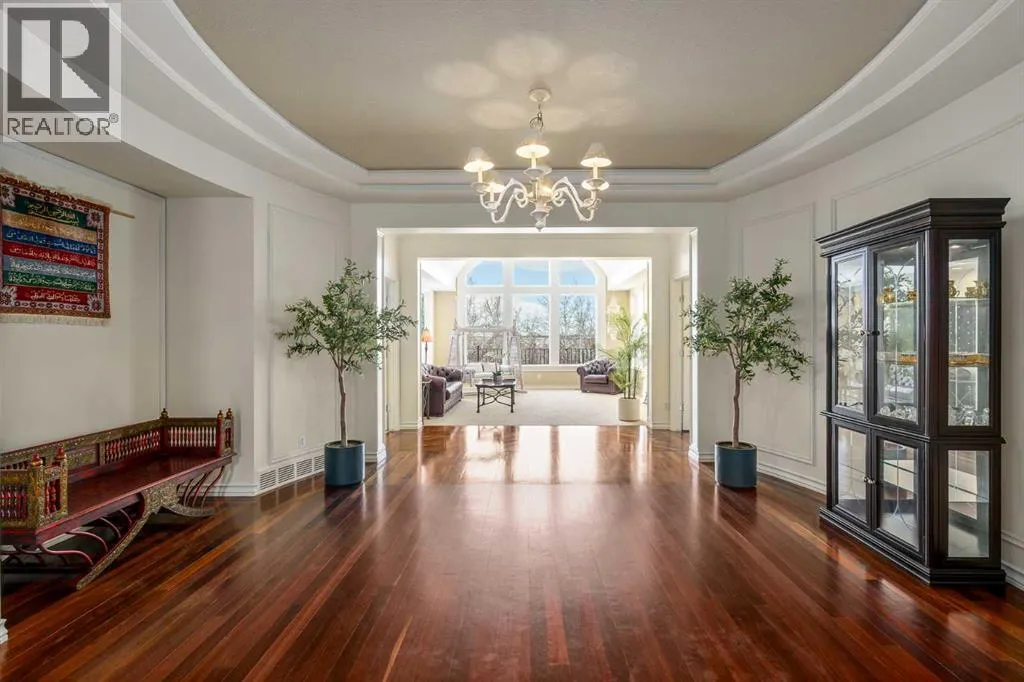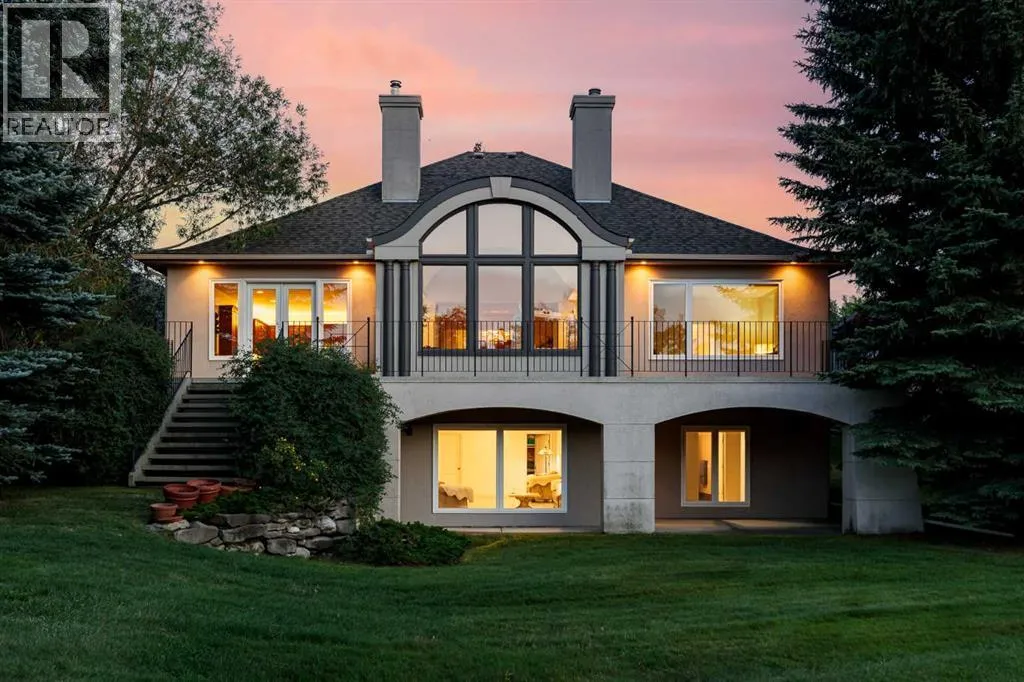 WALKOUT BUNGALOW | 4,700 SQFT OF LUXURY ESTATE LIVING | SNOWBIRD'S DREAM | HEATED TRIPLE GARAGE | BACKING ONTO FOREST & GOLF COURSE | Welcome to 33 Ridge Pointe Drive, an extraordinary estate bungalow set on one of the most prestigious streets in Heritage Pointe. Perfectly positioned on over 0.35 acres, this exceptional walkout residence backs directly onto the forest and golf course, offering a rare combination of privacy, natural beauty, and refined living. With 2,389 SQFT above grade and nearly 4,700 SQFT of total developed living space, this is one of the communityâs most expansive bungalow floorplans â perfectly suited to empty nesters, families, or those who love to entertain. Whether your lifestyle includes morning walks through this spectacular enclave, afternoons on the golf course, or extended time away as a snowbird, this home offers the ultimate lock-and-leave lifestyle, with landscaping and snow removal included for easy, maintenance-free living. The main level is defined by timeless architectural elegance, where rich hardwood flooring, crown molding, and custom millwork complement breathtaking views of the forest behind. A formal dining room provides an elegant setting for hosting, while the spectacular great room showcases soaring barrel-vaulted ceilings, an impressive arched feature window, and a double-sided gas fireplace. The gourmet kitchen features custom cabinetry, premium stainless steel appliances, a large granite island, a built-in wall oven, and a new built-in microwave (2026). French doors from the breakfast nook lead to the expansive full-width patio â one of the largest available â complete with a gas line and the perfect setting for outdoor dining, entertaining, or peaceful mornings surrounded by nature. The luxurious primary retreat offers a spa-inspired ensuite with a freestanding tub, oversized glass shower, dual vanities, and a spacious walk-in closet. A spacious executive main floor office or den â or potential fourth bedroom â adds flexibility for homeowners. A generous laundry and mudroom (finished with new marble tile in 2025) lead to the heated, oversized triple garage with epoxy floors. The stunning fully developed walkout lower level was completely remodelled in 2025 and offers exceptional additional living space. The theatre room, finished with new sound-absorbing paneling (2025), can also serve as a home gym or fifth bedroom. The cedar and cold storage rooms offer ample storage, and the two large bedrooms on the lower level share a Jack-and-Jill 4-piece bath. Significant upgrades include window replacements and kitchen renovation (2015), ensuite renovation (2019), central A/C (2020), dual hot water tanks (2021), new carpeting (2023), and a complete basement remodel (2025). Quietly tucked alongside the golf course and just steps from the clubhouse, this remarkable Heritage Pointe estate offers an unmatched lifestyle of tranquility, community, and natural beauty â all just minutes from Calgaryâs south amenities. (id:27476)