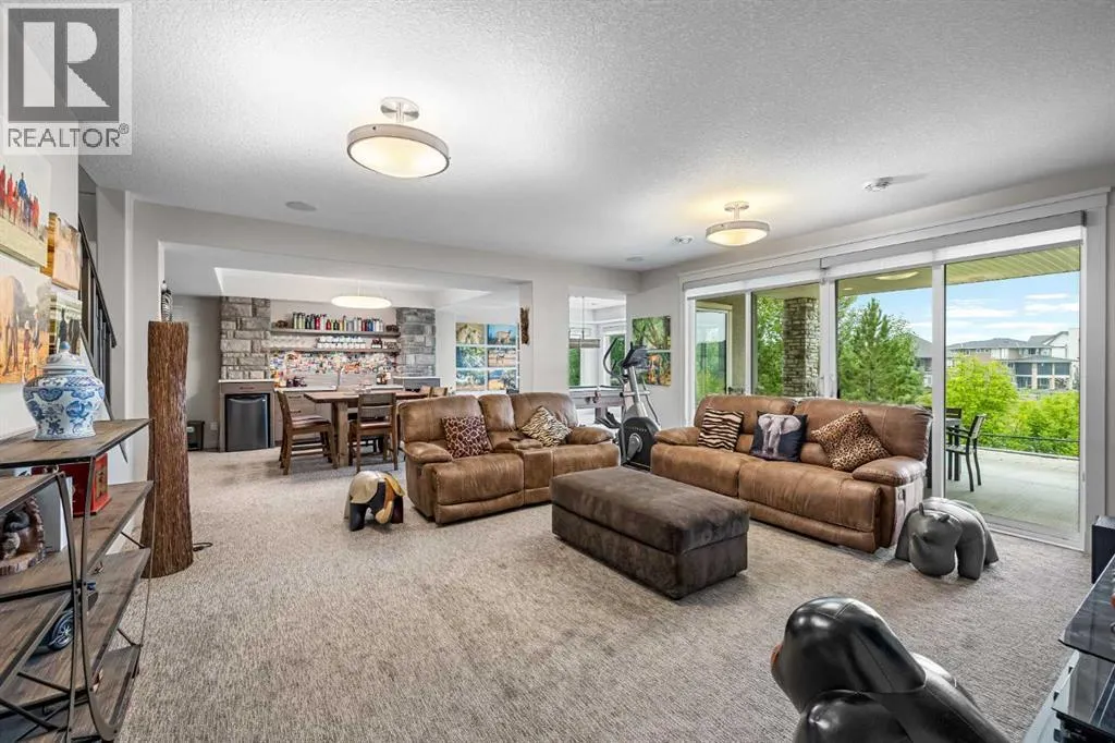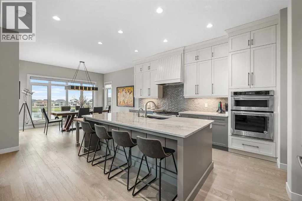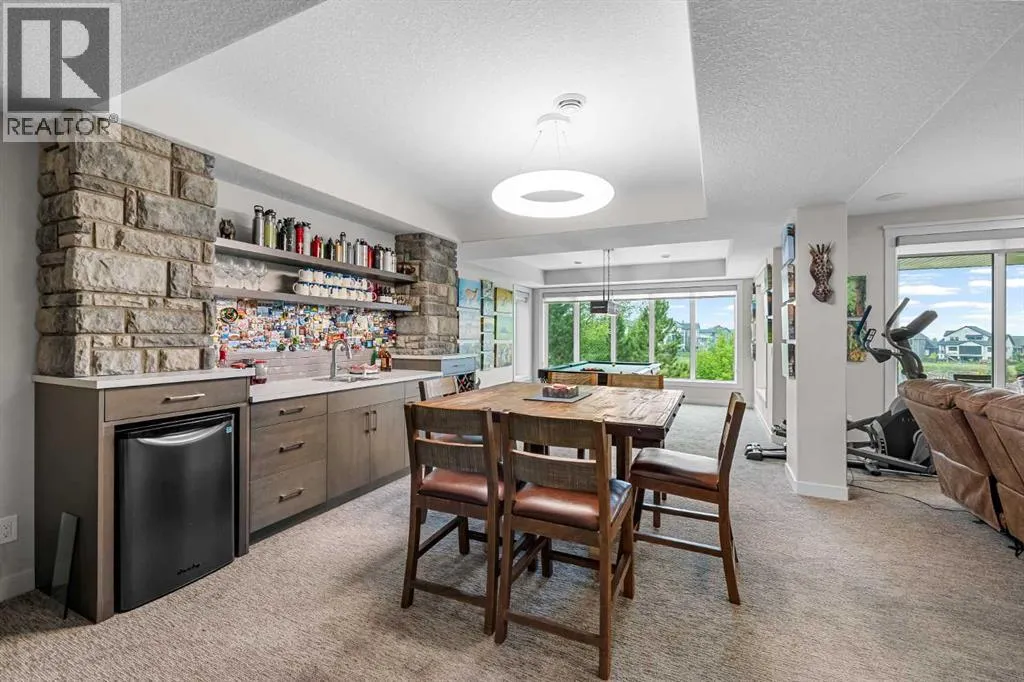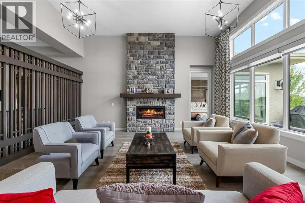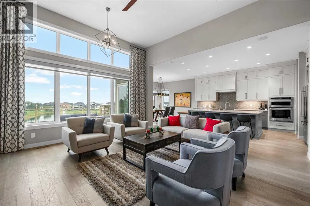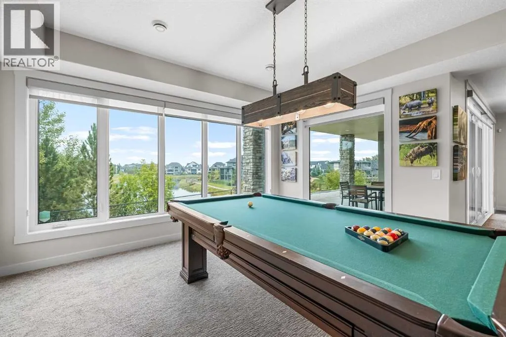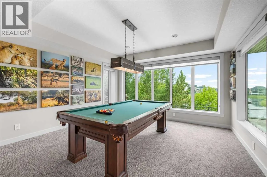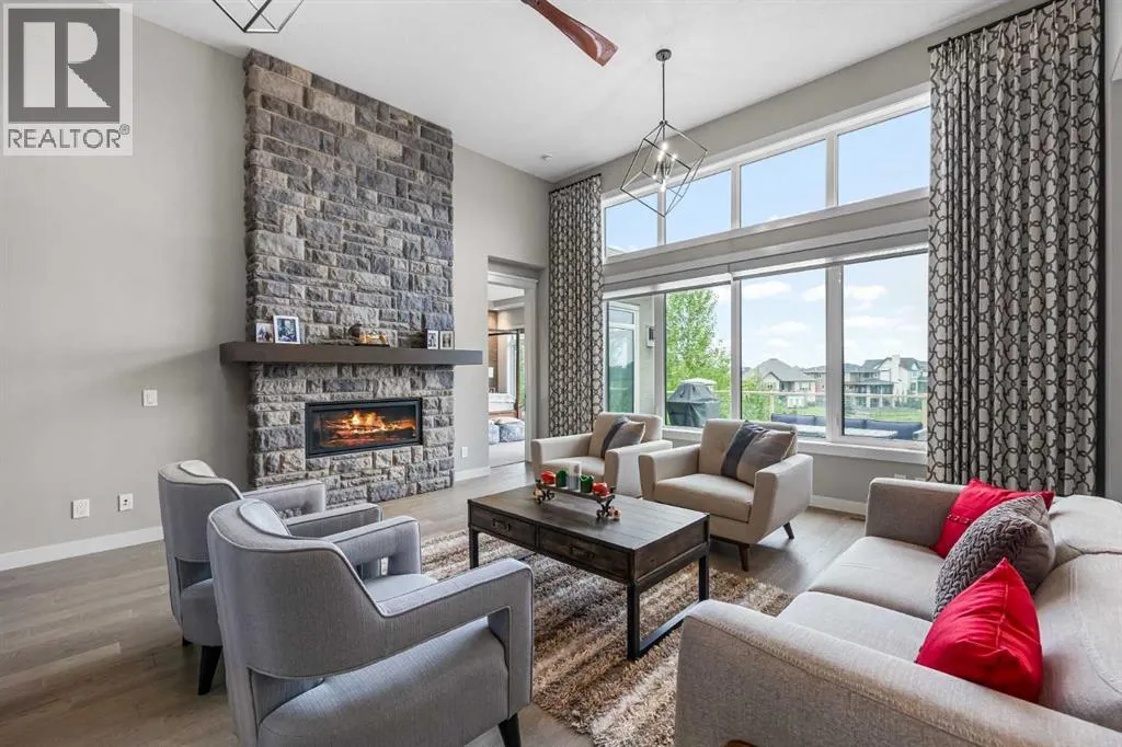 Set within a serene landscape of water and winding pathways, this luxury walkout bungalow offers architectural sophistication and natural tranquility. Designed on the sought-after Carrara 2 floor plan, the home captures a sense of openness and grandeur from the moment you arrive, with its expansive triple car garage and striking exterior. Inside, soaring 10-foot and 13-foot ceilings create an immediate feeling of volume and light, elevating every space with an airy, refined atmosphere. The main living area showcases comfort and grandeur with oversized windows framing uninterrupted views of the pond and pathway system beyond. Natural light floods the interior throughout the day, reflecting off carefully selected finishes and enhancing the homeâs warm, modern palette. The heart of the home is an expansive and beautifully appointed kitchen. A massive island, custom cabinetry, upgraded appliances, storage galore with a functional yet elegant butlers pantry, a separate walk in pantry and short and convenient close entrance through the oversized mudroom to the garage entrance perfect for bringing in grocery's. The open concept connects the dining and great room, forming an ideal setting for both everyday living and upscale entertaining. Clean architectural lines, generous proportions, and an effortless flow between spaces define the layout, with elevated ceiling heights adding drama and distinction without sacrificing intimacy. The dining area flows onto the expansive upper terrace, where a glass-railing system ensures your view of the pond remains uninterrupted while you enjoy an evening cocktail. Or seat your guests in this well appointed living room with a floor to ceiling stone fireplace both great options. Work from home in the private office away from the hustle and bustle of family activities. The primary suite is a sanctuary of its own, generous in size and enhanced by the homeâs signature high ceilings, offering a quiet escape with serene views and a spa-inspire d ensuite and a massive closet that wonât disappoint. The walkout lower level extends the living space in a way that feels fully integrated with the outdoors. Large glass doors open directly onto a private patio, where the gentle presence of the pond and landscaped pathways creates a peaceful retreat just steps from your living room. This level is perfectly suited for hosting guests, relaxing with family, or creating a personalized entertainment space, all while maintaining the same high-end feel as the main floor. Private bedrooms, a wet bar, a large family room, games area, yoga/ exercise room and finished storage room complete the level. Throughout the home, the combination of architectural height, thoughtful layout, and premium craftsmanship results in a residence that feels both expansive and welcoming. The triple car garage adds ample space for vehicles, storage, and lifestyle needs. This home embodies a rare balance of luxury, comfort, and natural beauty. (id:27476)