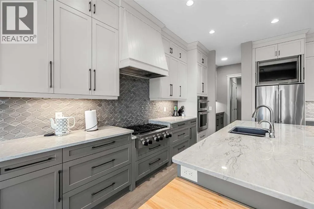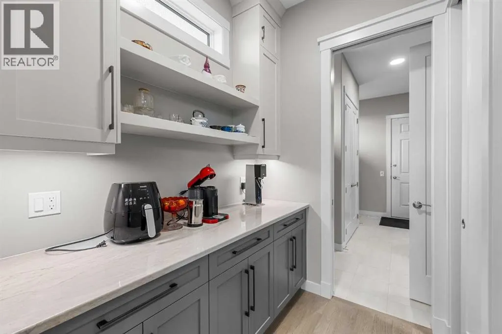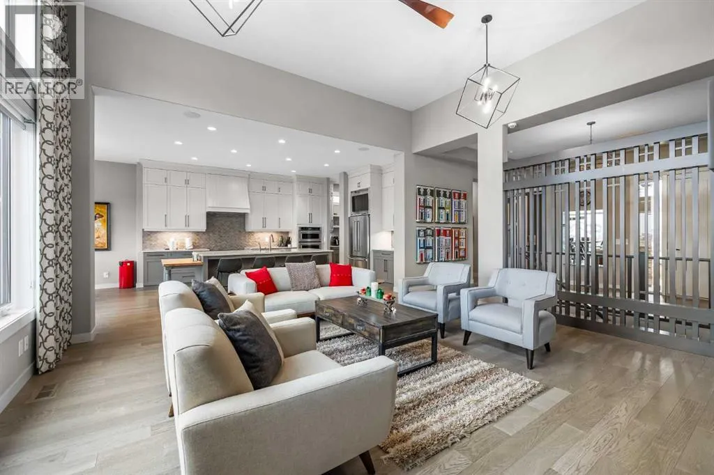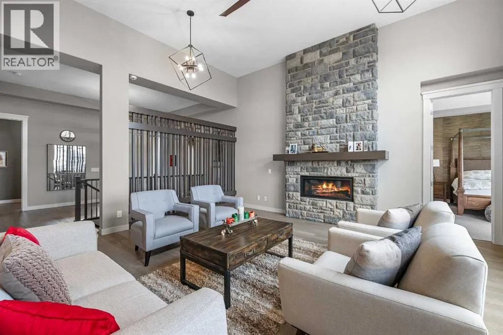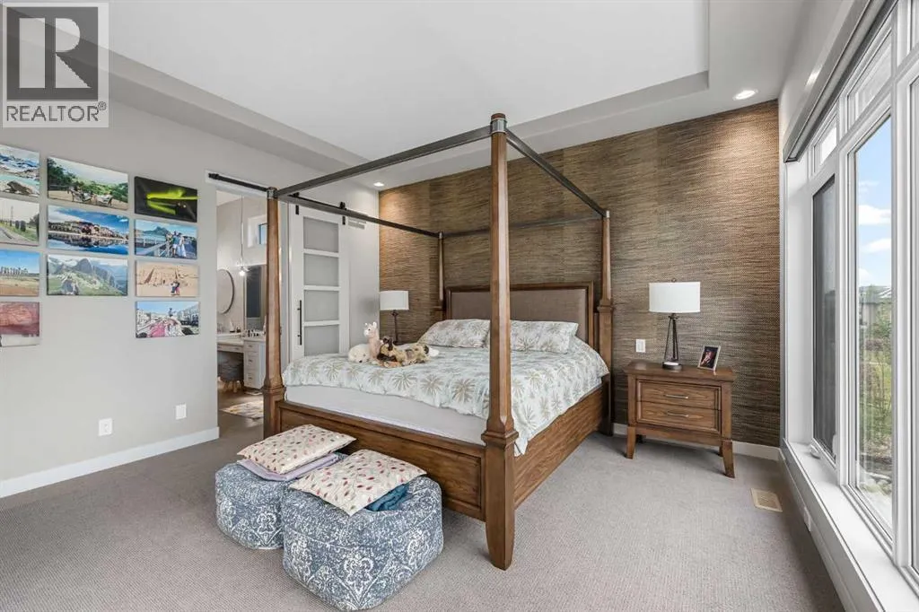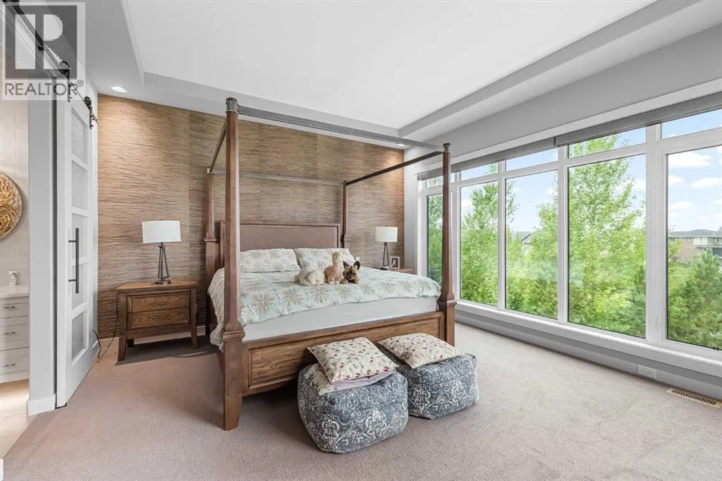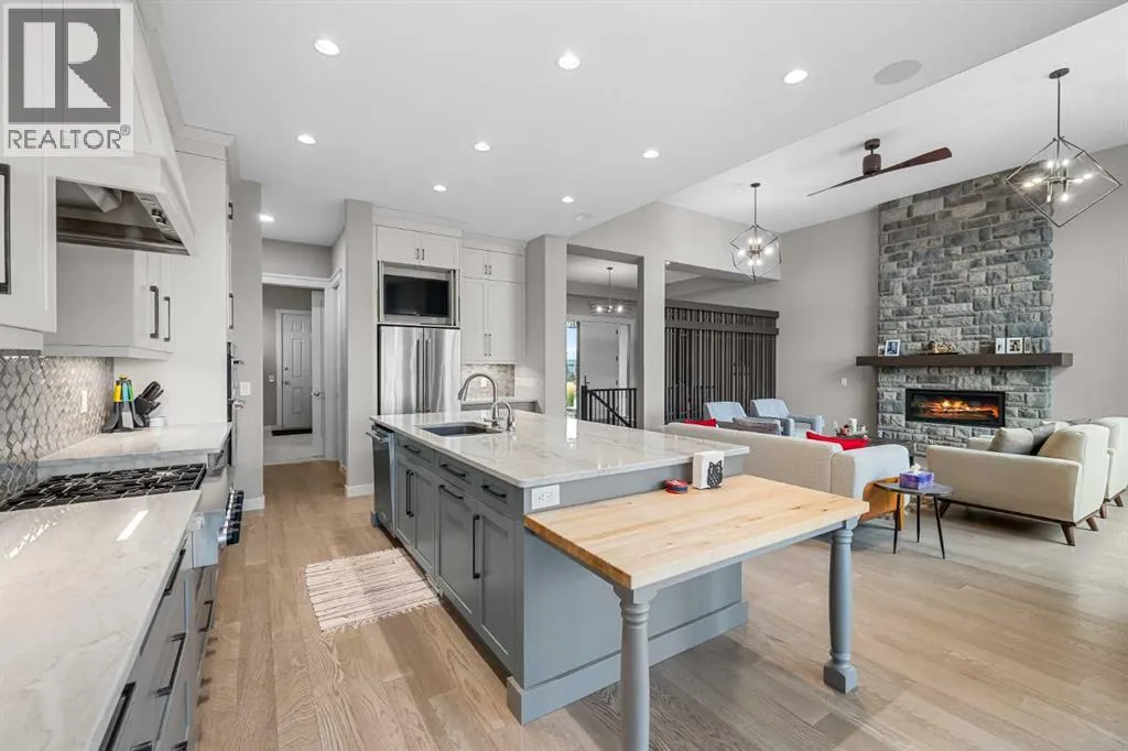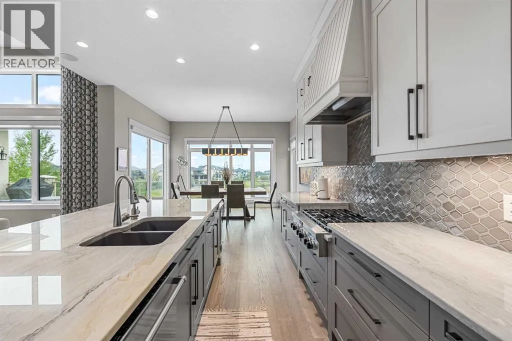 Set within a serene landscape of water and winding pathways, this luxury walkout bungalow offers architectural sophistication and natural tranquility. Designed on the sought-after Carrara 2 floor plan, the home captures a sense of openness and grandeur from the moment you arrive, with its expansive triple car garage and striking exterior. Inside, soaring 10-foot and 13-foot ceilings create an immediate feeling of volume and light, elevating every space with an airy, refined atmosphere. The main living area showcases comfort and grandeur with oversized windows framing uninterrupted views of the pond and pathway system beyond. Natural light floods the interior throughout the day, reflecting off carefully selected finishes and enhancing the homeâs warm, modern palette. The heart of the home is an expansive and beautifully appointed kitchen. A massive island, custom cabinetry, upgraded appliances, storage galore with a functional yet elegant butlers pantry, a separate walk in pantry and short and convenient close entrance through the oversized mudroom to the garage entrance perfect for bringing in grocery's. The open concept connects the dining and great room, forming an ideal setting for both everyday living and upscale entertaining. Clean architectural lines, generous proportions, and an effortless flow between spaces define the layout, with elevated ceiling heights adding drama and distinction without sacrificing intimacy. The dining area flows onto the expansive upper terrace, where a glass-railing system ensures your view of the pond remains uninterrupted while you enjoy an evening cocktail. Or seat your guests in this well appointed living room with a floor to ceiling stone fireplace both great options. Work from home in the private office away from the hustle and bustle of family activities. The primary suite is a sanctuary of its own, generous in size and enhanced by the homeâs signature high ceilings, offering a quiet escape with serene views and a spa-inspire d ensuite and a massive closet that wonât disappoint. The walkout lower level extends the living space in a way that feels fully integrated with the outdoors. Large glass doors open directly onto a private patio, where the gentle presence of the pond and landscaped pathways creates a peaceful retreat just steps from your living room. This level is perfectly suited for hosting guests, relaxing with family, or creating a personalized entertainment space, all while maintaining the same high-end feel as the main floor. Private bedrooms, a wet bar, a large family room, games area, yoga/ exercise room and finished storage room complete the level. Throughout the home, the combination of architectural height, thoughtful layout, and premium craftsmanship results in a residence that feels both expansive and welcoming. The triple car garage adds ample space for vehicles, storage, and lifestyle needs. This home embodies a rare balance of luxury, comfort, and natural beauty. (id:27476)