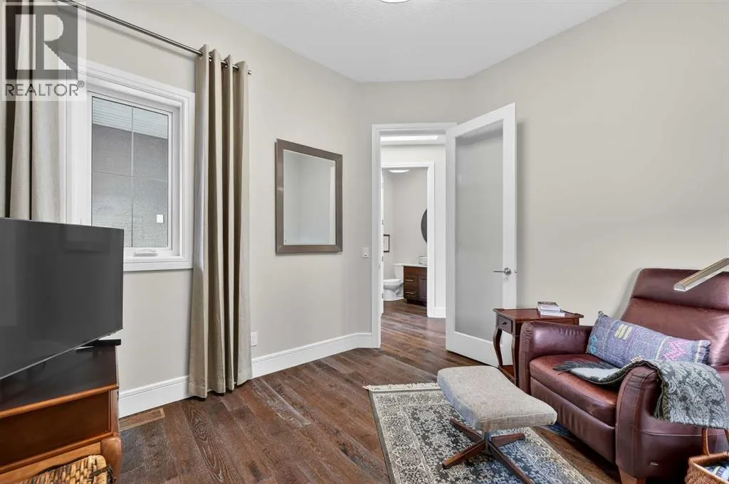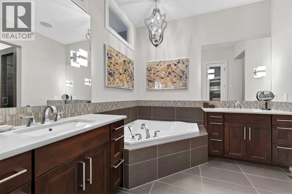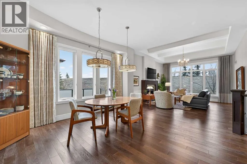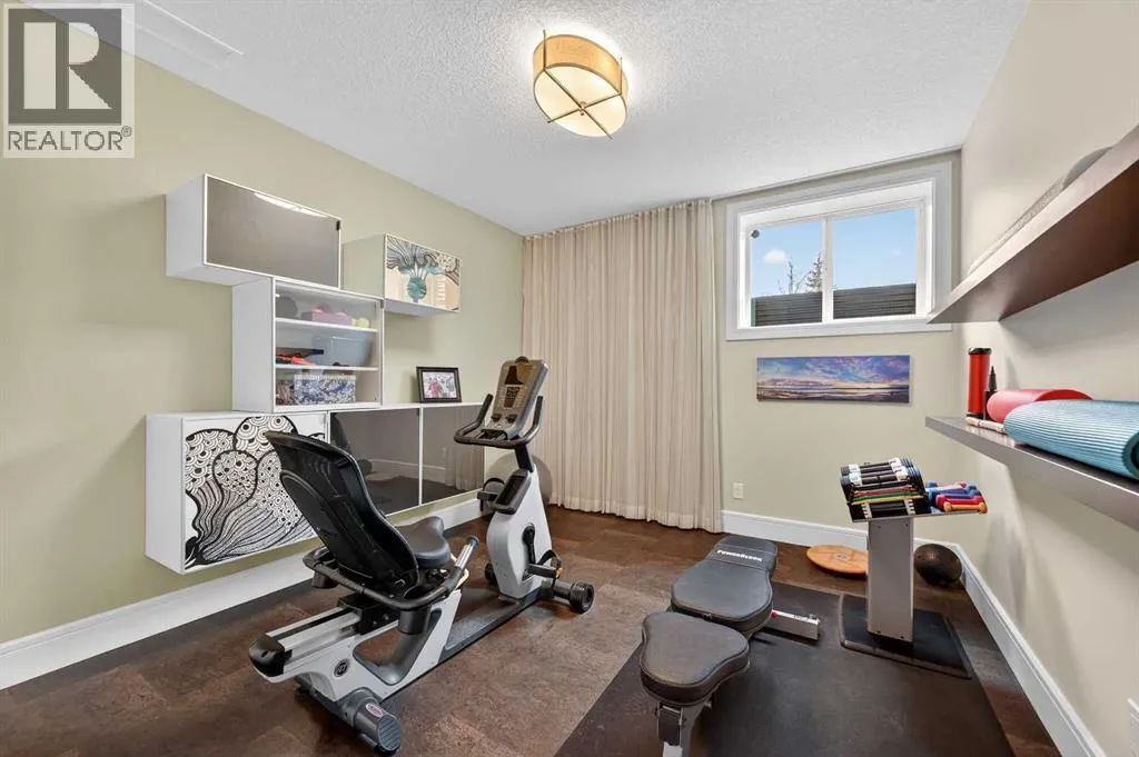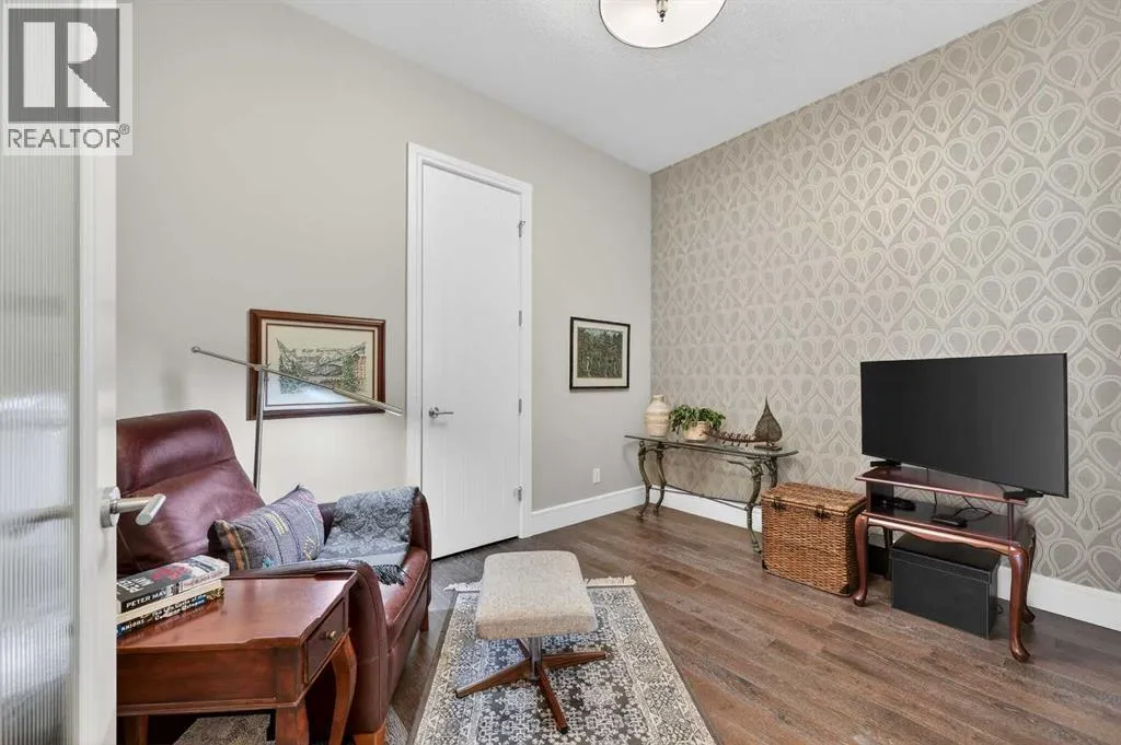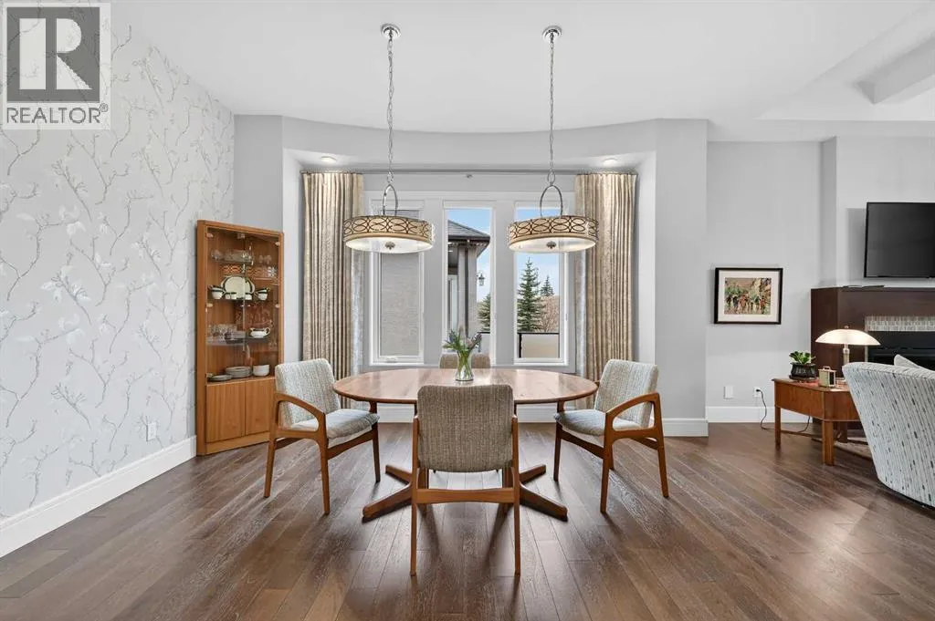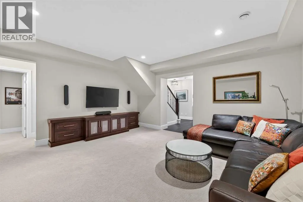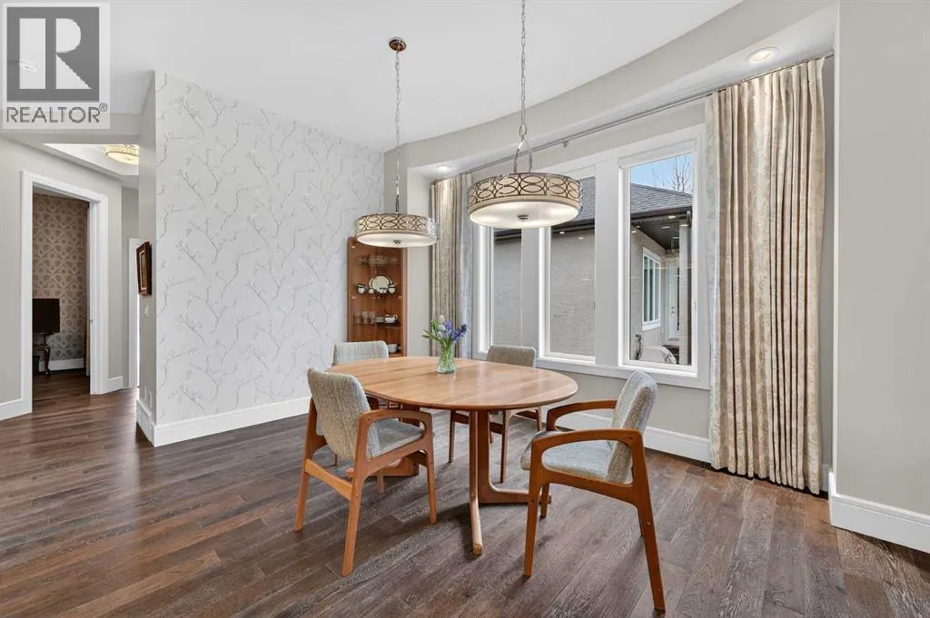 This villa, built by Calbridge Homes, was the original showhome for the complex and features a number of thoughtful upgrades and finishing touches throughout including designer lighting fixtures, Sonos multi-room sound system and a man door into the garage. Set within a quiet enclave of just 36 units, it offers a comfortable, low-maintenance lifestyle in a peaceful setting. The main floor features a bright, open-concept layout filled with natural light and views of green space and a west-facing patio. A warm and inviting living room showcases a gas fireplace, while a spacious dining area flows easily into the kitchenâideal for everyday living and entertaining. The kitchen is well-appointed with a large island, extensive granite countertops, stainless steel appliances and a convenient butlerâs pantry. A private front office or den provides a quiet place to work or relax. Custom drapes, shades, and designer wallpaper add a refined touch throughout. The primary suite is a calm retreat, complete with a 5-piece ensuite featuring dual sinks, a walk-in shower, soaker tub, in-floor heating, and a generous closet. A powder room and a conveniently located laundry room with access to the garage complete the main floor. A bar area just off the living room, with access to the patio, adds to the homeâs functionality. The fully finished lower level offers an entertainment room with as surround sound home theatre with Tannoy speakers, a bar with stone accents plus a wine cellar, three additional bedrooms or flexible spaces, a four-piece bathroom, and a large storage area with room for a workshop. Don't miss this opportunity to embrace luxurious, maintenance-free living in one of the most sought-after villa communities in Heritage Pointe and only a five minute drive to all major amenities. (id:27476)