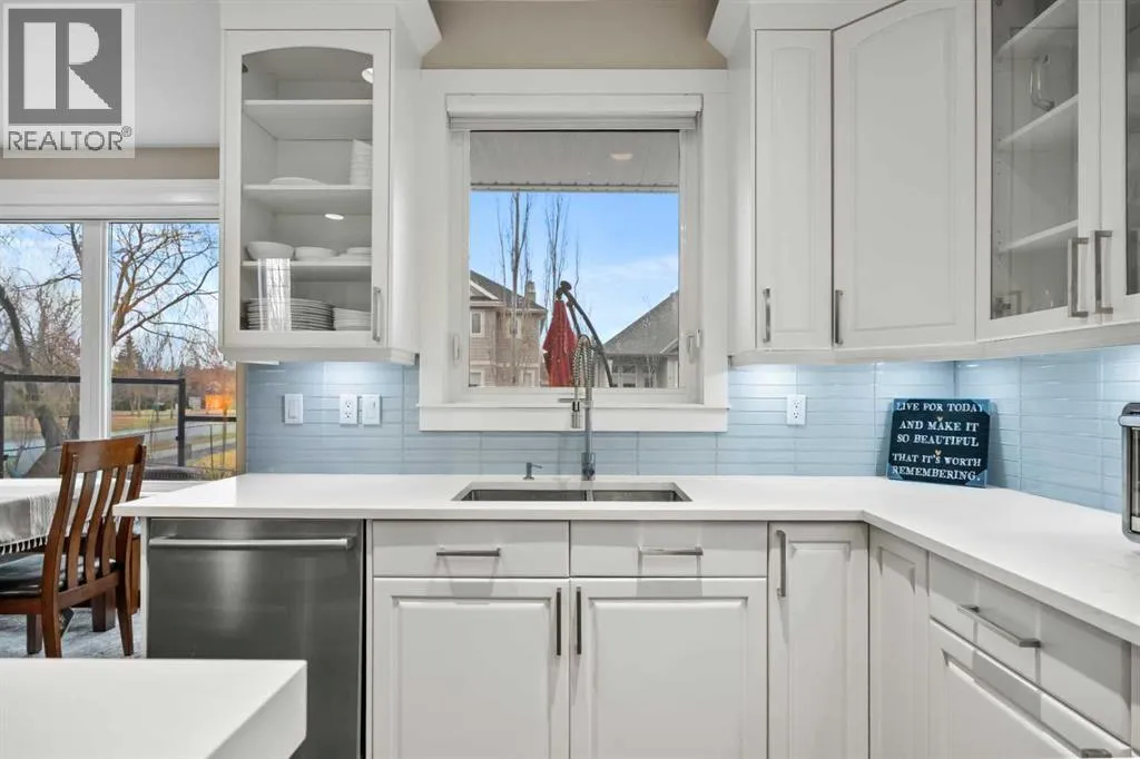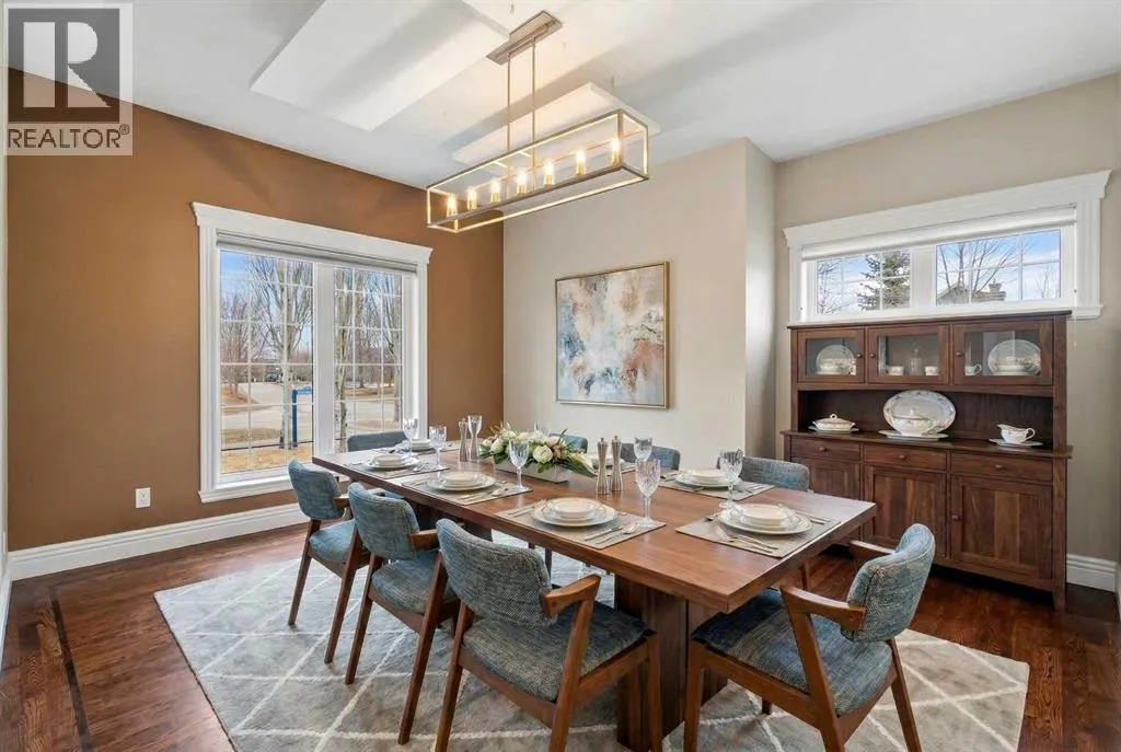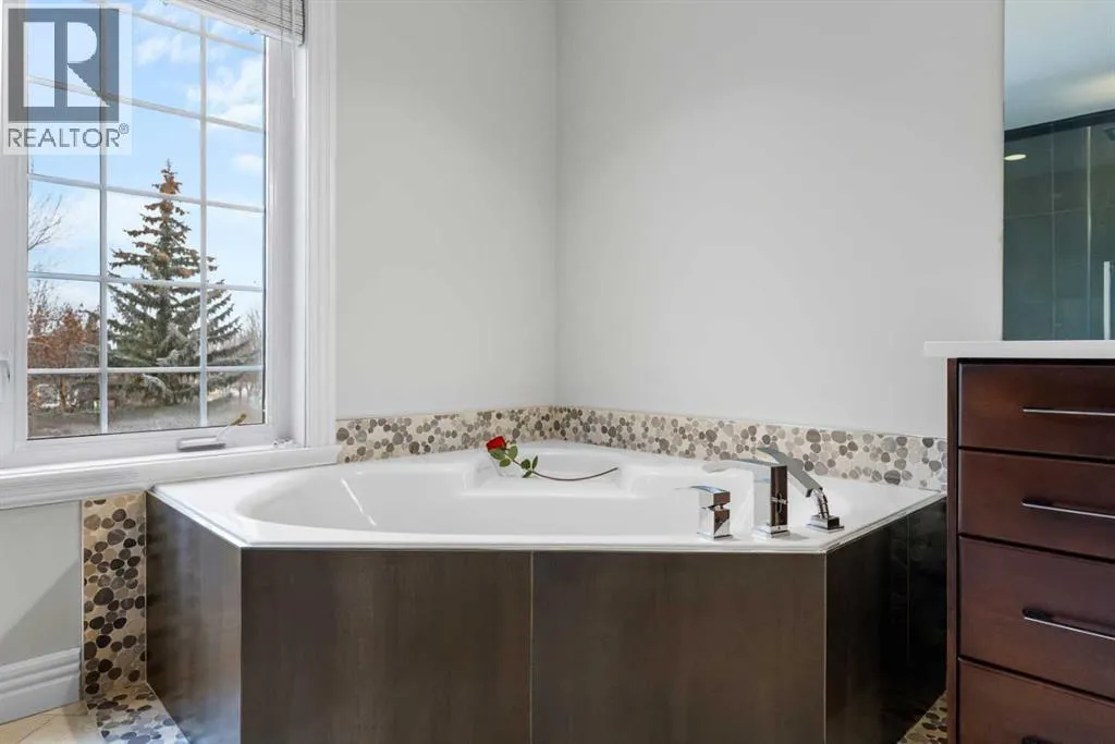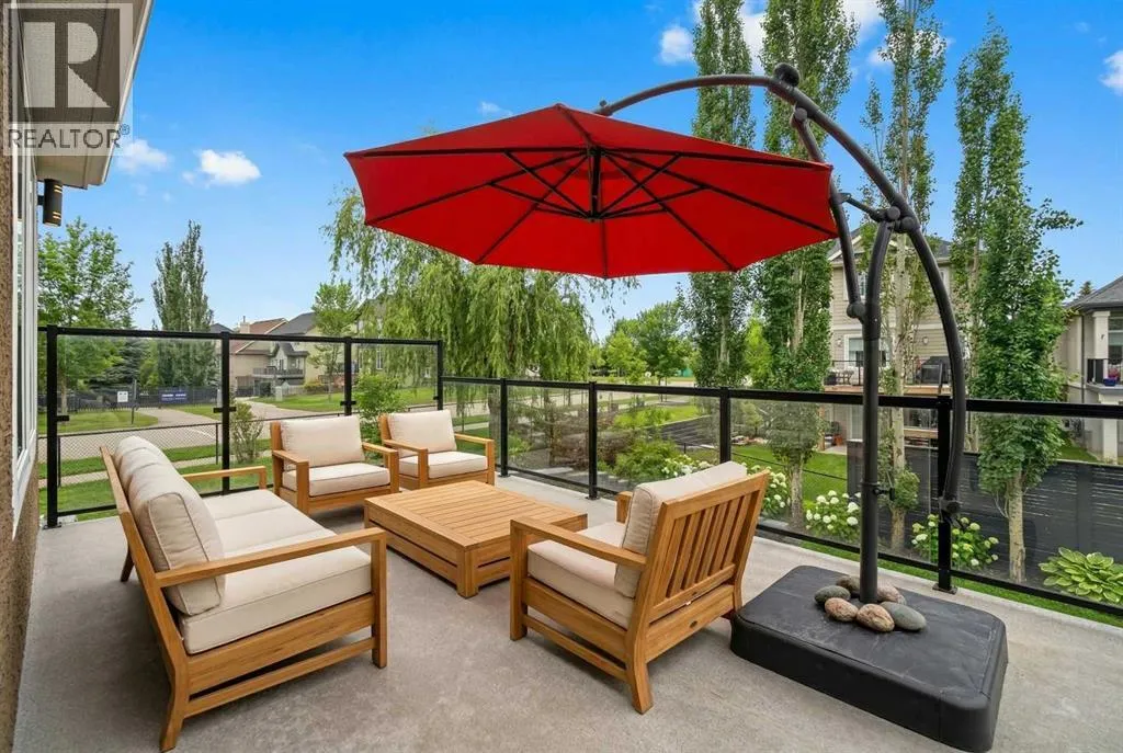 Welcome to 4 Heritage Lake Close, a show-home worthy estate nestled within the prestigious enclave of homes surrounding the âLake at Heritage Pointeâ- the only portion of the hamlet with lake privileges. Situated on a desirable corner lot within a serene cul-de-sac, this custom-built estate is just steps from the upper lake and main lake, offering prestige and lake access living, moments from your front door! French Provincial Inspired, this remodelled residence emphasizes grandeur and a timeless elegance. The home hosts an impressive four thousand square feet of developed living quarters, on .25 acres, featuring a walk-out lower, tiered outdoor oasis, a triple car garage, and an expansive driveway that can fit nine vehicles. Inside, the south facing foyer welcomes you with soaring ceilings and a grand staircase with a âJulietâ balcony, an iconic feature of this classic design. This corner configuration, with its array of windows, provides a plethora of natural light. The remodelled culinary retreat is curated with stunning custom cabinetry, lux quartz countertops, a lavish appliance suite and an extravagant island as the showpiece! The notable family room features a gas fireplace, and for casual dinners a dining alcove with access to your private terrace awaits. The main - enhanced by its 9â ceilings throughout, boasts both a formal dining room for intimate moments and a separate den, ideal as an office or childrenâs area! The main is completed by a powder room and dual mudroom with laundry. Ascend upstairs, and into your lavish primary suite featuring a boutique worthy dressing room and designer spa. The remodelled spa is elevated with an impressive shower, soaker tub and dual vanities! The upper has two more bedrooms adorned with gorgeous windows and large closets too! Upstairs is completed by a lovely four-piece bath with dual vanities. Descend to the lower-level walkout - an entertainers dream with an open concept recreational room. The walkout features a gym, and your guests will want to stay a while with the spacious bedroom and three-piece bath! Step outside into your gorgeous backyard, professionally landscaped with a tiered greenspace, aspens for privacy, and a covered terrace perfect to chase the sun or shade all day long. This residence is located on an upscale street within Heritage with large lots, executive homes, far from any road noise, and a 10/10 location just steps to the upper-lake, north dock and main beach. Plus the HOA takes care of the snow removal on the sidewalks. This exclusive community offers year-round lake activities, parks, pathways, green spaces and is within a ten-minute radius to five world-class golf courses while only being three minutes south of Calgary! For your children, school buses stop at numerous points along the drive taking your kids directly to all levels of schooling. This is a once in a lifetime estate is waiting for a connoisseur of fine living to call it home! Watch the video** (id:27476)