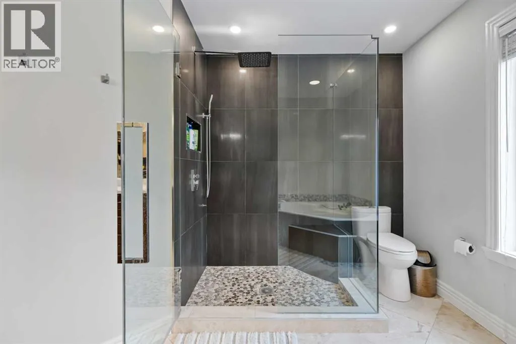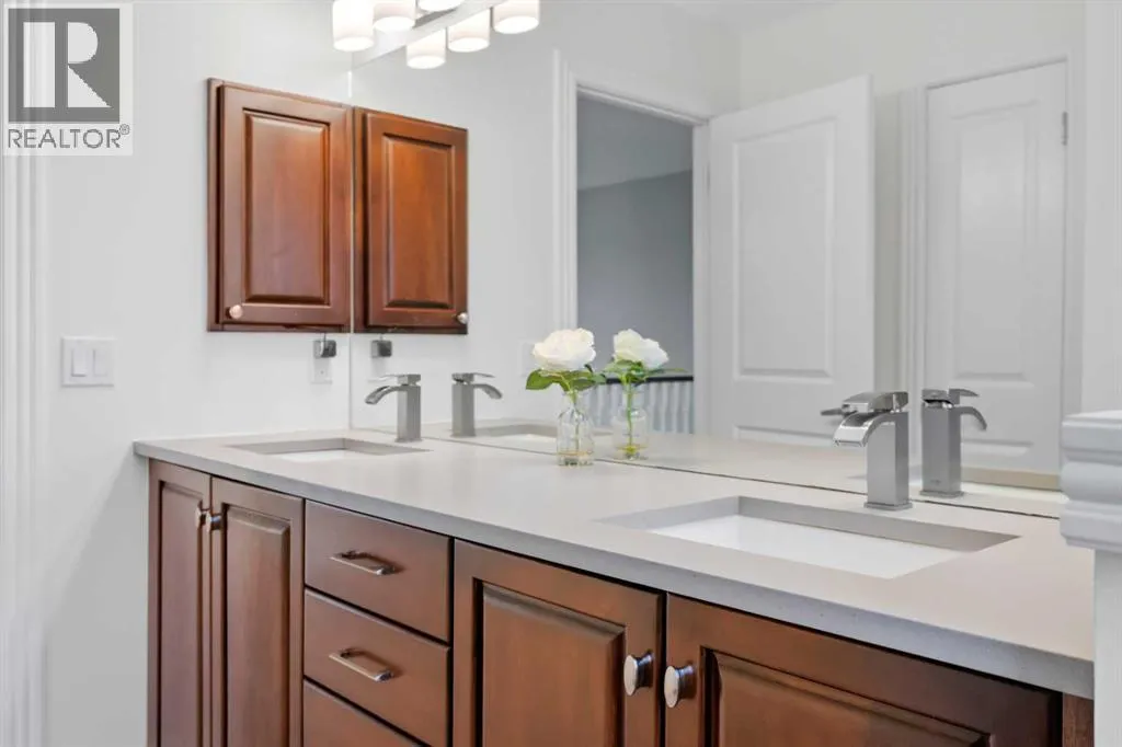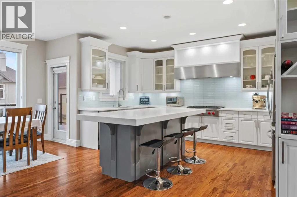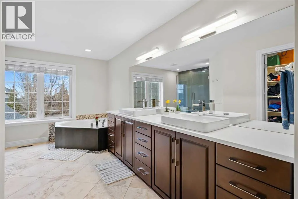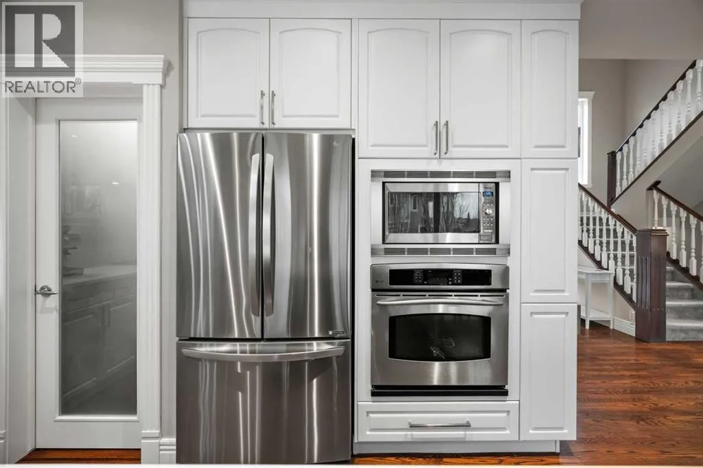 Welcome to 4 Heritage Lake Close, a show-home worthy estate nestled within the prestigious enclave of homes surrounding the âLake at Heritage Pointeâ- the only portion of the hamlet with lake privileges. Situated on a desirable corner lot within a serene cul-de-sac, this custom-built estate is just steps from the upper lake and main lake, offering prestige and lake access living, moments from your front door! French Provincial Inspired, this remodelled residence emphasizes grandeur and a timeless elegance. The home hosts an impressive four thousand square feet of developed living quarters, on .25 acres, featuring a walk-out lower, tiered outdoor oasis, a triple car garage, and an expansive driveway that can fit nine vehicles. Inside, the south facing foyer welcomes you with soaring ceilings and a grand staircase with a âJulietâ balcony, an iconic feature of this classic design. This corner configuration, with its array of windows, provides a plethora of natural light. The remodelled culinary retreat is curated with stunning custom cabinetry, lux quartz countertops, a lavish appliance suite and an extravagant island as the showpiece! The notable family room features a gas fireplace, and for casual dinners a dining alcove with access to your private terrace awaits. The main - enhanced by its 9â ceilings throughout, boasts both a formal dining room for intimate moments and a separate den, ideal as an office or childrenâs area! The main is completed by a powder room and dual mudroom with laundry. Ascend upstairs, and into your lavish primary suite featuring a boutique worthy dressing room and designer spa. The remodelled spa is elevated with an impressive shower, soaker tub and dual vanities! The upper has two more bedrooms adorned with gorgeous windows and large closets too! Upstairs is completed by a lovely four-piece bath with dual vanities. Descend to the lower-level walkout - an entertainers dream with an open concept recreational room. The walkout features a gym, and your guests will want to stay a while with the spacious bedroom and three-piece bath! Step outside into your gorgeous backyard, professionally landscaped with a tiered greenspace, aspens for privacy, and a covered terrace perfect to chase the sun or shade all day long. This residence is located on an upscale street within Heritage with large lots, executive homes, far from any road noise, and a 10/10 location just steps to the upper-lake, north dock and main beach. Plus the HOA takes care of the snow removal on the sidewalks. This exclusive community offers year-round lake activities, parks, pathways, green spaces and is within a ten-minute radius to five world-class golf courses while only being three minutes south of Calgary! For your children, school buses stop at numerous points along the drive taking your kids directly to all levels of schooling. This is a once in a lifetime estate is waiting for a connoisseur of fine living to call it home! Watch the video** (id:27476)