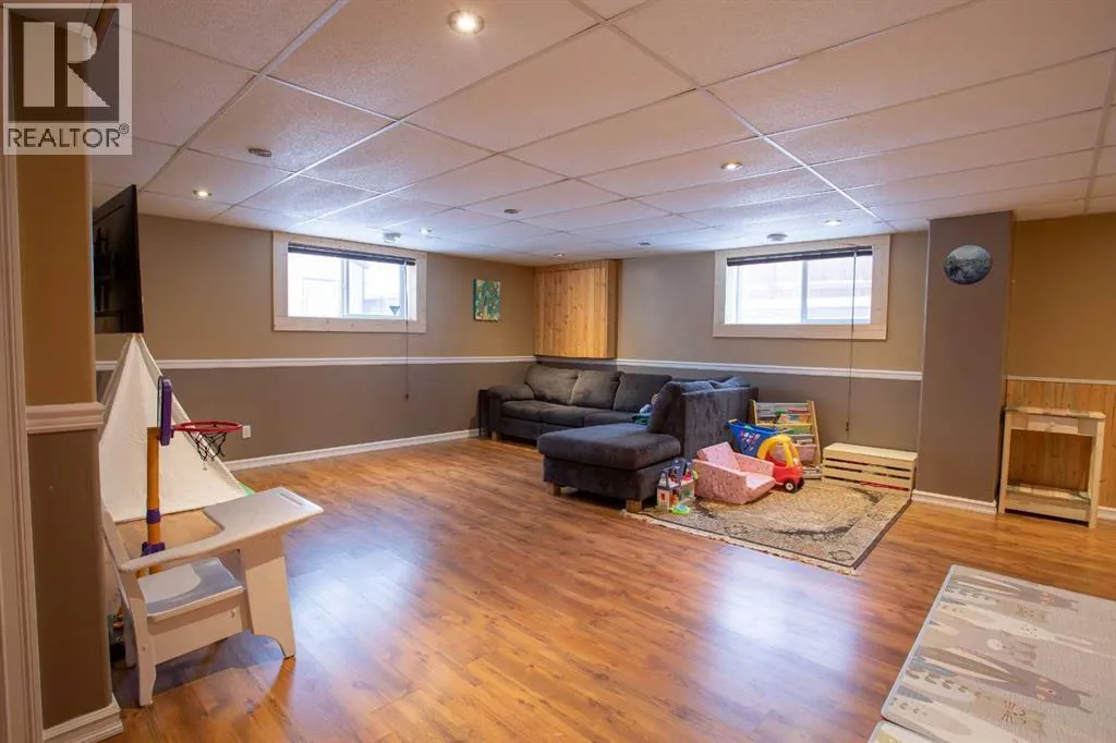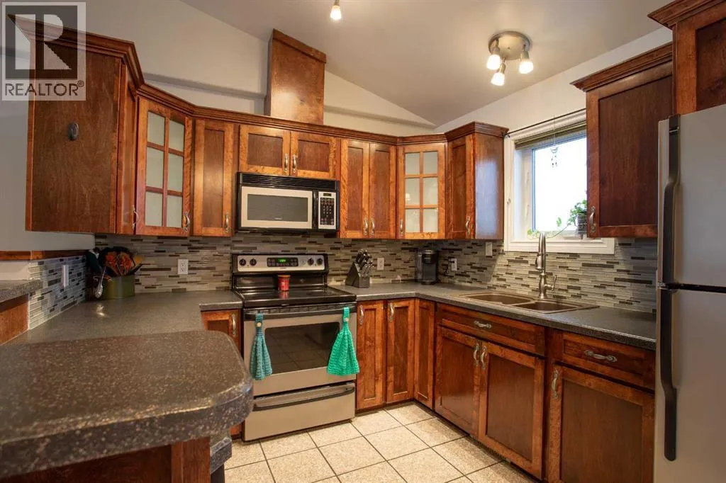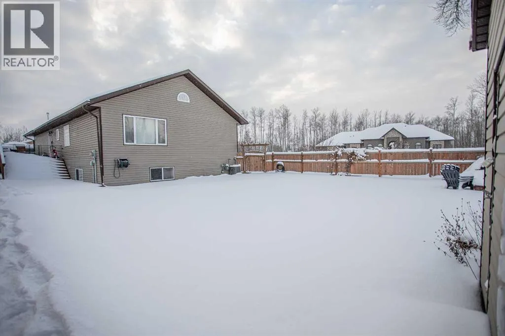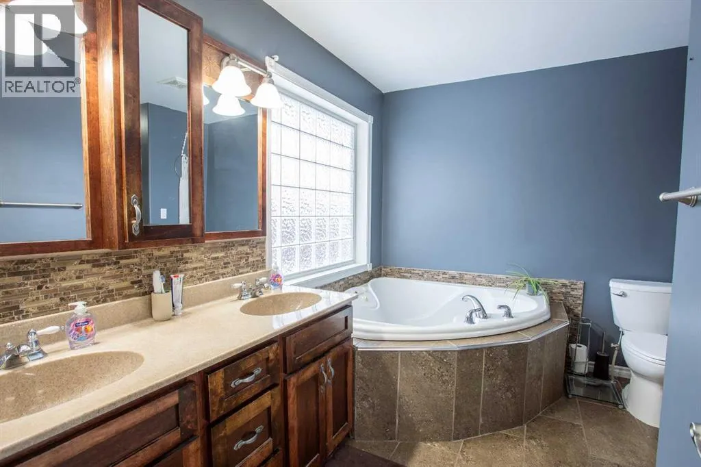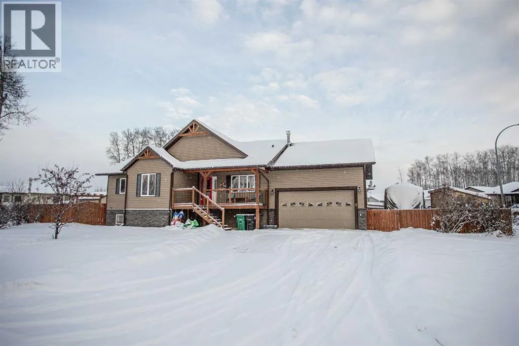 Welcome to this beautifully crafted 2,500 sq. ft. living space custom home, oozing with exceptional comfort, style, and space in one of High Levelâs most desirable areas. With high vaulted ceilings, abundant natural light, and thoughtful design throughout, this home is perfect for families seeking a blend of elegance and everyday functionality. Step into the inviting Sitting Room, complete with a handsome gas brick fireplace creating the ideal cozy gathering space for those long northern winter evenings. The Kitchen and dining areas flow seamlessly for both entertaining and day-to-day living. Off the Kitchen you will find the attached heated double garage for all your toys plus plenty of room to keep your car out of the elements. This home features 3 bedrooms down the hall, including a private Primary Suite complete with a luxurious ensuite boasting a jacuzzi tub, double sinks and a separate shower â your own personal retreat. Completing the home in the lower level you will find another well sized bedroom perfect for the teenager or overnight guest, full bath, Laundry Room and a very spacious Family Room where hours of bonding, entertaining and game nigh are certain. There is another well addressed separate work-out space or perhaps an area to unleash your creative side.  Outside, enjoy the large yard designed for both relaxation and recreation. Whether hosting friends for a late night fiesta on the fantastic deck or unwinding under the stars, the fire pit adds the perfect finishing touch to this beautiful outdoor space. With its custom design complete with central air, quality finishes, and prime location, this High Level gem offers a rare opportunity to own a truly special property. Donât miss your chance to make it yours. (id:27476)