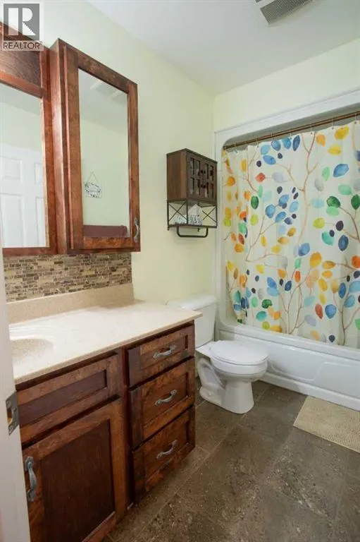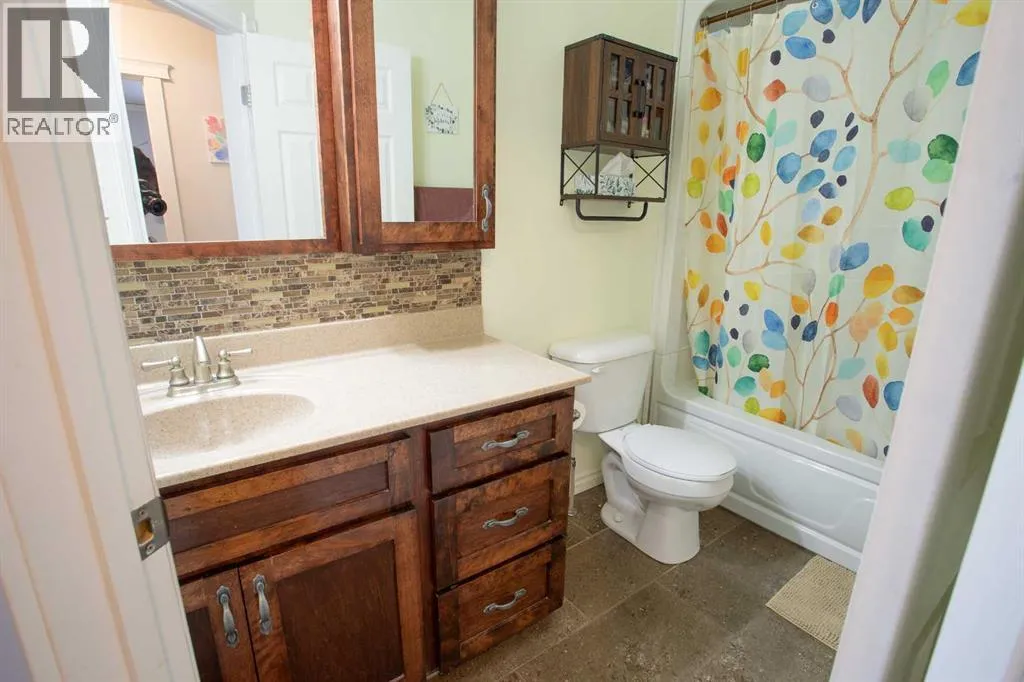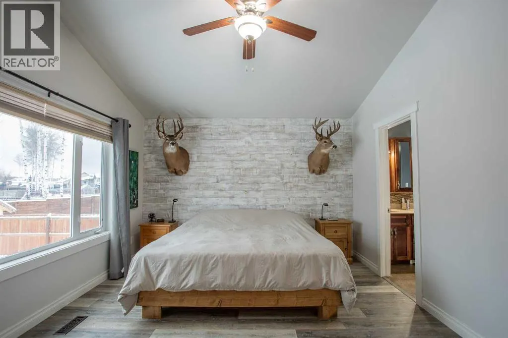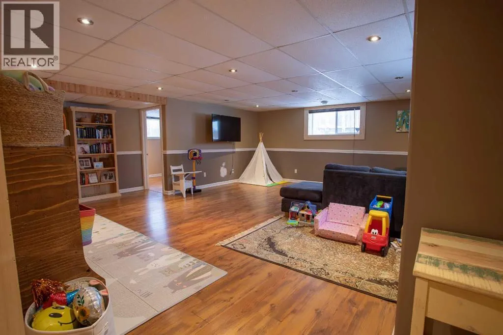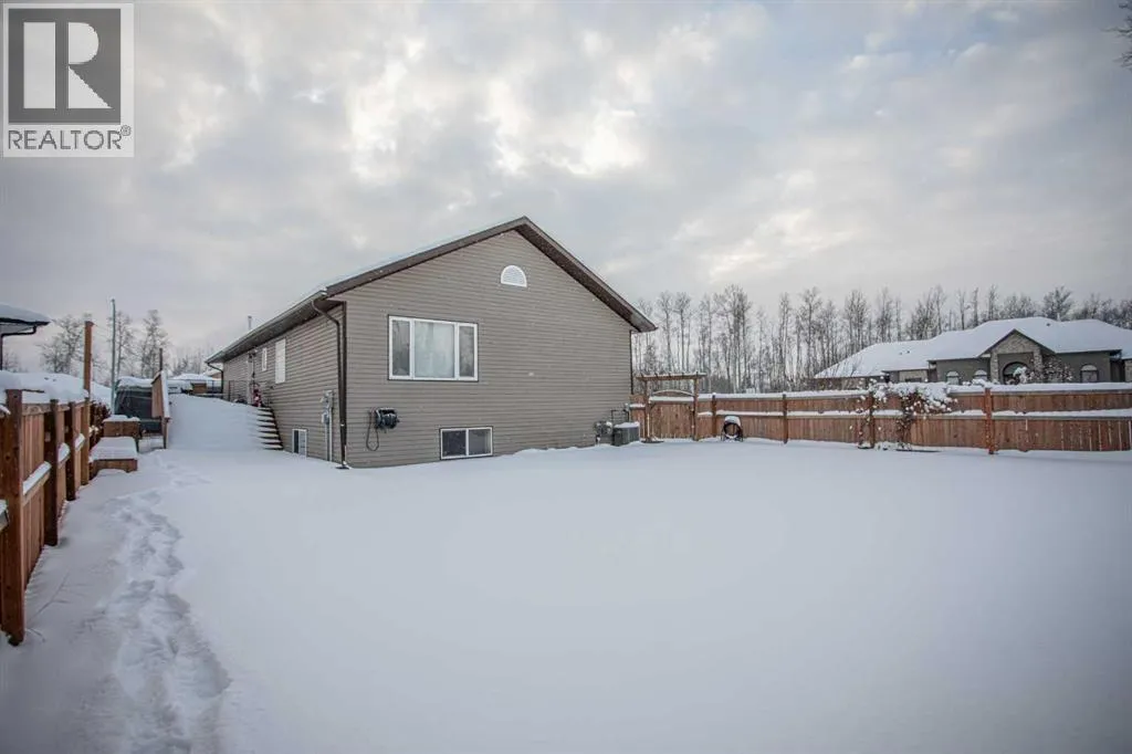 Welcome to this beautifully crafted 2,500 sq. ft. living space custom home, oozing with exceptional comfort, style, and space in one of High Levelâs most desirable areas. With high vaulted ceilings, abundant natural light, and thoughtful design throughout, this home is perfect for families seeking a blend of elegance and everyday functionality. Step into the inviting Sitting Room, complete with a handsome gas brick fireplace creating the ideal cozy gathering space for those long northern winter evenings. The Kitchen and dining areas flow seamlessly for both entertaining and day-to-day living. Off the Kitchen you will find the attached heated double garage for all your toys plus plenty of room to keep your car out of the elements. This home features 3 bedrooms down the hall, including a private Primary Suite complete with a luxurious ensuite boasting a jacuzzi tub, double sinks and a separate shower â your own personal retreat. Completing the home in the lower level you will find another well sized bedroom perfect for the teenager or overnight guest, full bath, Laundry Room and a very spacious Family Room where hours of bonding, entertaining and game nigh are certain. There is another well addressed separate work-out space or perhaps an area to unleash your creative side.  Outside, enjoy the large yard designed for both relaxation and recreation. Whether hosting friends for a late night fiesta on the fantastic deck or unwinding under the stars, the fire pit adds the perfect finishing touch to this beautiful outdoor space. With its custom design complete with central air, quality finishes, and prime location, this High Level gem offers a rare opportunity to own a truly special property. Donât miss your chance to make it yours. (id:27476)