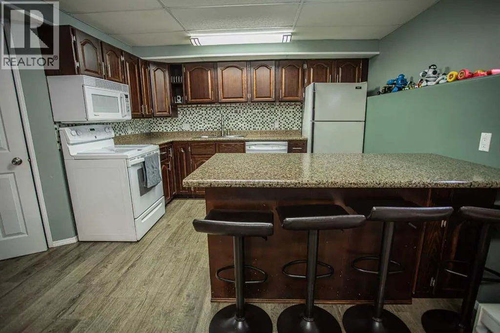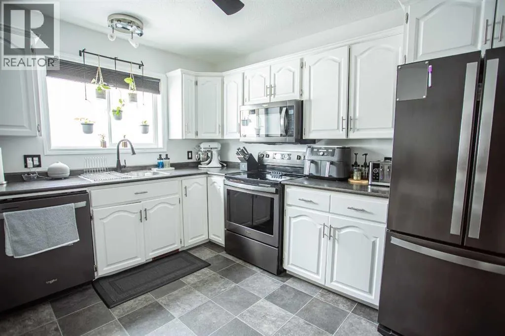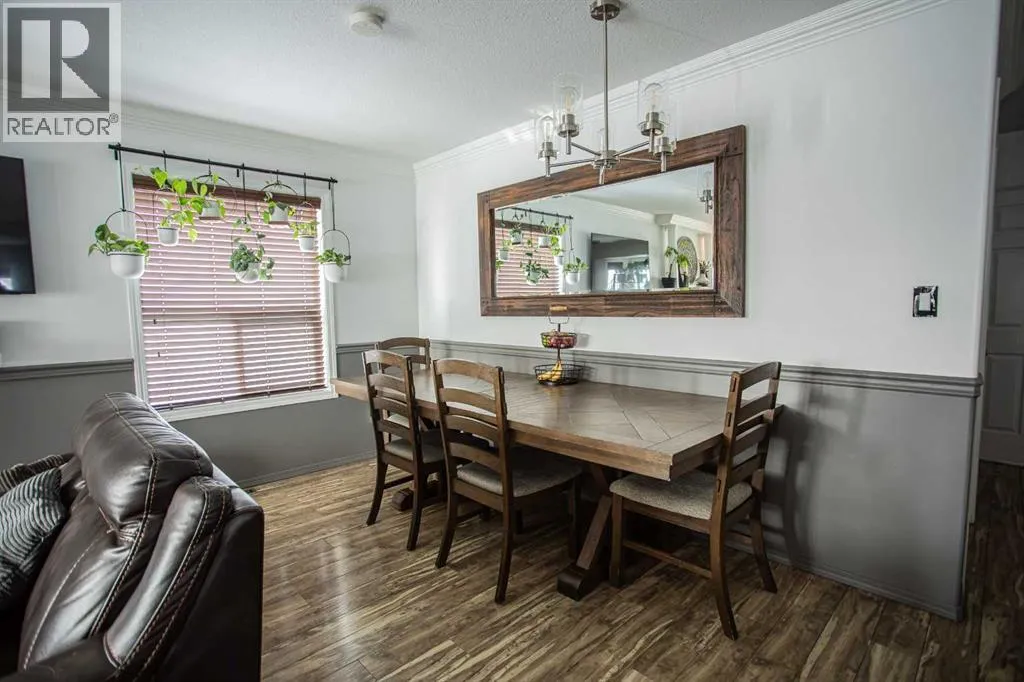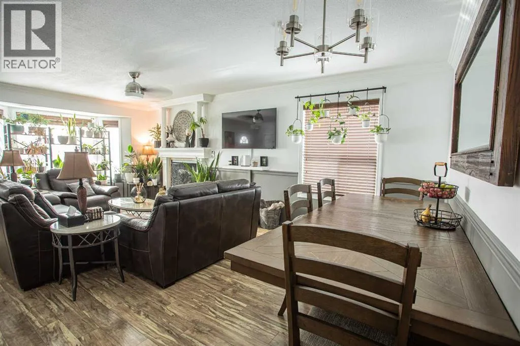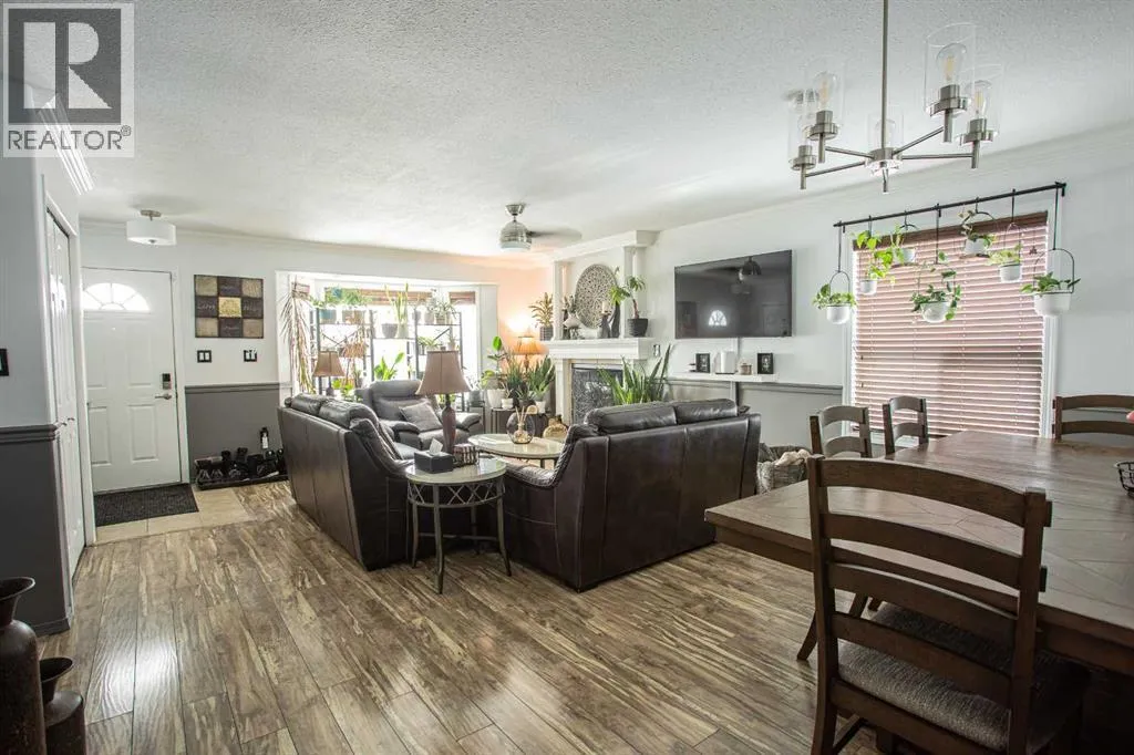 Welcome to 10204 Chinchaga Drive in High Level, Alberta ! This contemporary home boasts 5 Bedrooms, and 3 Bathrooms spread among 2 distinct living spaces, including a lower level suite. It's a wonderful rare opportunity that offers remarkable versatility -- ideal for the multi-family or intergenerational living, or perfect for an AirBnB. Step into the tiled foyer, and a spacious open-concept Living/Dining Room with crown moulding. A picture window invites cheery, warm sunshine in the Living Room where a natural gas fireplace is ready to provide cozy comfort, and ambiance on those cooler evenings. The Dining Room offers space for your cherished China cabinet, and plenty of room for the dining table to enjoy the sit down meals with family and friends. The bright crisp white Kitchen features high-end appliances, with space for either a coffee bar or your breakfast bistro, as well as a handy pantry closet nearby to make the layout not only functional but also inviting for the whole family. A hallway nearby hosts a generous peaceful Primary Bedroom Suite, complete with double closets, and a 3-piece ensuite. Two additional Bedrooms provide space for family, guests, hobbies, or home offices. There's also a 4-piece Main Bath with a tub/shower combo. A staircase leads down to the fully finished Guest Suite with 2 Bedrooms, and a full Bath, including an open-concept Kitchen, Living Room, and Dining Area -- perfect for the extended family, in-laws, or longtime family friends. The fully fenced backyard features sunny North-eastern exposure, grassy areas for children and pets, and a Garden Shed. Beside the back fence sits the raised garden beds where you can grow your own fresh herbs and veggies. Add to this the superb location, steps away from the walking trails and schools, this home is the PERFECT home for those looking to start their small town living ! (id:27476)