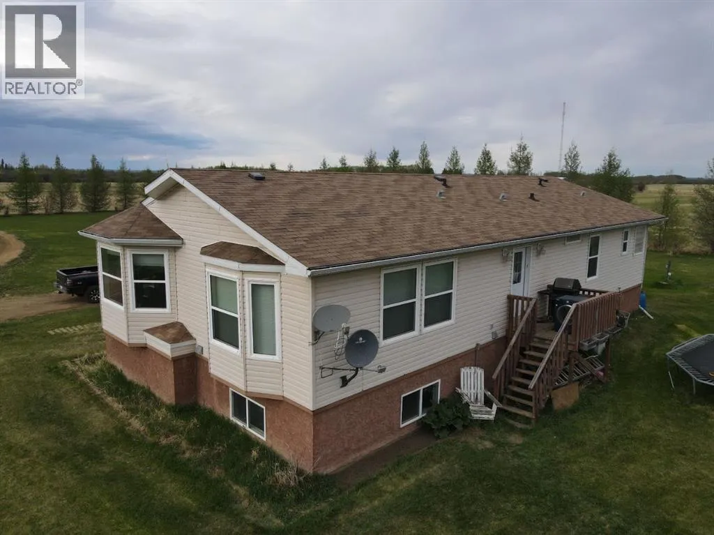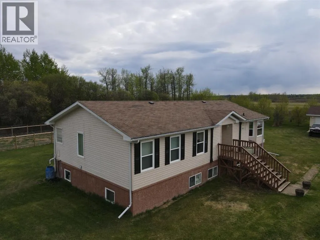 A charming 2008 - 1760 sq ft bungalow sits on a 6-acre lot with views of the South Heart River, offering the perfect blend of rural tranquillity and modern comfort. The home features three bedrooms and two bathrooms, which includes a light-filled ensuite with a luxurious four-piece bathroom complete with a stand-up shower and a deep soaker tubâideal for unwinding after a long day. The open-concept kitchen and dining area are bathed in soft natural light from northeast-facing windows, eliminating harsh glare while creating a warm and inviting atmosphere. Convenient main-floor laundry makes everyday living effortless. Downstairs, the full basement is already wired and framed for future expansion, offering the potential for two additional bedrooms, a bathroom, and a family roomâperfect for growing families or hosting guests. Outside, the property includes a detached three-car garage with a cement apron, a sturdy dog house, and a large dog run for pet owners. With central air conditioning ensuring year-round comfort and a peaceful location just 10 km from High Prairie, this home is a rare find for those seeking space, serenity, and endless possibilities. (id:27476)