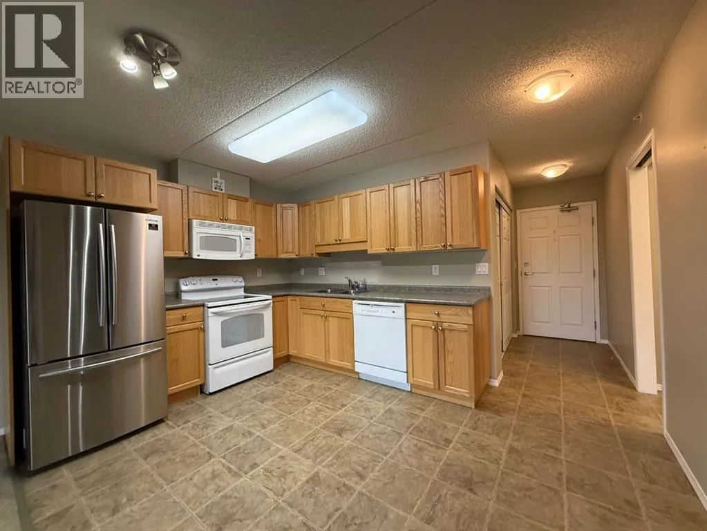Step into your bright and inviting new home at Prairie Vista Condos - Unit 302! This move-in-ready two-bedroom, two-bathroom gem welcomes you with sun-drenched east-facing views that fill the space with cheerful morning light. Designed for effortless living, the unit features convenient in-suite laundry and a generously sized covered balcony - complete with not one, but two storage units at either end for all your organizational needs. The well-appointed kitchen is a home chef's delight, boasting a full suite of appliances including refrigerator, stove, dishwasher, and a clever space-saving hood fan that doubles as a microwave. Retreat to your spacious primary bedroom featuring a private two-piece ensuite for added comfort and convenience. As part of the Prairie Vista community, you'll enjoy access to fantastic amenities like a fitness room for your workouts, a shuffleboard table for friendly competition, a quiet library for relaxation, and a shared meeting room perfect for hosting gatherings. The attached garage makes coming home a breeze - simply park, grab a cart, and take the elevator straight to your door. This beautifully maintained condo in a warm, welcoming community offers the perfect blend of comfort and convenience. Don't miss your chance to make it yours - schedule a viewing today and experience the Prairie Vista difference for yourself! (id:27476)