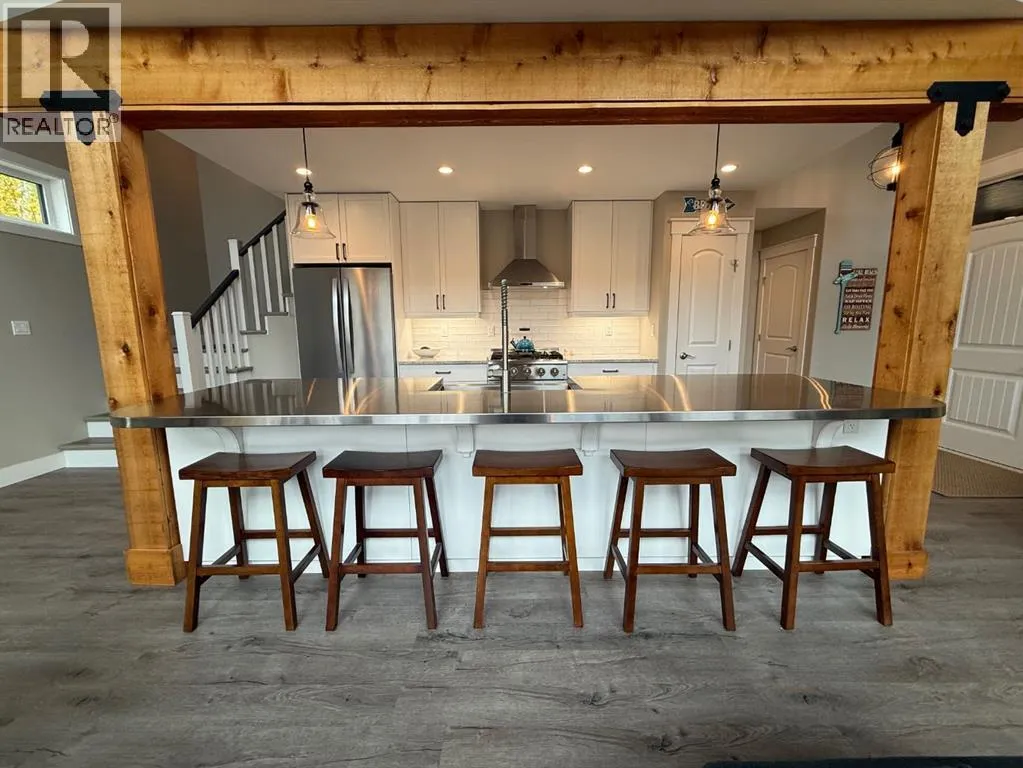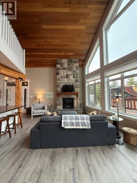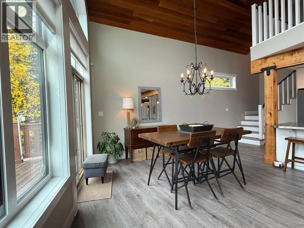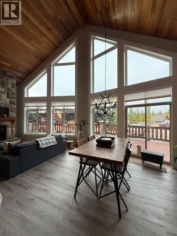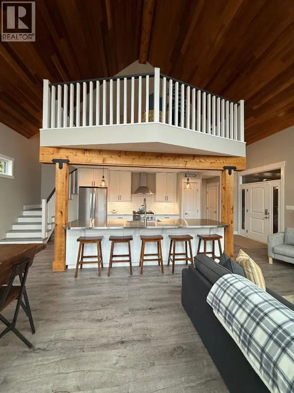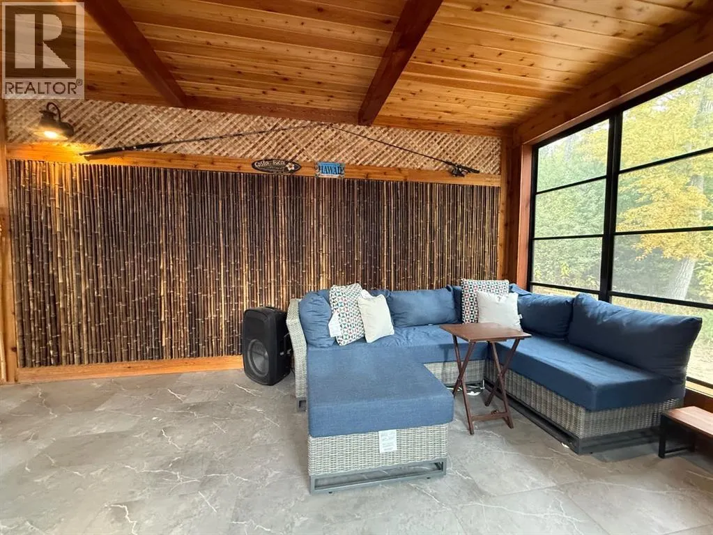 Embodying a harmony of rustic charm and modern elegance, this distinctive 2140 square foot A-frame cabin is situated in the coveted Hilliards Bay Estates on the north shore of Lesser Slave Lake. The home's striking architectural lines are gracefully anchored by a stone facade and metal roof, leading to a private backyard that meets the gentle flow of Moneris Creek. The property is meticulously planned for hosting, featuring two dedicated, full-service 30-amp RV spots with complete hookups, ensuring every guest enjoys comfort and convenience. Inside, an open-concept living space is defined by soaring cedar ceilings and beams, where the organic warmth of wood is beautifully contrasted by the crisp, modern appeal of a white quartz kitchen, stainless steel accents, and a clean subway tile backsplash. This refined balance extends to the heated, covered deckâa seamless outdoor room featuring a cedar ceiling, a gas fireplace, and a minimalist bar, crafted for both tranquil relaxation and elegant entertaining. Further enhancing the property's appeal is a detached guest house, providing a sleek and versatile space with an open-air ambiance. The entire estate benefits from the premier amenities of Hilliards Bay, including direct marina access, positioning this property not just as a retreat, but as a sophisticated sanctuary where minimalist design, natural grandeur, and unparalleled hospitality exist in perfect balance. Lot 96: Hilliards Bay Estates Map. Call today to book your private viewing. (id:27476)