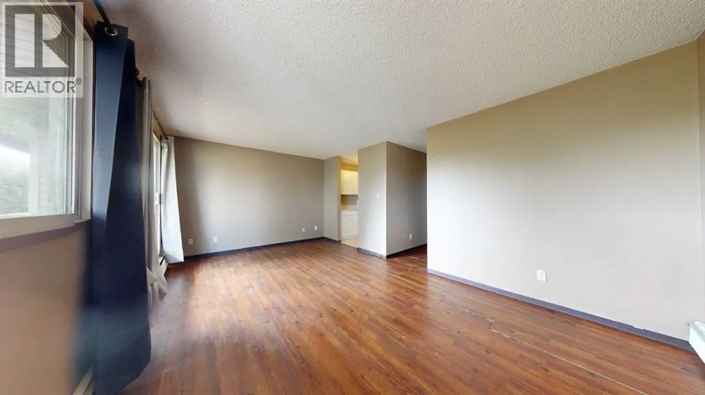 1 bed + Den in The Meadows on 44th, in High Prairie! Unit features an entry way closet and vinyl flooring throughout. Walk through kitchen with ample cabinets. Living room has access to the attached rear facing balcony. Good sized bedroom and 4 piece bathroom. Digital, coinless laundry machines on site. 1 parking stall included. Heat and water included, tenant pays electricity. Sorry, no pets here. Application required prior to viewing. (id:27476)