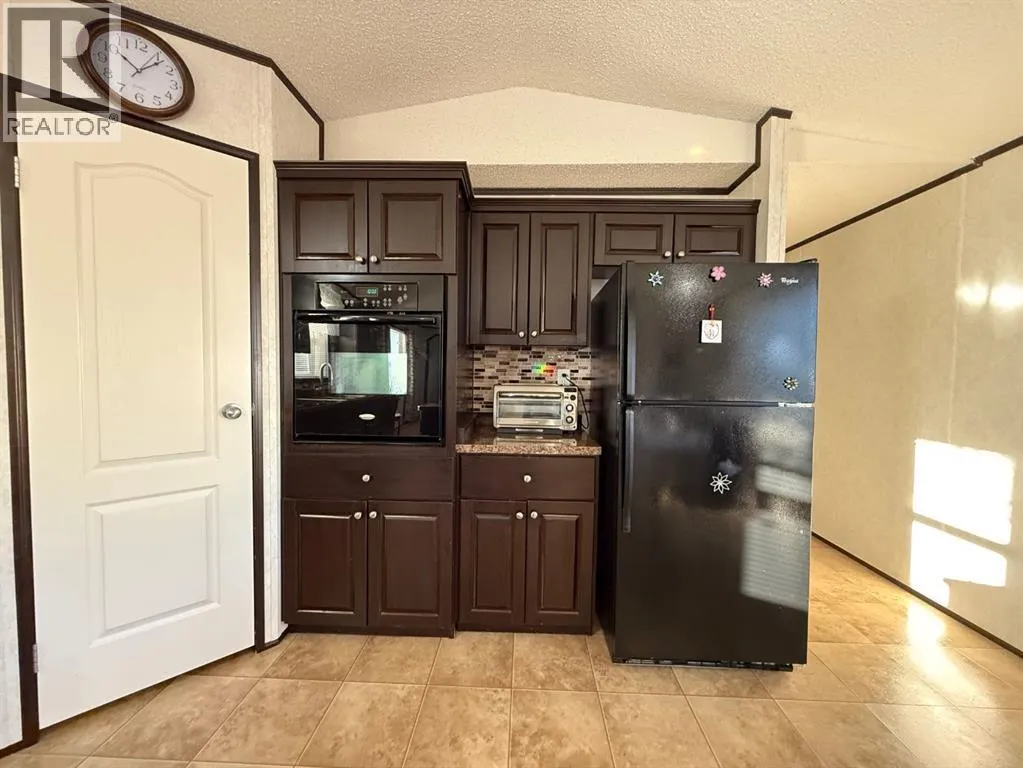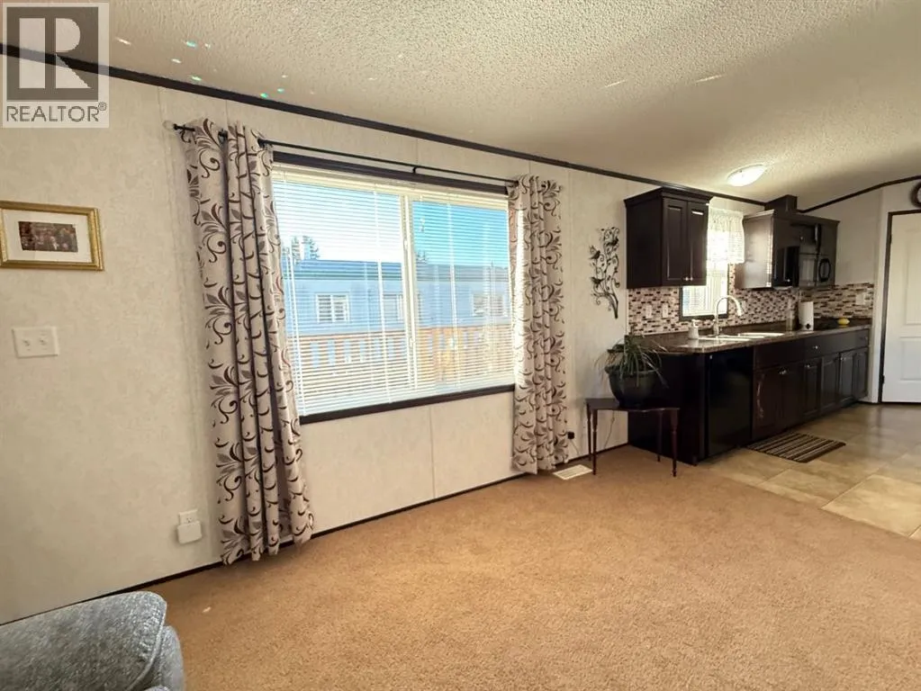 Located in Eastview Estates Park, this well-maintained 16x80 three-bedroom mobile home presents a fantastic turn-key opportunity, available for purchase with a lot lease or to be moved. Step inside to discover a home that blends comfort and clever upgrades. The primary bedroom features a private ensuite with a standalone shower, a custom-built linen shelf, and the luxury of a walk-in closet. The heart of the home is the open-concept kitchen and dining area, highlighted by vaulted ceilings that create an airy atmosphere. The kitchen has stylish dark wood cabinets complemented by a monochromatic backsplash and is equipped with black appliances, a brand new stainless steel tap, and a unique layout featuring a central island and a chest-height wall stove with a separate cooktop. A creative touch repurposes laundry room cabinets into a practical breakfast bar in the dining room. The spacious living room is filled with natural light and offers a peaceful view of the deck through a large window. Outside is a generous 10x46 deck, complete with a ramp and fresh staining, while privacy screening on the west end ensures secluded relaxation. This meticulously maintained property includes crucial recent updates such as new skirting and a new belly installed in 2022, complete with heating tape and revamped water lines for ultimate peace of mind. Call, text or email today to book your viewing appointment. (id:27476)