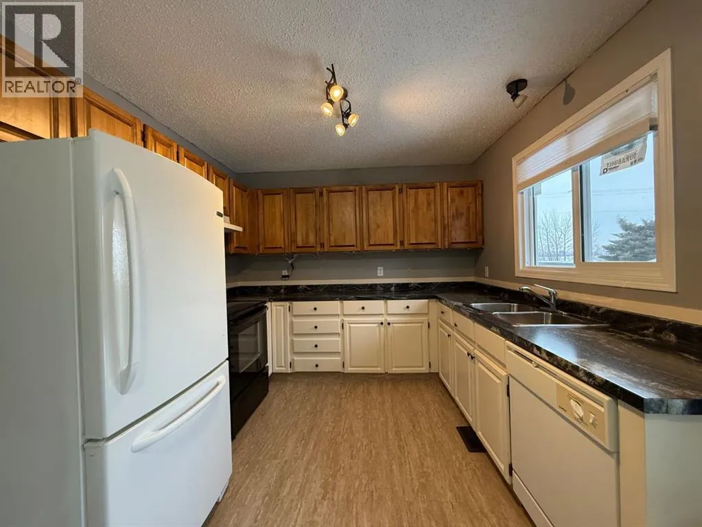 Situated in a coveted location just east of the Catholic school, this well-presented 910 sq ft bilevel home offers a fantastic blend of comfort and convenience. The upper level features two spacious bedrooms and a full bathroom. Downstairs, you'll find a versatile third bedroom and a second full bathroom, perfect for family, guests, or a home office. Recent updates include newer windows and doors, along with replacement flooring, adding modern efficiency and style. Outside, the property boasts a fenced yard with a handy shed, ideal for storage and outdoor enjoyment. This charming home is a wonderful opportunity in a highly desirable neighborhood. Immediate possession available. Call, email or text today to book your viewing. (id:27476)