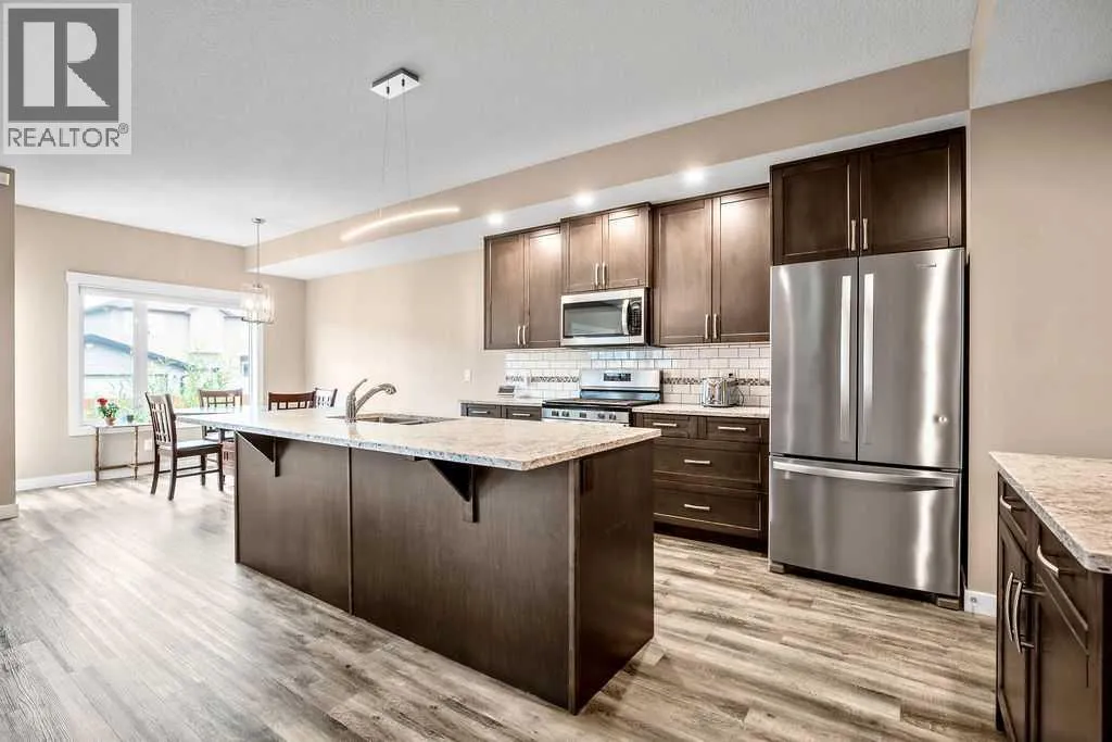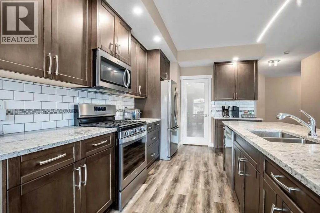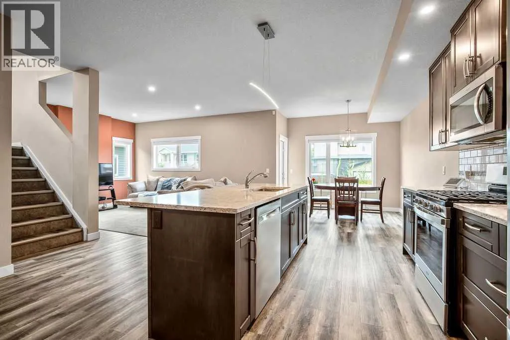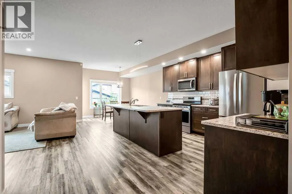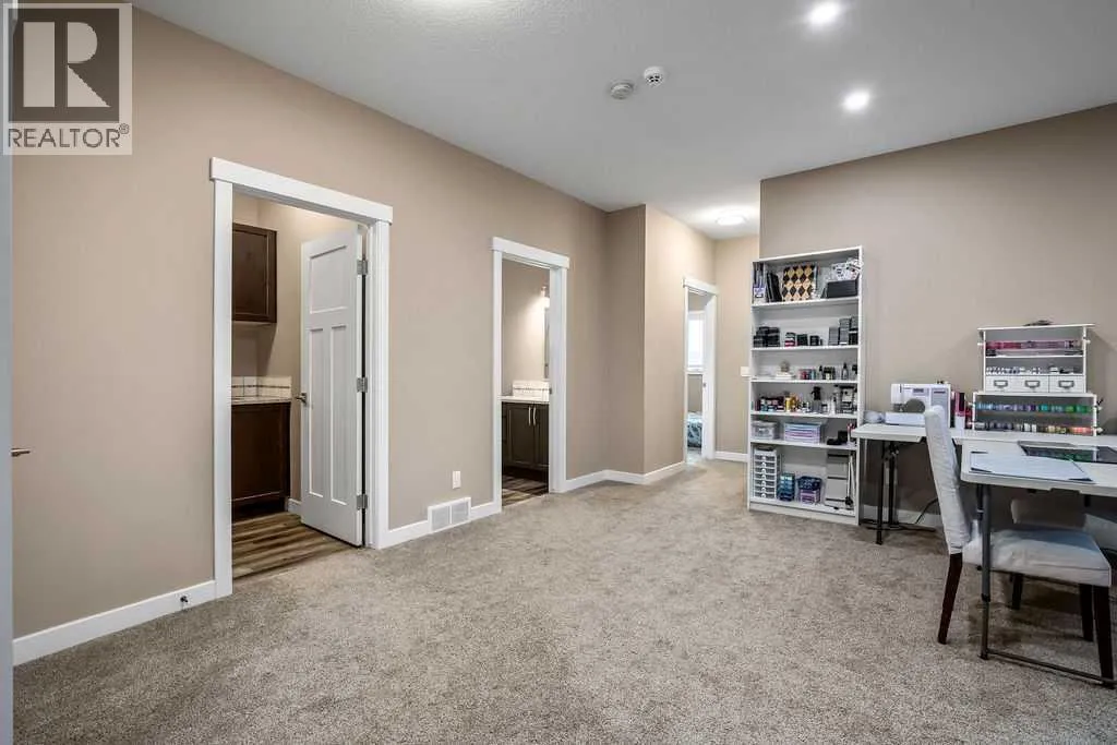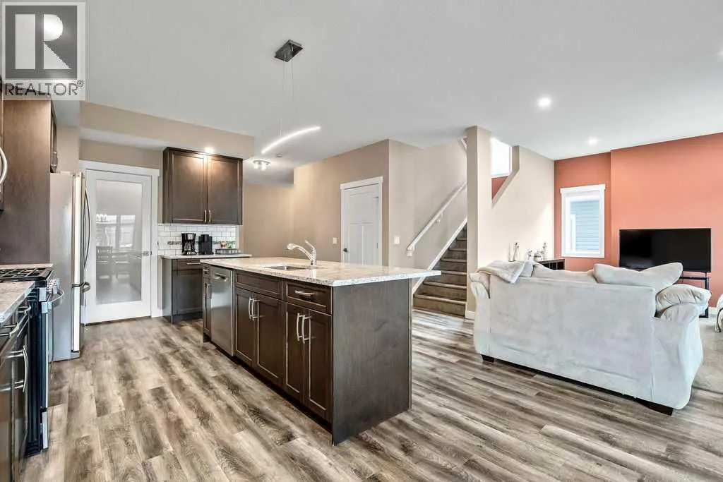 Welcome to Highwood Village This beautifully maintained 2-storey, 2229 sqft, semi-detached home is tucked into one of the most desirable neighborhoods' in the area. From the moment you step inside, youâll love the open concept layout, 9-foot ceilings, and the wide staircase that brings an airy, expansive feel to the entire home.The main floor offers both style and function with a dedicated office, perfect for working from home or managing busy family life. The spacious kitchen is a true standout, featuring granite countertops, a large island, gas range, stainless steel appliances, and a walk-through pantry for added convenience. The adjacent dining area flows seamlessly onto the large back deck, ideal for entertaining or relaxed family dinners.Upstairs, youâll find a versatile bonus room, great as a playroom, TV lounge, or creative space. The upper-floor laundry room is thoughtfully designed with granite counters and a sink, making chores a breeze.The primary suite is a peaceful retreat with a walk-in closet and a luxurious 4-piece ensuite featuring a walk-in shower, double vanity, and built-in makeup table. Two additional spacious bedrooms and a 4-piece main bathroom complete the upper level.The unfinished basement offers endless potential to finish as you wish. Outside, enjoy the fully fenced backyard, large enough for a trampoline, with back-alley access and a double attached garage out front for all your storage and parking needs.Located close to schools, playgrounds, and with easy highway access via Longview Trail, this is the perfect home in a community youâll love.Donât miss your chance to live in Highwood Village â opportunities like this donât come often! (id:27476)