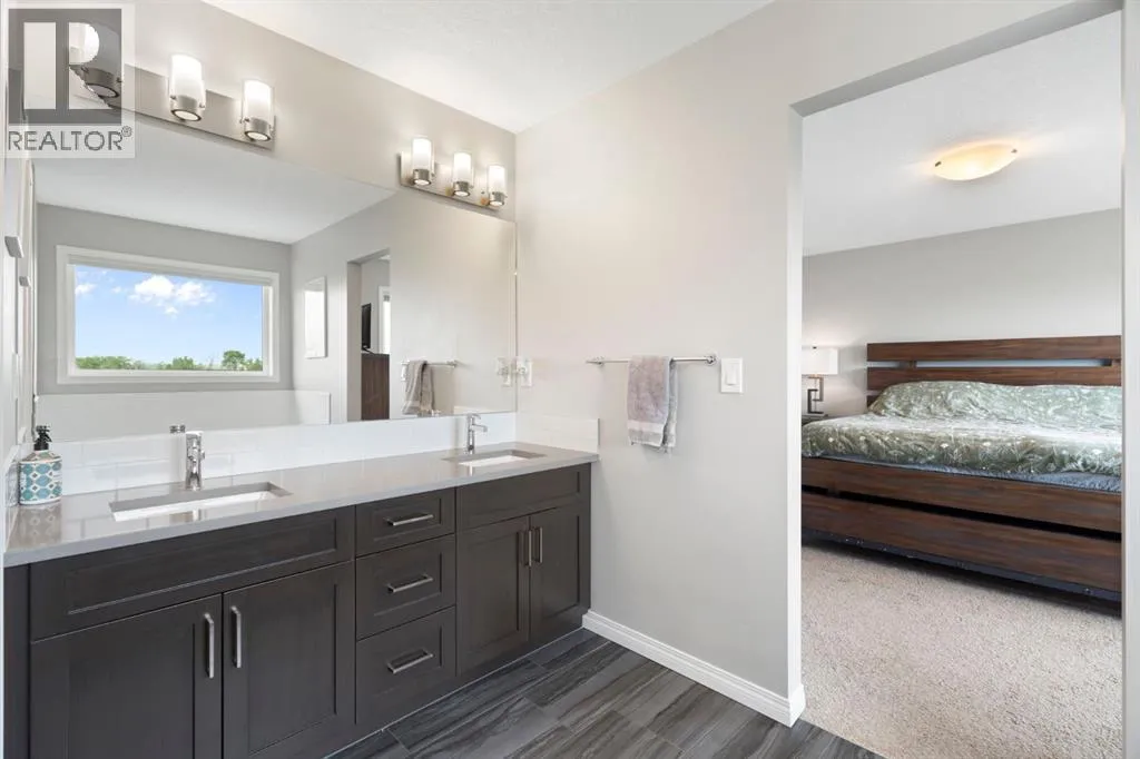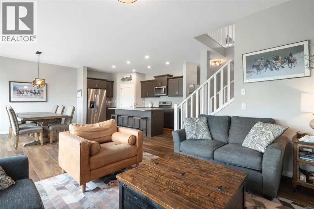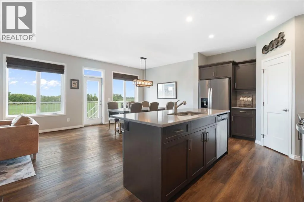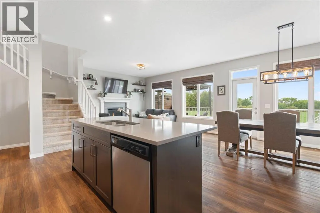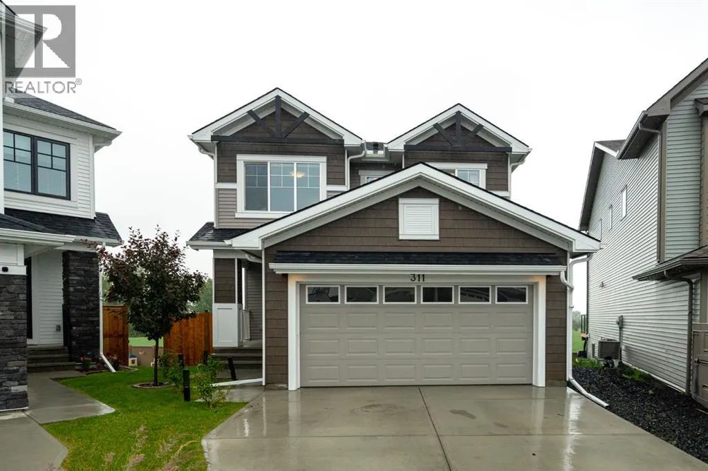 Welcome to 311 Monterey Place SE in beautiful High River, Alberta, where the pace is slower, the skies are wider, and the backyard views are downright dreamy.This warm and welcoming 2-storey home offers nearly 3,000 square feet of thoughtfully developed living space. Step inside and youâre greeted by a spacious, open-concept main floor featuring a modern kitchen with quartz counters, loads of counter space, and a walk-in pantry to keep everything tucked away. The dining area flows beautifully into the living room, where a cozy gas fireplace sets the tone for family nights or lazy Sundays. Just around the corner, but cleverly tucked away for privacy, is a main floor office, perfect for those who work from home or need a quiet retreat.Upstairs, you'll find three generously sized bedrooms, a bright bonus room, and a thoughtfully designed full bathroom with a double vanity (so yes, no more morning sink battles). The primary suite is your peaceful getaway, complete with beautiful ensuite with a soaker tub and walk-in closet. A dedicated laundry room upstairs, which if you've got a family, you know how important a full room for laundry is!The sunshine basement is fully finished and fabulously functional with a fourth bedroom, full bathroom, rec room, and a stylish wet bar area. Large basement windows bring in tons of light, making it feel like anything but a basement. This basement could be turned into a walkout by installing a door where the windows are near the wet bar!Outside, the west-facing pie-shaped backyard backs onto open farmland leased by a local farmer, giving you peaceful prairie views and the kind of backyard most people only dream of. The home also features A/C to keep you cool in the summer and warm in the winter, plus gorgeous trim lighting that adds a little sparkle year-round. And for those who like their winters toasty, the double attached garage is already equipped with a heater, because stepping into a warm car on a cold Alberta morning? Tha tâs living the dream.This is the kind of home that just feels good, inside and out. Come take a look and see why life is better in High River. (id:27476)