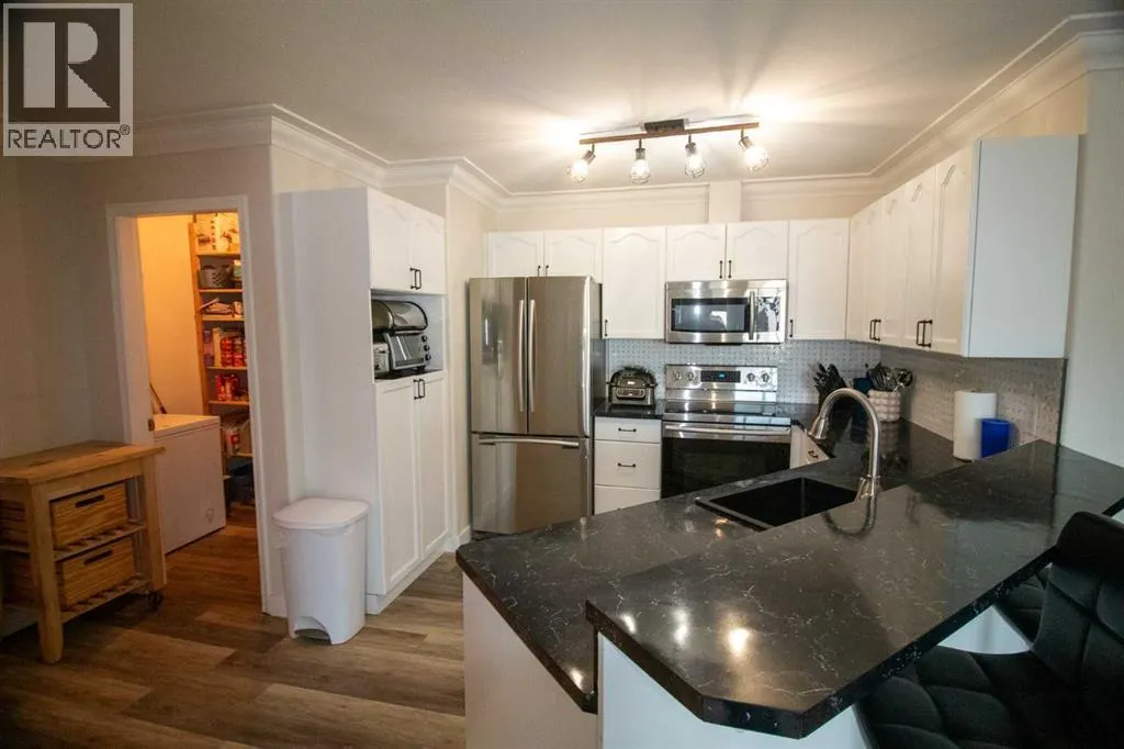 Spacious 4-bedroom, 2-bathroom condo offering a rare combination of comfort and functionality in High River, featuring more than 1700 square feet of living space. Ideal for families, both single families and multi-generational, first-time buyers, or investors, this well-maintained home features an open-concept living area with a cozy gas fireplace and a private deck off the living roomâperfect for relaxing or entertaining. The kitchen includes a refrigerator with a built-in icemaker and a large pantry, while the in-suite laundry boasts a top-end, full-sized washer and dryer for your convenience. Both bathrooms are 4-piece, with one featuring a deep soaker tub for added comfort. Ample storage is available throughout, including in-suite storage and two walk-in closets, one of which is in the primary bedroom. All four bedrooms are equipped with custom blackout blinds, offering privacy and restful sleep. Natural light fills the home, and the flexible layout allows the fourth bedroom to serve as an office, guest room, or hobby space. Located in a quiet, family-friendly area, the property is within minutes of schools, parks, shopping, and just a short commute to Calgary. Move-in ready and equipped for comfortable living, this is a rare opportunity to own a spacious and versatile home in High River. The entry is designed to be separate for 2 bedroom lower suite. (id:27476)