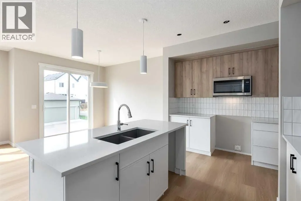 Full landscaping now included! (sod on front and back with mulch on the sides) Ready for immediate possession! This 1705 sq. foot 3-bedroom family home is located on a pie-shaped lot in a quiet cul-de-sac with a West-facing backyard. The main floor of this home has a stunning kitchen that includes quartz counters, an eating bar, stainless steel appliances, built-in microwave, and a spacious pantry. This level also features a convenient main floor pocket office, mud room, dining room, and cozy living room. A beautiful spindle railing leads the way to the upper level that has 3 bedrooms including the spacious primary with a walk-in closet and 4-piece ensuite. Upstairs also a family room and laundry room. The bright and airy basement has a 9â foundation height. Extras include an added window in the stairwell, upgraded lower kitchen and bathroom cabinetry, upgraded quartz countertops throughout, tile shower in the ensuite, triple pane windows, and an exterior gas line for a future BBQ. Close to walking paths, Montrose Pond, the recreation centre, parks, tennis courts and schools, this home is in an ideal location. Please click the multimedia tab for an interactive virtual 3D tour. Agents please see private remarks (id:27476)