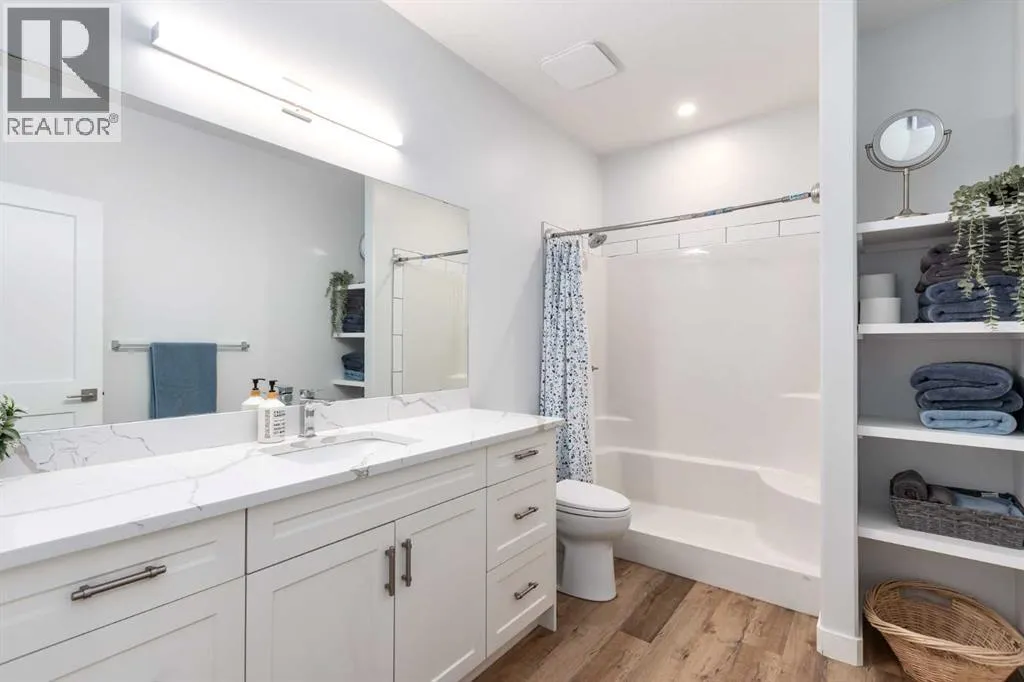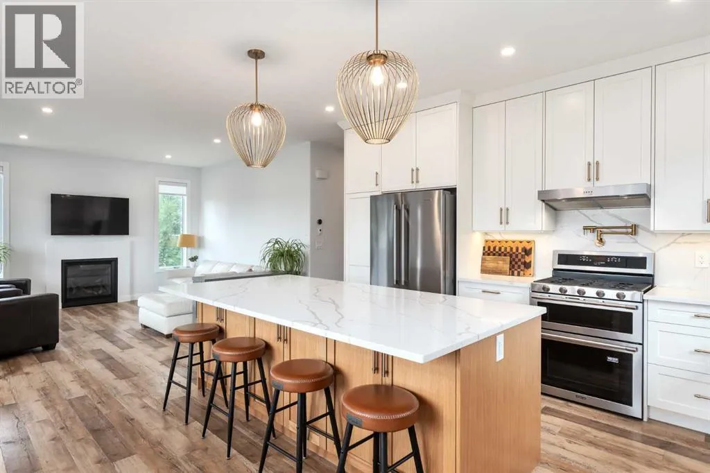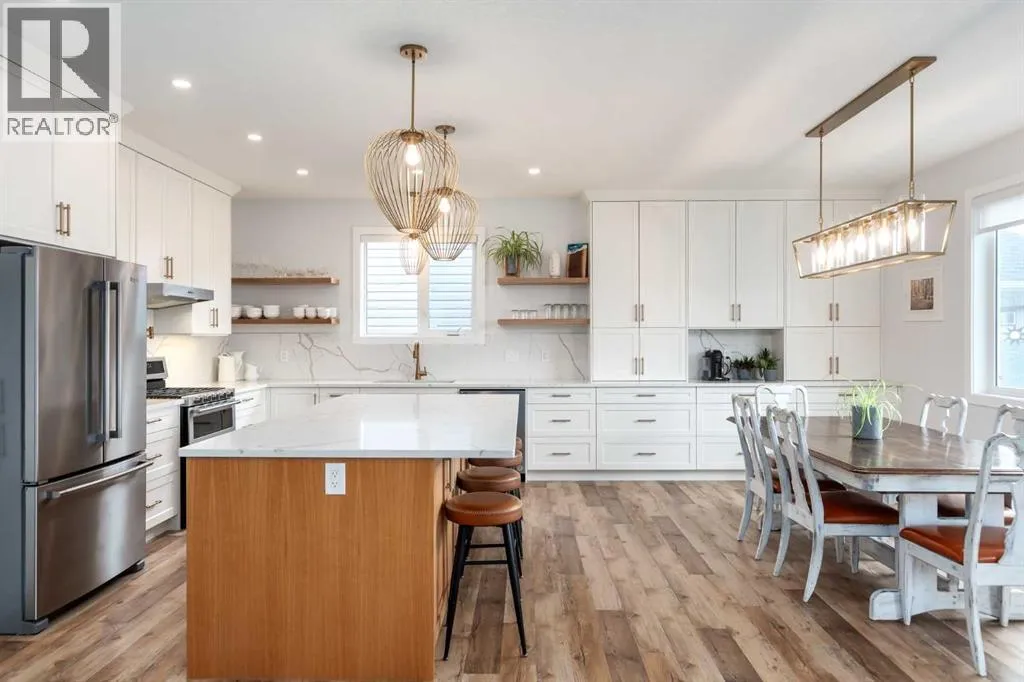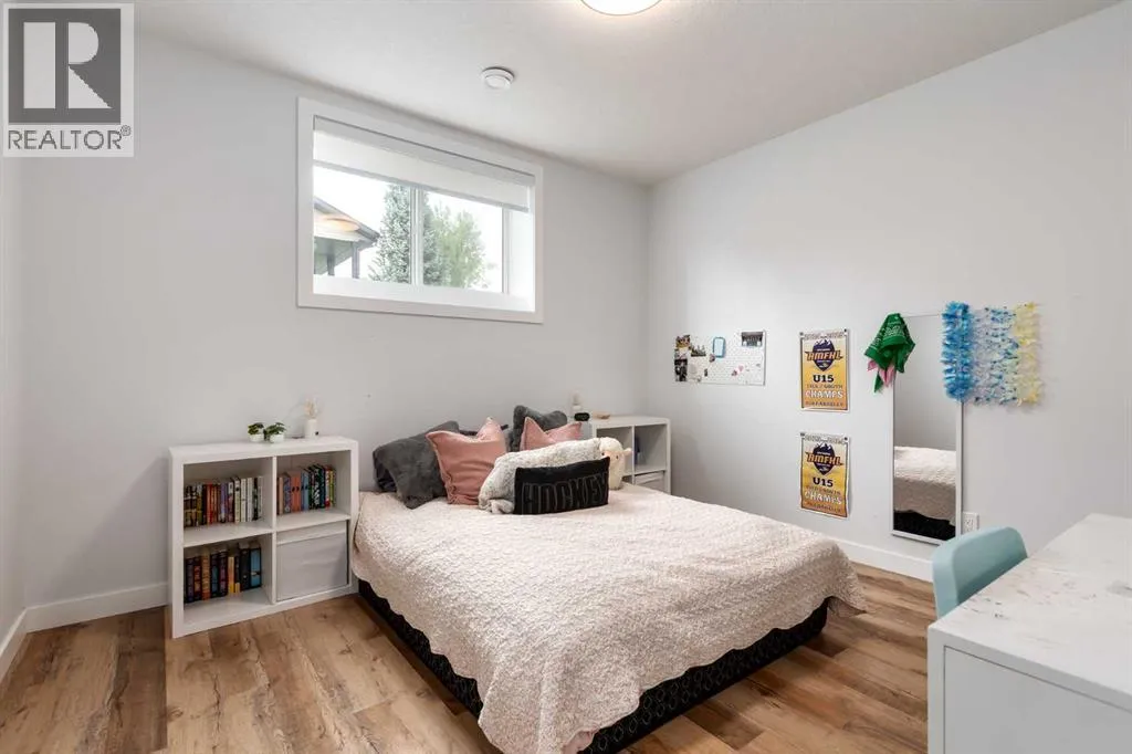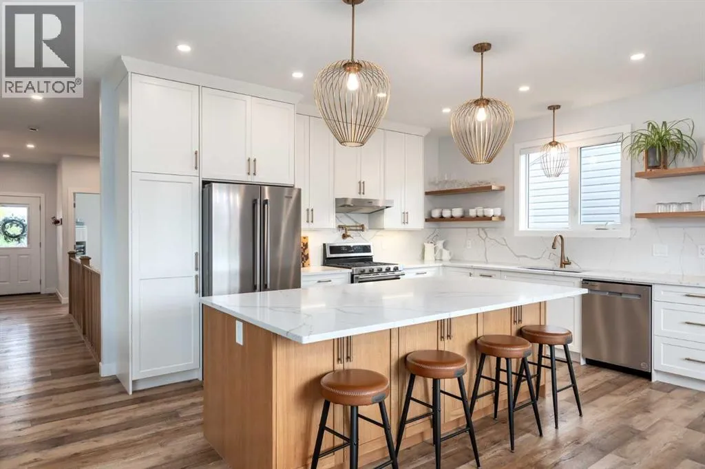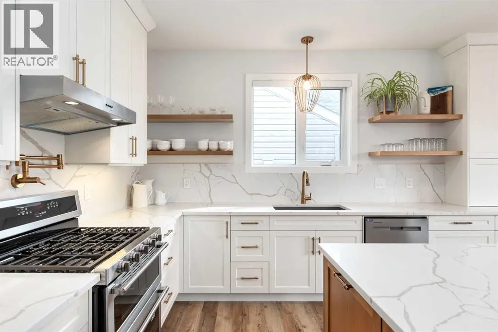Five bedroom, 1400 sq ft high quality bungalow designed for a family. This home has an exceptional kitchen with beautiful high-end finishes, quartz counters and backsplash, large island, and an over-the-stove pot tap. The home is flooded with natural light and the dining room opens onto a private, covered upper deck. This level also has two bedrooms, including the spacious primary bedroom with a 5-piece ensuite and walk-in closet. Also on the main floor are the living room with cozy gas fireplace, 4-piece bathroom and a laundry room with built in cabinets. In the fully finished walk-out are 3 more bedrooms, 3-piece bathroom, and a 22' x 17â family room. The yard has a large patio, is fully fenced, private, low maintenance, and has alley access. There is an oversized 32â x 24â garage that is insulated, painted, and has excellent lighting. Extras in this home include in-floor heating, central air conditioning, high efficiency boiler, and a water softener. Please click the multimedia tab for an interactive virtual 3D tour and floor plans. (id:27476)