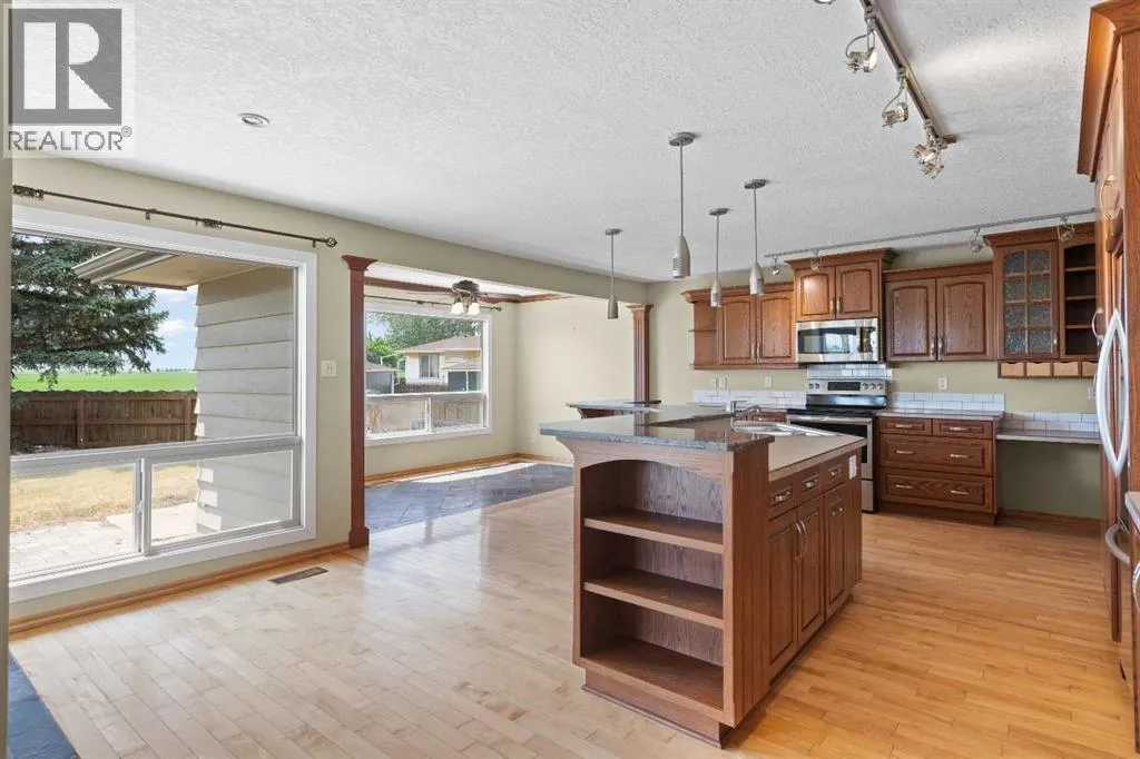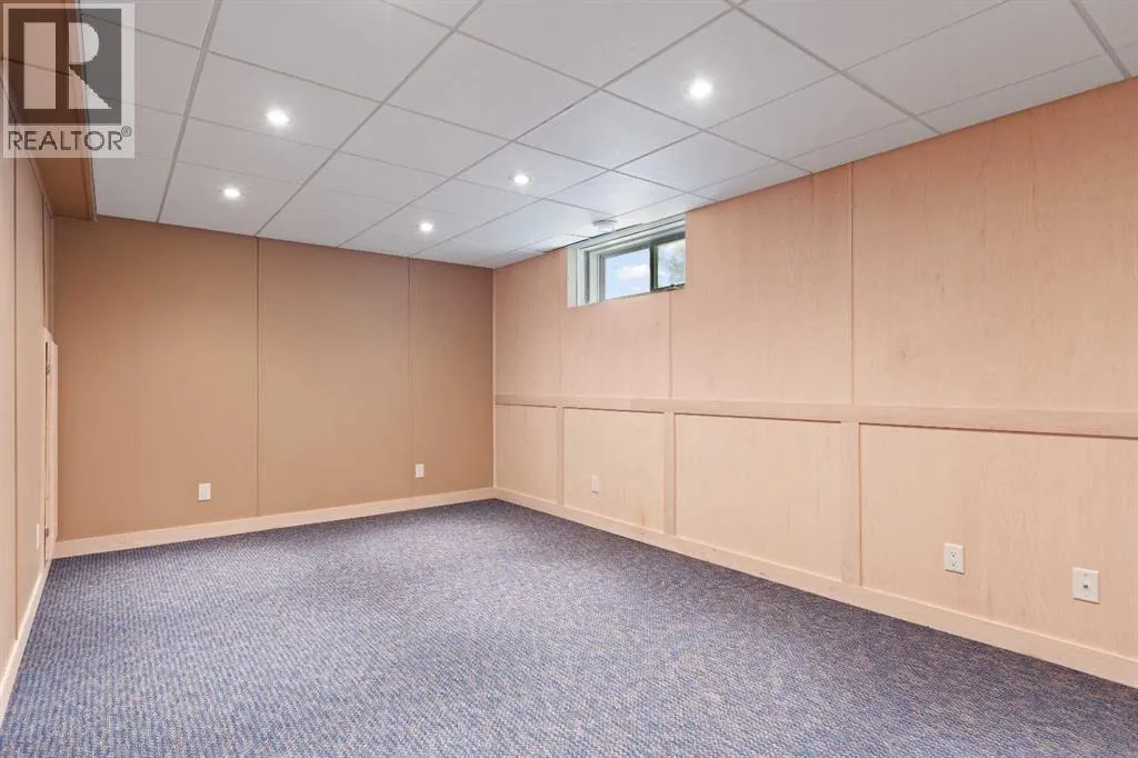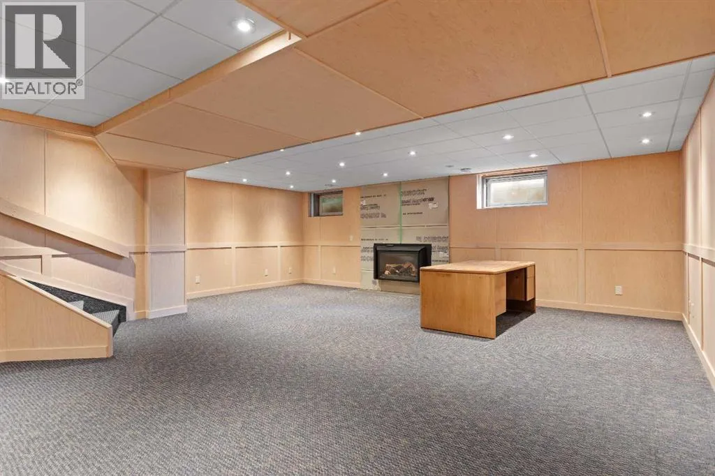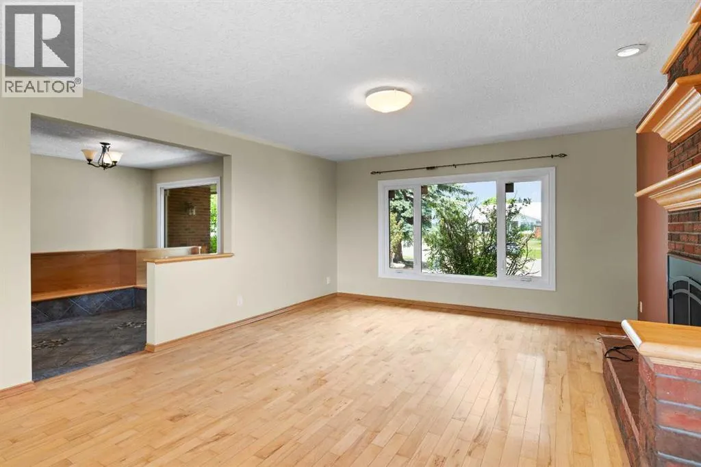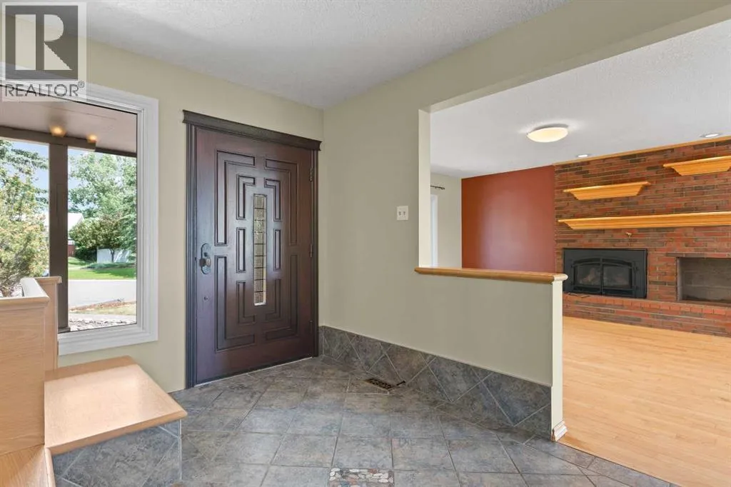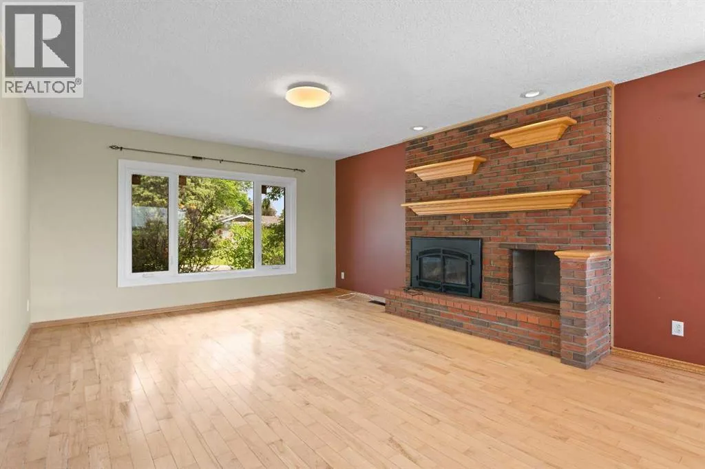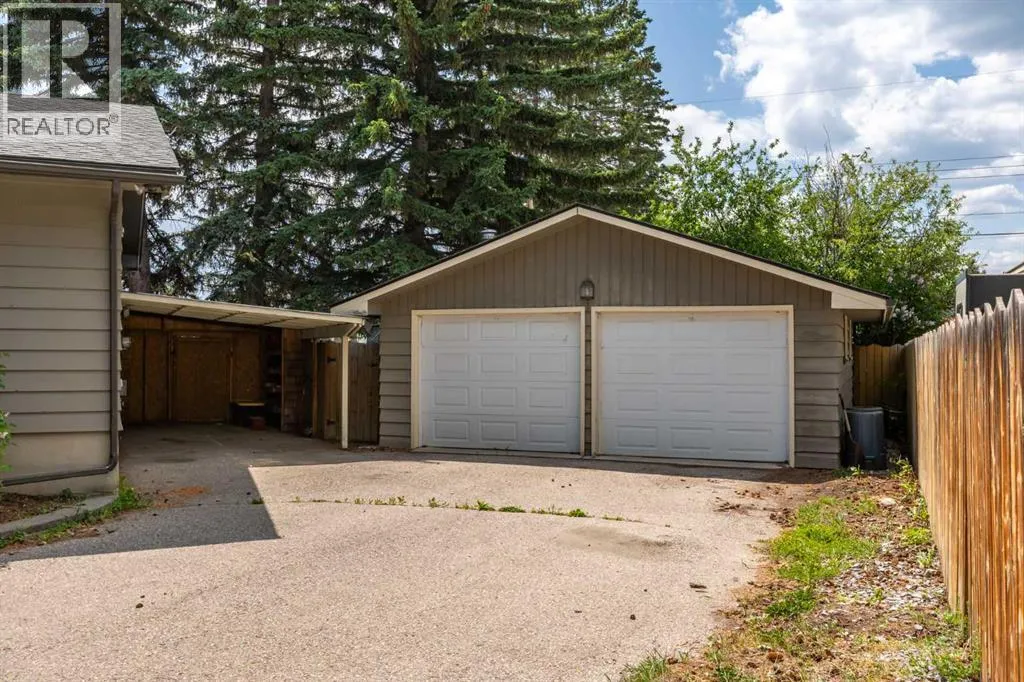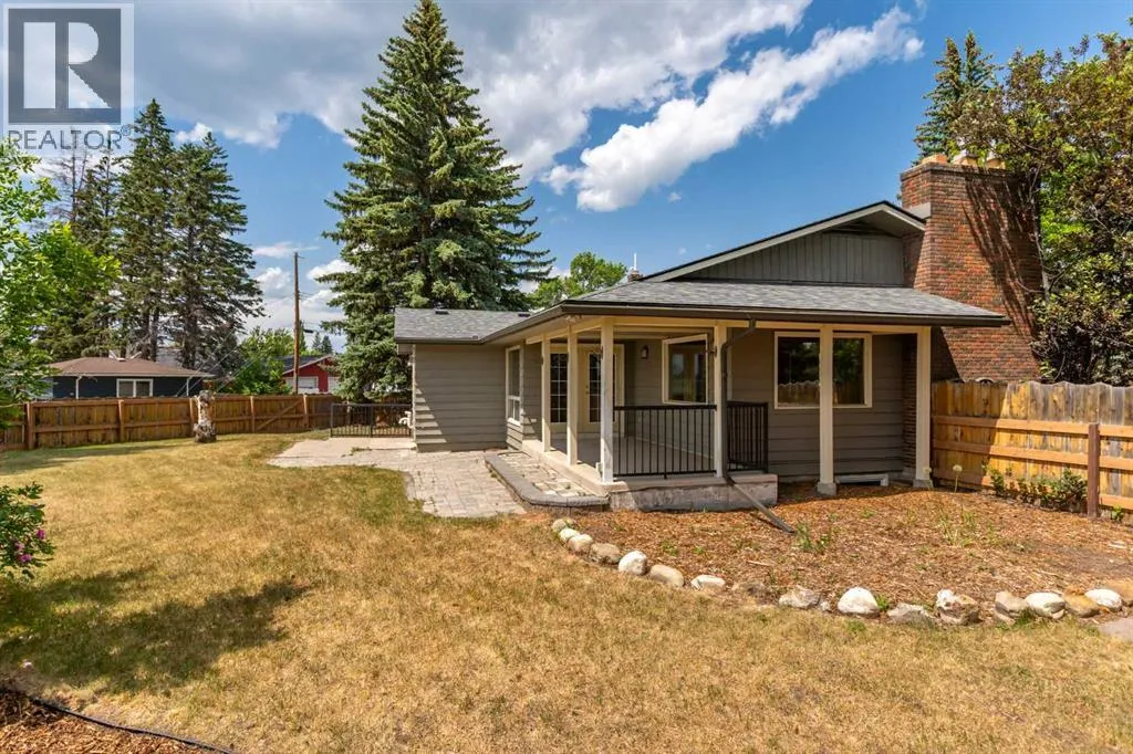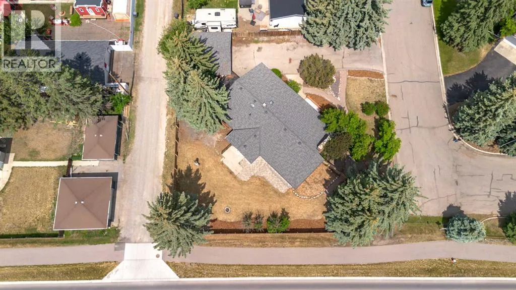 Nestled in a prime SW location, this fully finished 1,857 sq ft bungalow sits on a beautifully landscaped double lot, spanning over 13,000 sq ft. As you enter, you're greeted by a spacious foyer that leads into a generous living room, offering serene views of the backyard and featuring an original wood-burning fireplace with a gas insert. The open-concept kitchen (22' x 18') is a chefâs dream, with granite countertops, custom cabinetry reaching the ceiling, a large island, and a dumbwaiter to the basement hidden behind a discreet push panel. This level also boasts real hardwood floors, a 4-piece bathroom, and three bedrooms, including the 18â x 11â primary suite with a 3-piece ensuite. The basement is a cozy retreat with maple wood paneling, two additional bedrooms, a den, a massive rec room with another fireplace, and a 3-piece bathroom. Thereâs direct access from a side door, and with proper town approval and permits, this space has excellent suite potential. The mature landscaping and stunning southwest-facing views from the backyard and porch are simply unmatched. Additional highlights of this family-friendly home include two sun tubes, on-demand hot water, individual high-efficiency furnaces for each level, and several newer windows. You'll also find a covered carport and a detached, heated, and insulated garage. If youâre seeking a combination of prime location, breathtaking views, and complete privacy, this is the perfect home for you. Be sure to check out the interactive 3D tour and floor plans via the multimedia tab! (id:27476)