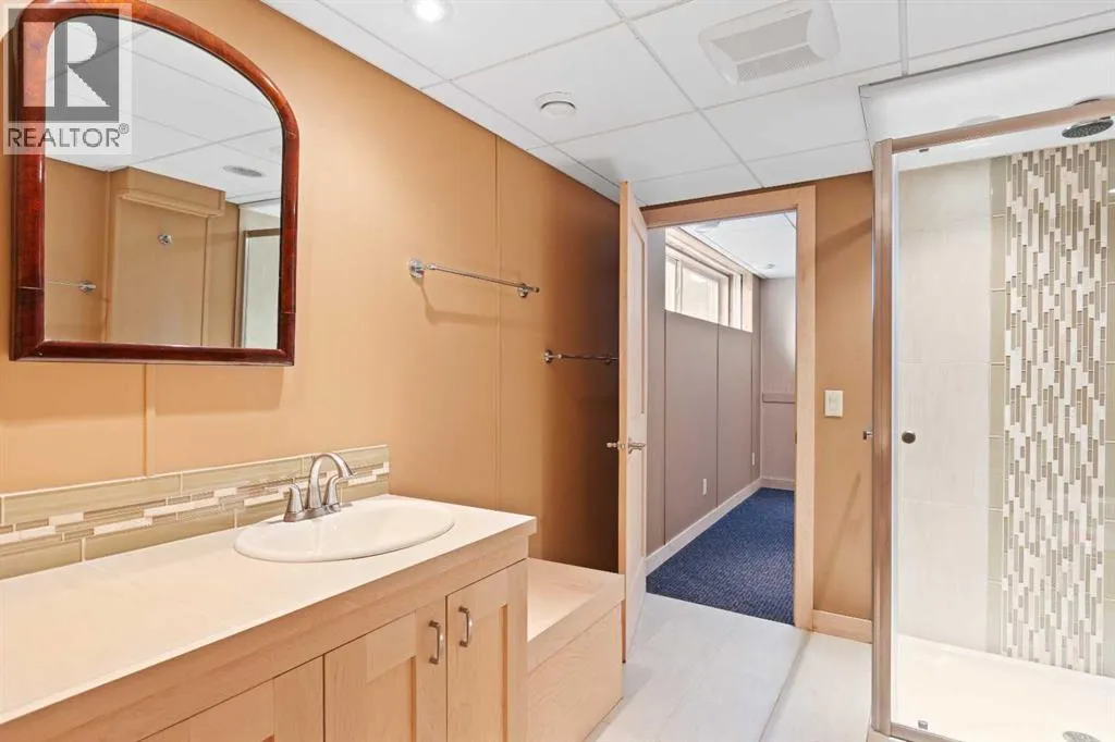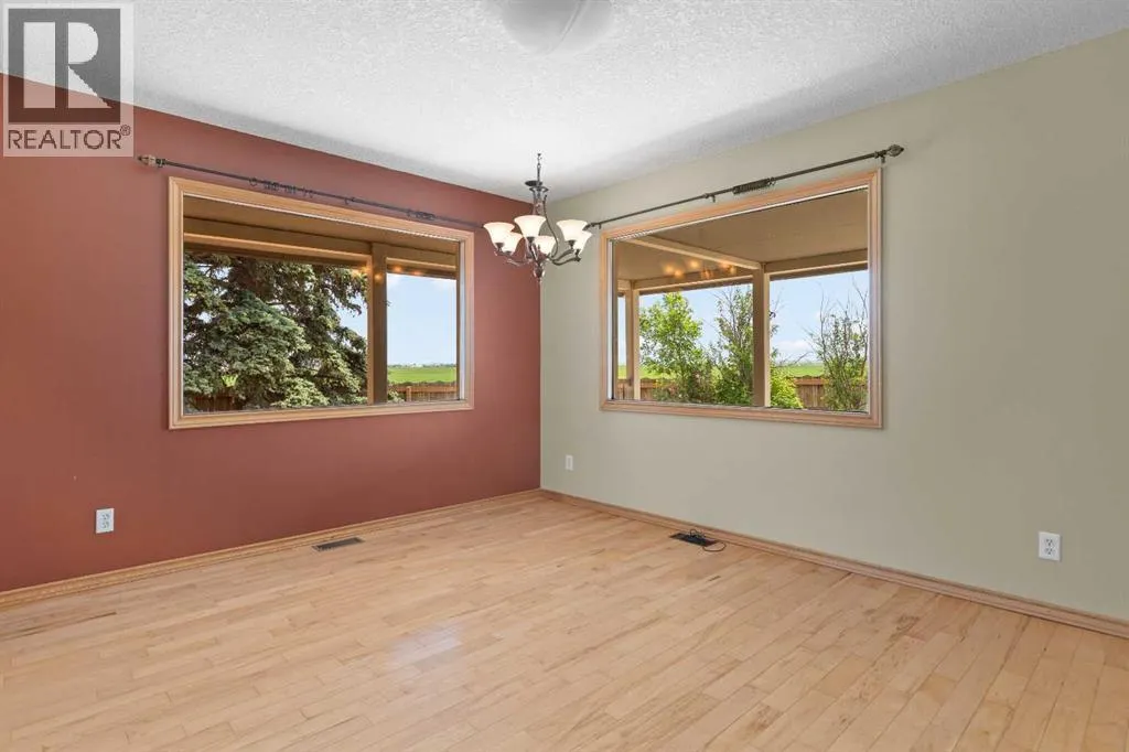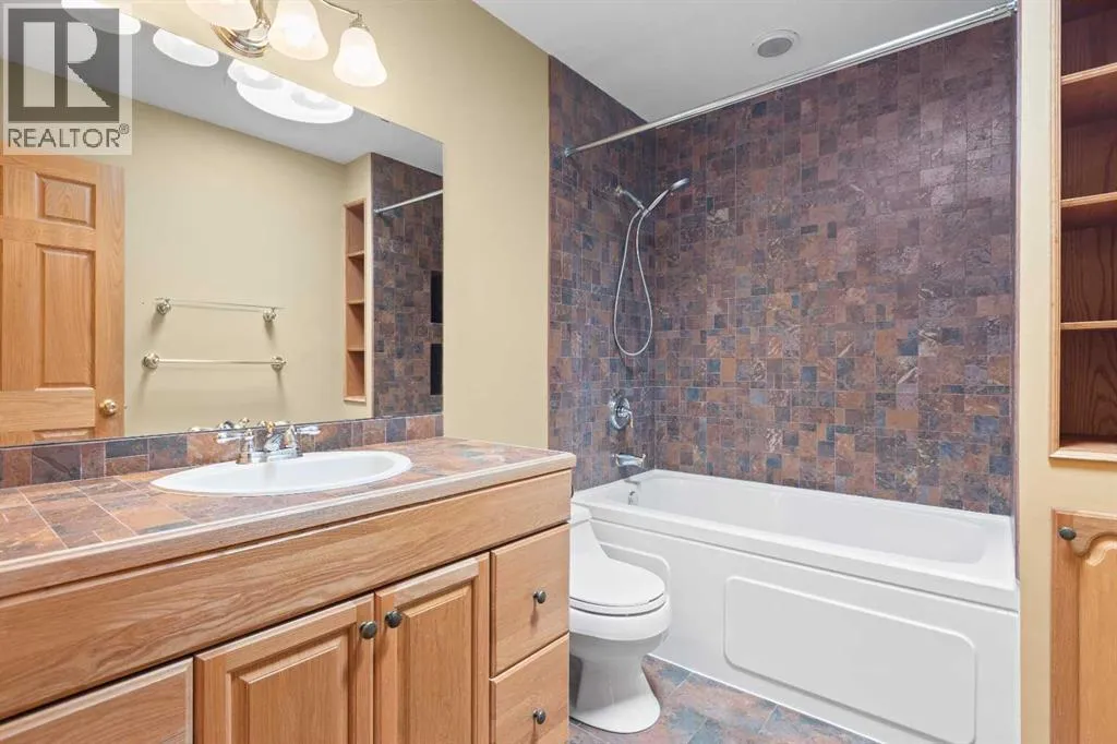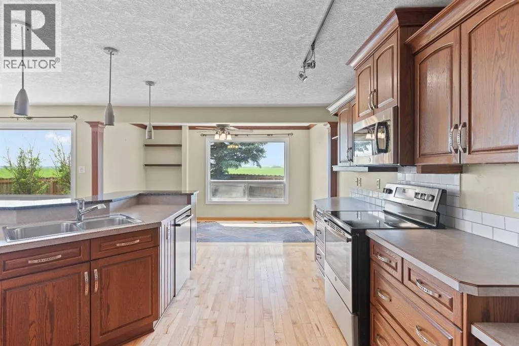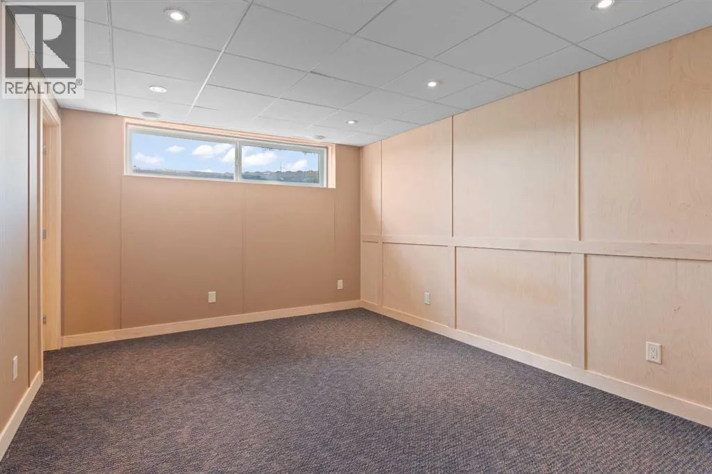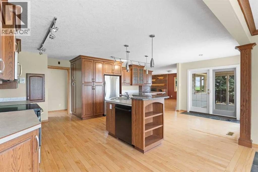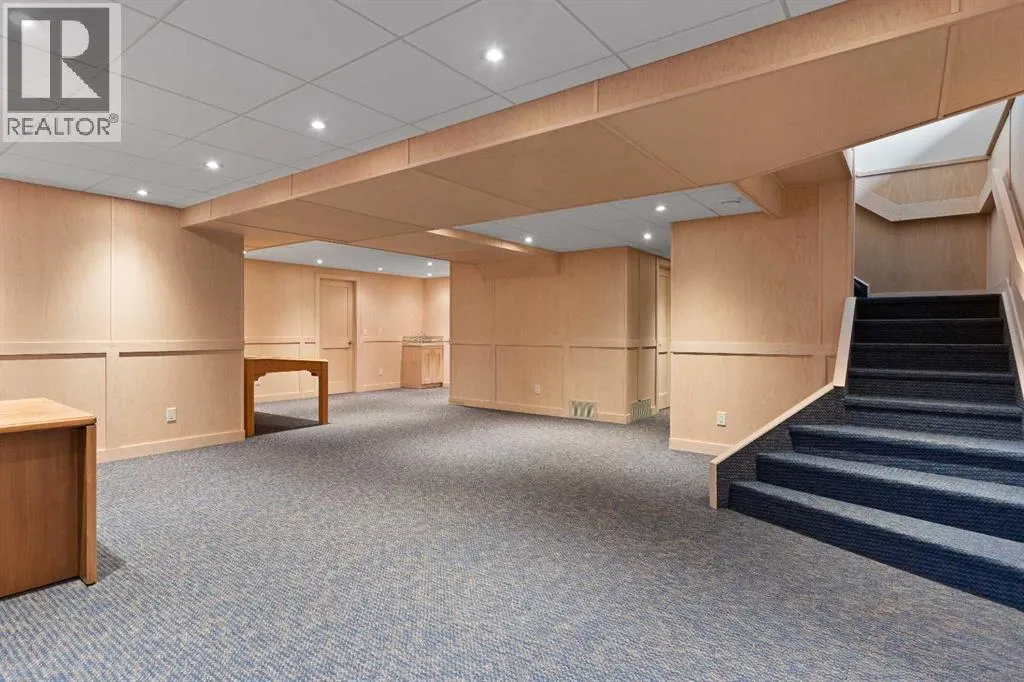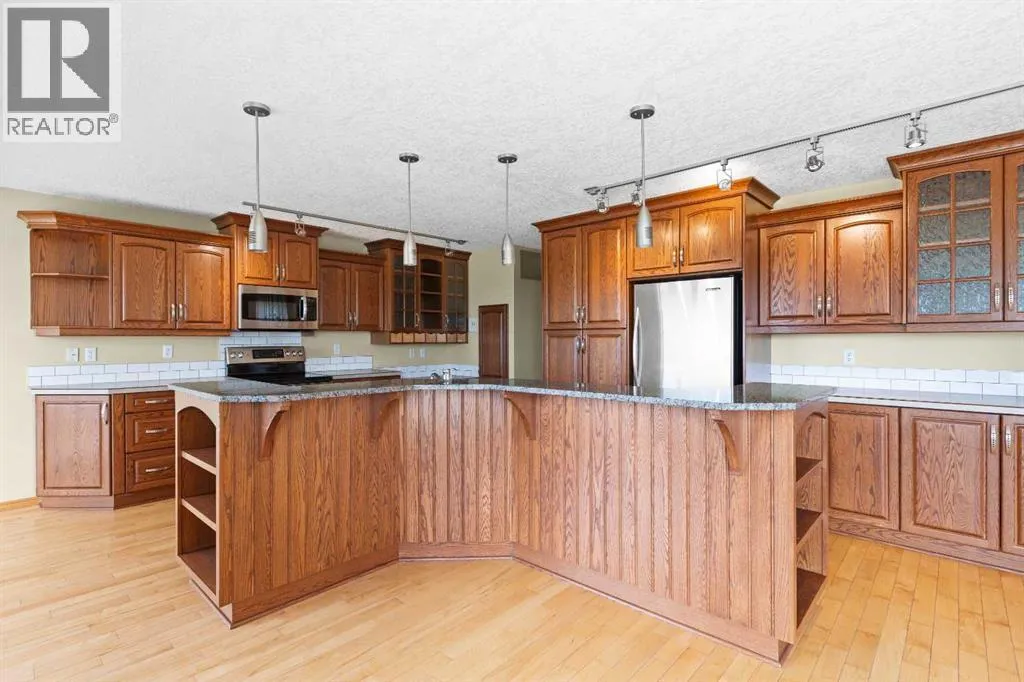 Nestled in a prime SW location, this fully finished 1,857 sq ft bungalow sits on a beautifully landscaped double lot, spanning over 13,000 sq ft. As you enter, you're greeted by a spacious foyer that leads into a generous living room, offering serene views of the backyard and featuring an original wood-burning fireplace with a gas insert. The open-concept kitchen (22' x 18') is a chefâs dream, with granite countertops, custom cabinetry reaching the ceiling, a large island, and a dumbwaiter to the basement hidden behind a discreet push panel. This level also boasts real hardwood floors, a 4-piece bathroom, and three bedrooms, including the 18â x 11â primary suite with a 3-piece ensuite. The basement is a cozy retreat with maple wood paneling, two additional bedrooms, a den, a massive rec room with another fireplace, and a 3-piece bathroom. Thereâs direct access from a side door, and with proper town approval and permits, this space has excellent suite potential. The mature landscaping and stunning southwest-facing views from the backyard and porch are simply unmatched. Additional highlights of this family-friendly home include two sun tubes, on-demand hot water, individual high-efficiency furnaces for each level, and several newer windows. You'll also find a covered carport and a detached, heated, and insulated garage. If youâre seeking a combination of prime location, breathtaking views, and complete privacy, this is the perfect home for you. Be sure to check out the interactive 3D tour and floor plans via the multimedia tab! (id:27476)