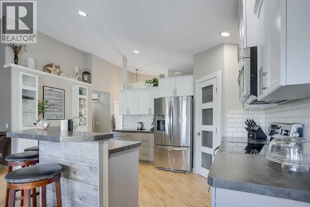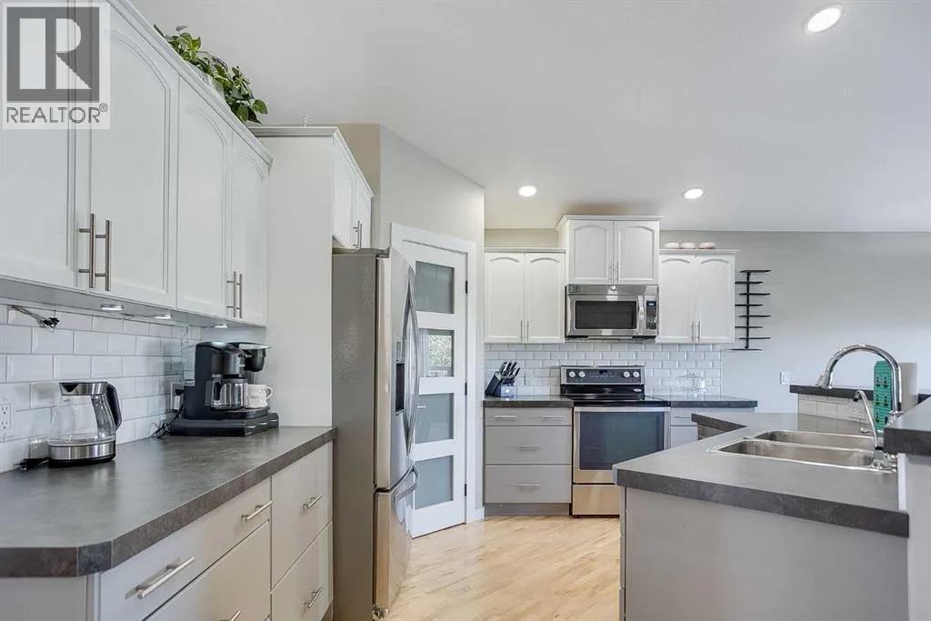 This beautifully maintained walk-out bungalow offers 5 bedrooms, 3 bathrooms, and 2755 sq. ft. of living space designed for both family living and entertaining. The main level welcomes you with vaulted ceilings, fresh paint (2021), and a thoughtful layout that includes a bright living area, 3 bedrooms, main floor laundry, and updated hardwood flowing from the kitchen into the hallway.The fully finished walk-out level has 2 bedrooms, 1 bathroom, a spacious family room with a cozy fireplace, and plenty of storage. Outdoors, enjoy multiple spaces to relax or host â a front deck/patio for morning coffee, a rear deck overlooking green space, a walk-out patio, and a fire pit area.Additional highlights include a double attached garage, central A/C, and a quiet cul-de-sac location. With its blend of comfort, updates, and inviting outdoor living, this home is ready to welcome its next owners. (id:27476)