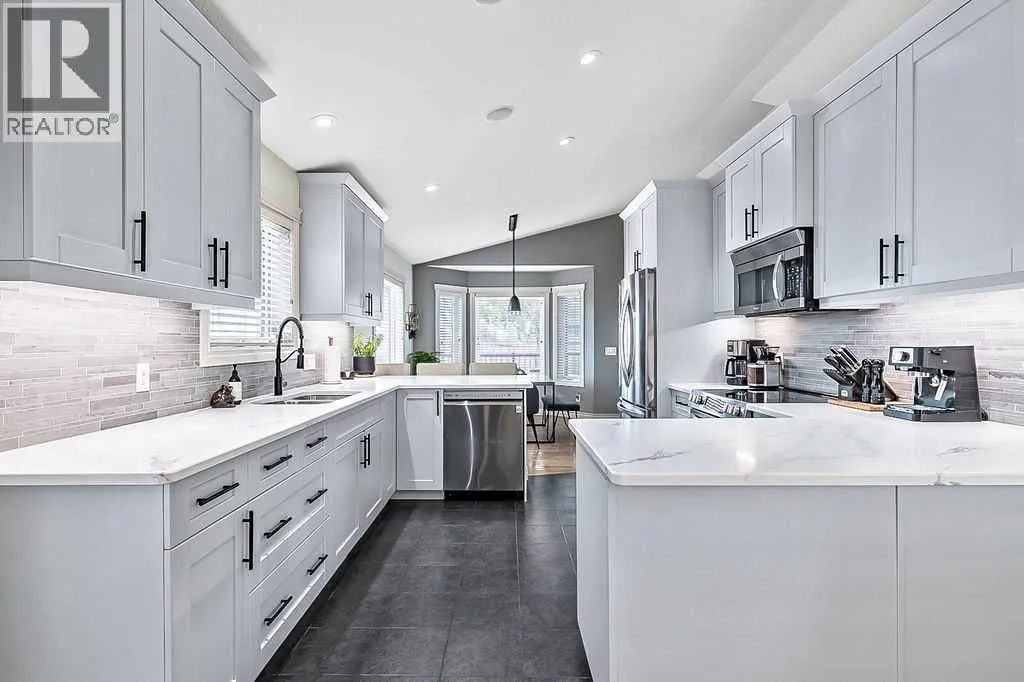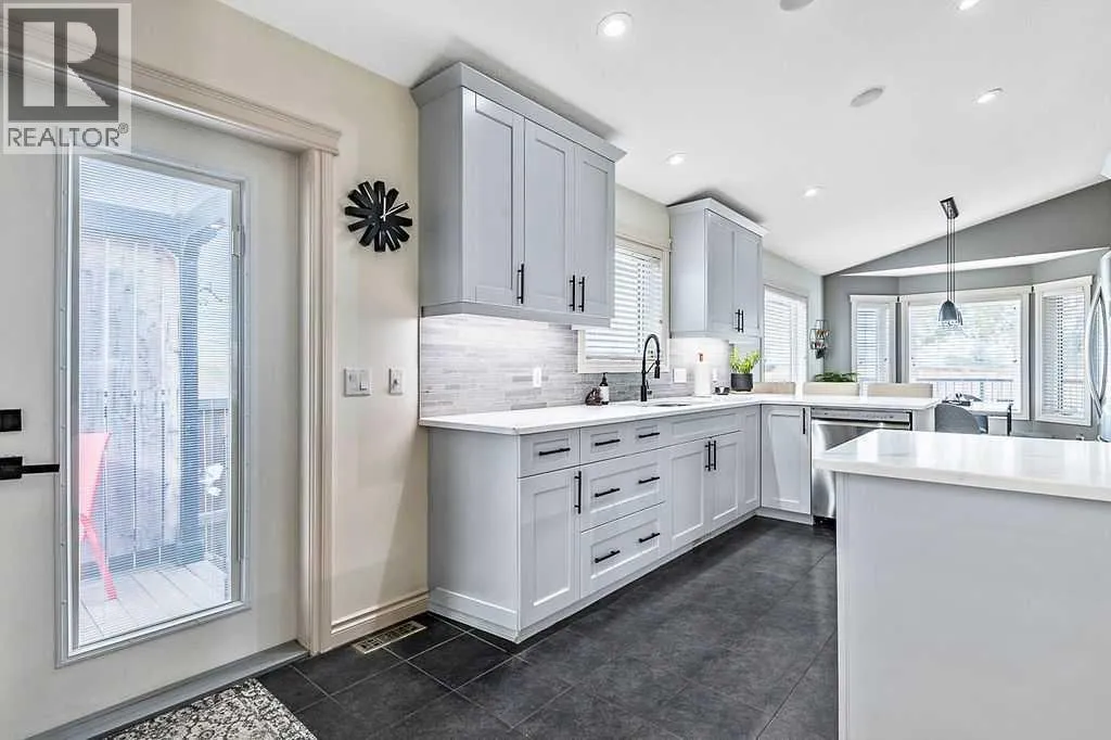 Luxury Living with Exceptional Versatility â A Rare OpportunityWelcome to this beautifully appointed bungalow, where style, comfort, and functionality come together in perfect harmony. Designed to impress, this spacious home offers elegant living on the main level and a thoughtfully designed illegal suite in the walk-out basement â ideal for multigenerational living, guests, or supplementary income. Main Floor Elegance: vaulted ceilings and a stunning gas fireplace anchor the sophisticated family room. Open-concept kitchen and dining area with seamless access to a large, elevated deck complete with a gas BBQ hookup. The chefâs kitchen is a standout feature, complete with professionally painted cabinetry, newer upgraded stainless steel appliances, rich quartz countertops, under-cabinet lighting, a large peninsula with seating, and direct access to the expansive deck with a gas BBQ hookup perfect for indoor/outdoor living. Three generously sized bedrooms offering comfort and privacy, Main floor laundry for added convenience, Integrated surround sound system throughout , Central air conditioning for year-round comfort Outdoor Excellence: Impressive 28' x 26' heated double garage with hot water in-floor heating, 220V power, built-in shelving, and cabinetry. A dream for hobbyists or car enthusiasts. Additional parking beside the garage, perfect for an RV, boat, or multiple vehicles Private yard with direct access from the deck, ideal for entertaining or relaxing in peace. Lumenox custom exterior lighting enhances both curb appeal and security. Walk-Out Lower Level: Large family room that can serve as part of the main home or be closed off for suite privacy. Beautifully finished illegal one-bedroom suite with private access from both inside and outside. Full kitchen, open-concept living and dining area, spacious bedroom, modern bathroom, and private laundry. Enjoy the comfort of hot water in-floor heating throughout the basement. Noteworthy Upgrades: New furnace and HRV unit (2023). New hot water tank (2025). Water softener system. This is more than a home â it's a lifestyle. With premium finishes, extensive upgrades, and a flexible layout tailored for modern families or those seeking a luxurious investment opportunity, this property truly stands out. (id:27476)