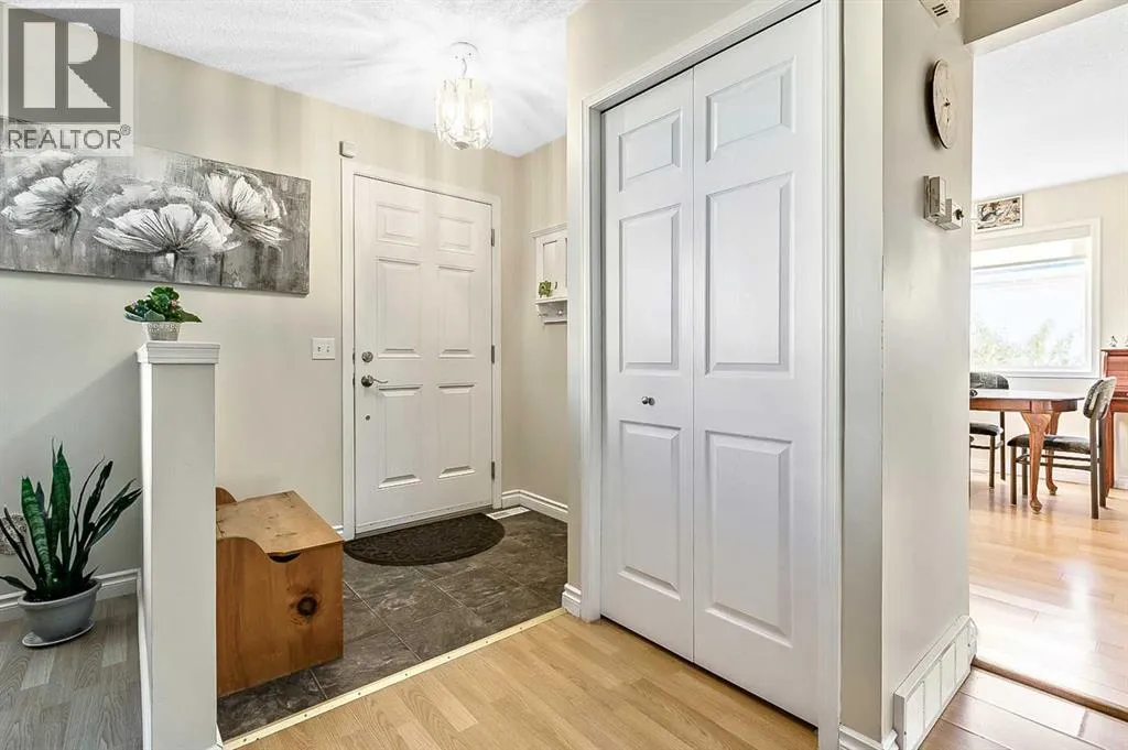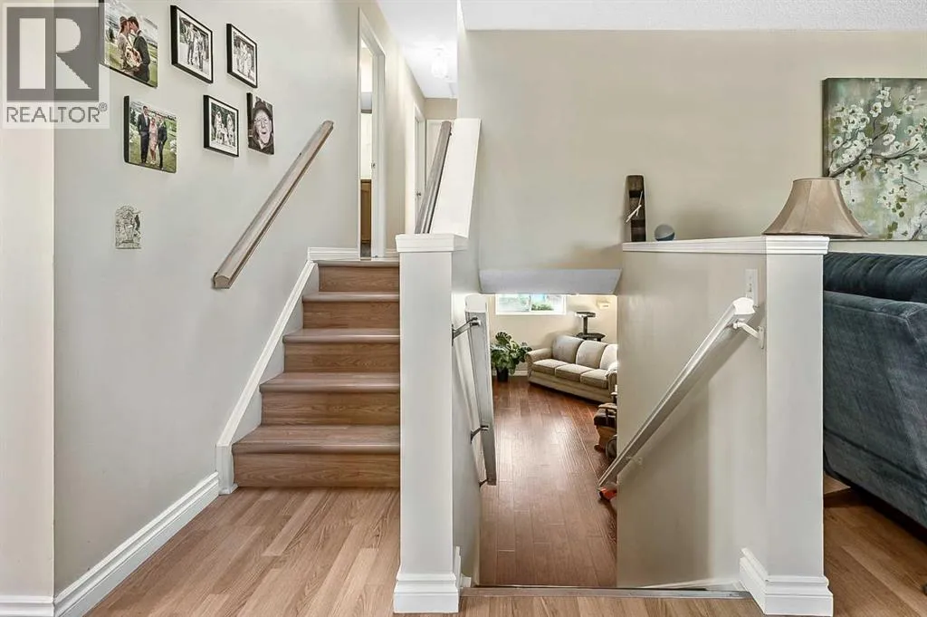 Tucked away on a quiet street, you're just a short walk to schools, shopping, Sunshine Lake, and the scenic Happy Trails pathway systemâideal for families and outdoor enthusiasts alike.Inside, you'll find 4 bedrooms and 2 full bathrooms, including a private primary ensuite. The upper level offers three generous bedrooms, while the fourth bedroom is located on the lower levelâperfect for guests, teens, or a home office setup.The main floor features a bright, spacious living room with a cozy gas fireplace, a cozy dining area, and an open-concept kitchenâperfect for everyday living and entertaining. A convenient side mudroom/laundry area with direct access to the backyard helps keep the home tidy and organized.The lower level includes a comfortable family room, the fourth bedroom, and a mechanical room, with access to a full crawl space offering abundant seasonal storage. For those that love the sun - this house offers windows for sun from all directions. Enjoy the morning sun in the kitchen, afternoon / evening sun from the upper bedrooms or lower family room and all-day sun that lights up the house from the skylight that is over the stairs to the upper floor. Step outside to a beautifully landscaped and fully fenced backyard, ideal for kids, pets, or relaxing in privacy. Enjoy your morning coffee on the charming front verandah or the sunny side deck. You'll also love the newly developed "she shed", currently used as an outdoor office/sitting roomâjust add a few twinkle lights, and it becomes the perfect spot to unwind at the end of the day. For additional covered storage - there are 2 sheds on West side of the house. Cat lovers, take note! This home features custom âcatiosâ at the front and back, allowing your furry friends to enjoy the outdoors safely within the yard.Additional features include: Off-street parking on an oversized concrete pad, updated shingles - replaced in 2024 and Mature trees and thoughtful landscaping including 3 established raised garden beds. This home blends space, functionality, and a great location. Donât miss your opportunity to make it yours! (id:27476)