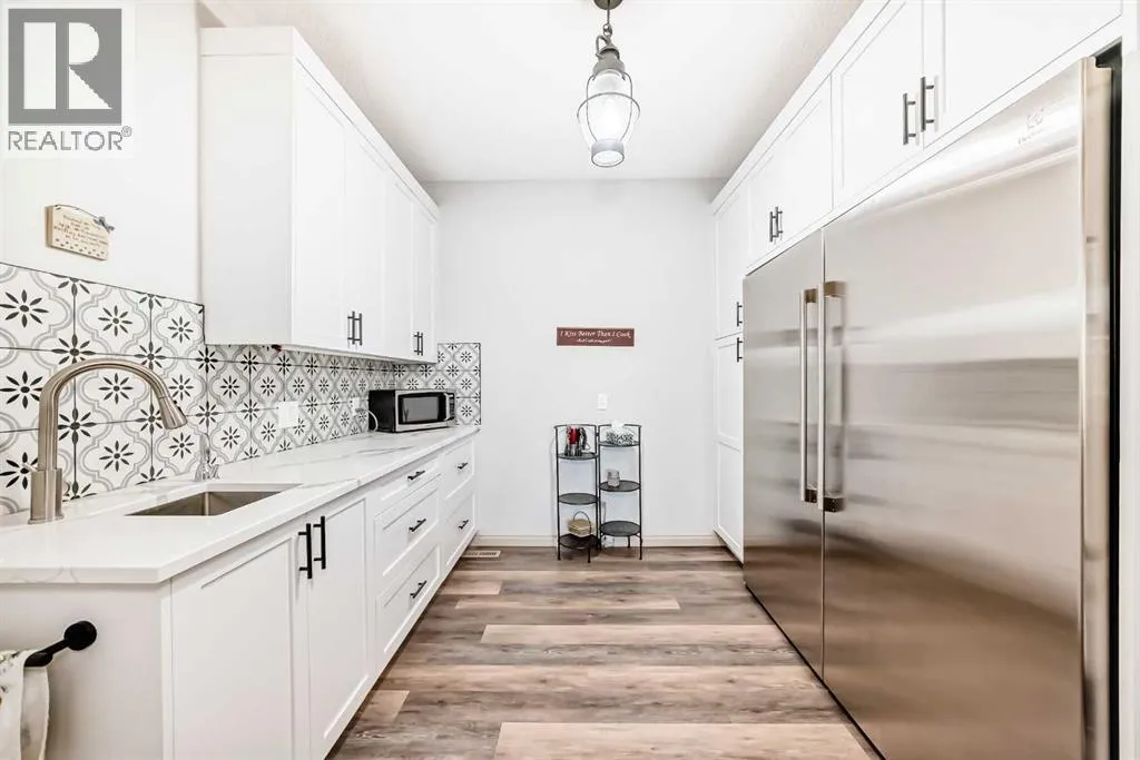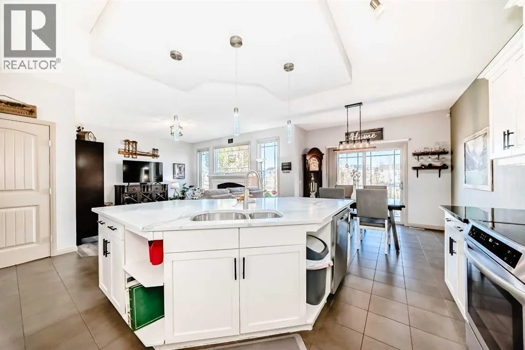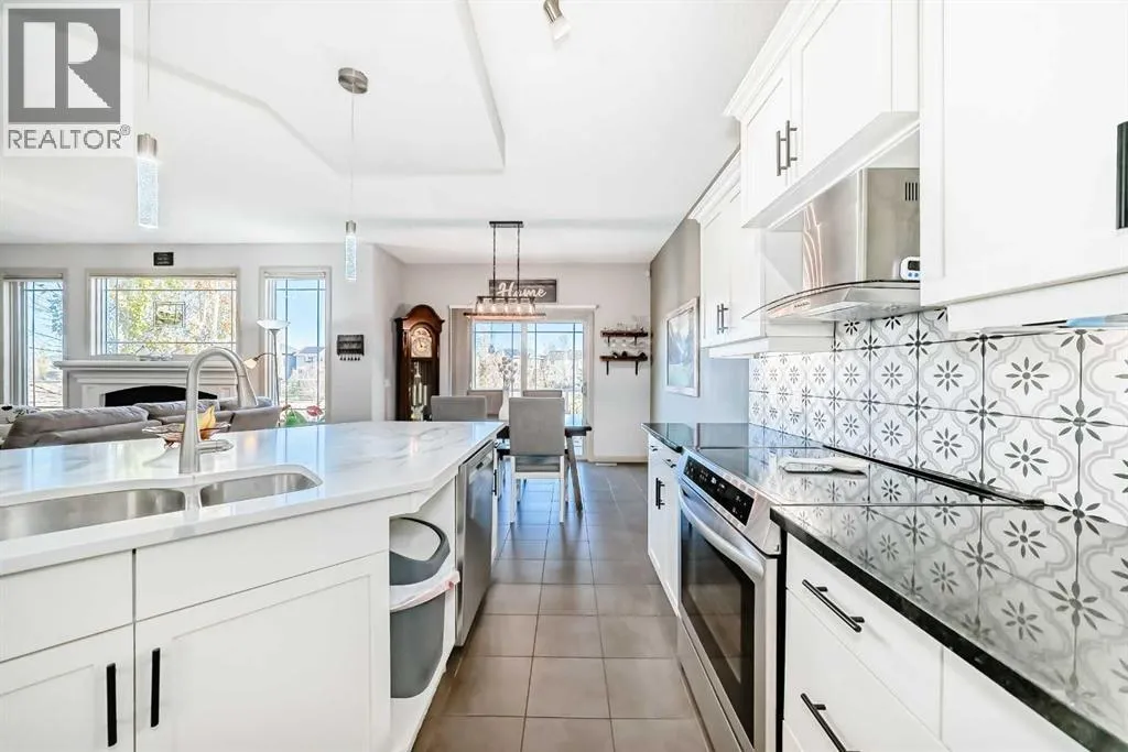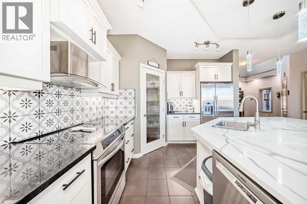 Wanting to escape the hustle of Calgary but still enjoy the charm of historic small town living, only 25 min to the city? Then check out this stunning executive 4 bed/3.5 bath two storey walk out, w/triple attached garage, backing onto a 12 acre pond & walking trails in the beautiful community of Montrose in High River! The curb appeal is the first thing to catch your eye, featuring easy care stucco & stone exterior, new overhead garage door & new contemporary front door. Upon entering the welcoming foyer, you'll love the soaring ceilings & modern farmhouse wall treatment. The generous open concept living/dining area are bathed in light from the wall of windows overlooking the serene pond. The living room features a beautiful gas fireplace with custom millwork mantle & facade, ideal for entertaining. The dining area can easily seat 8-10 people for large family dinners. Through the sliders in the dining area you'll find a large deck with space for BBQing, dining & relaxing, as well as easy access to the tiered level of the deck w/enclosed under stairs storage & fully landscaped backyard. The newly renovated kitchen features new appliances, all white cabinetry, and a large island with quartz countertop, Bosch dishwasher, built in storage and glass front doors to display your beautiful china. The induction cooktop & convection oven, range hood, granite counters & corner pantry are perfect for the gourmet in your home. The chef's kiss?? A new full butler's pantry was added in 2024, featuring commercial grade Kitchen Aid fridge & stand up freezer, loads of cabinetry, quartz countertop & additional sink w/hot water on demand tap for the tea lover. The powder room & laundry/mudroom complete the main floor. The triple attached & heated garage is ideal for cold winters and has a ton of workspace for those who like to tinker. Upstairs you'll love the huge bonus room for movie nights with the family. The large primary suite features lots of natural light & generous walk in clo set. The 5 pc ensuite features a double vanity, corner soaker tub and large one piece shower. Two good sized bedrooms & 4 pc upstairs bath w/additional linen storage complete the upper floor. The fully finished walk out lower level features an additional guest bedroom, 3 pc bath w/large glassed in shower & heated floor, a large rec room w/warm cork floors, large windows & small gas stove to keep the chill out. Outside is the peaceful level backyard features a large brick patio & BBQ gas line to set up a fire table on chilly evenings. There is plenty of grassy area for kids & fur babies alike, as well as a 12' side lot for easy access. The beautiful pond & walking trails are right out your back gate. The lovely community of Montrose welcomes you in with an original farmstead at the entrance to the community, w/large barn for event rentals & a huge community garden, yet is an easy walk or drive to shopping, restaurants and historic downtown High River. Don't miss this one!! Book a showing today! (id:27476)