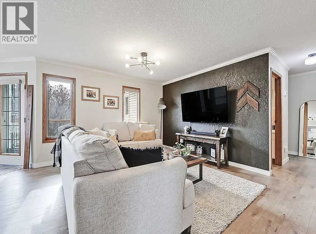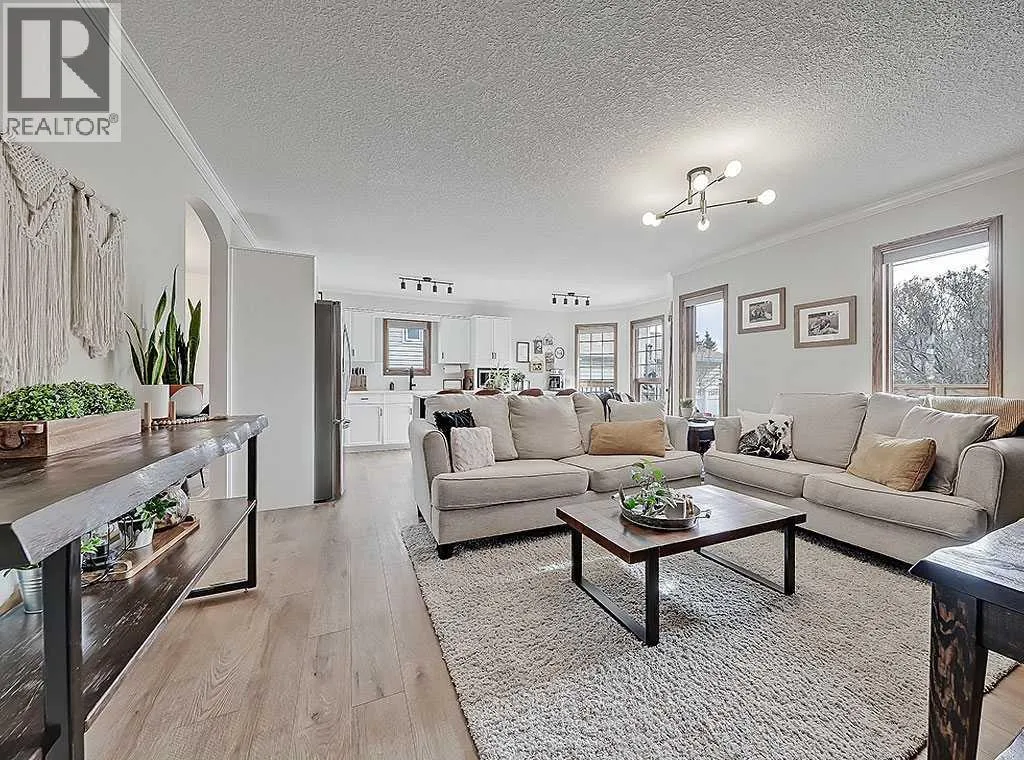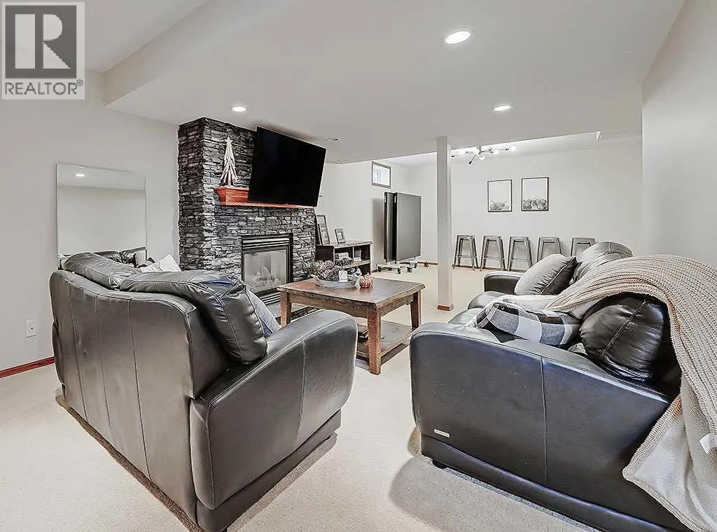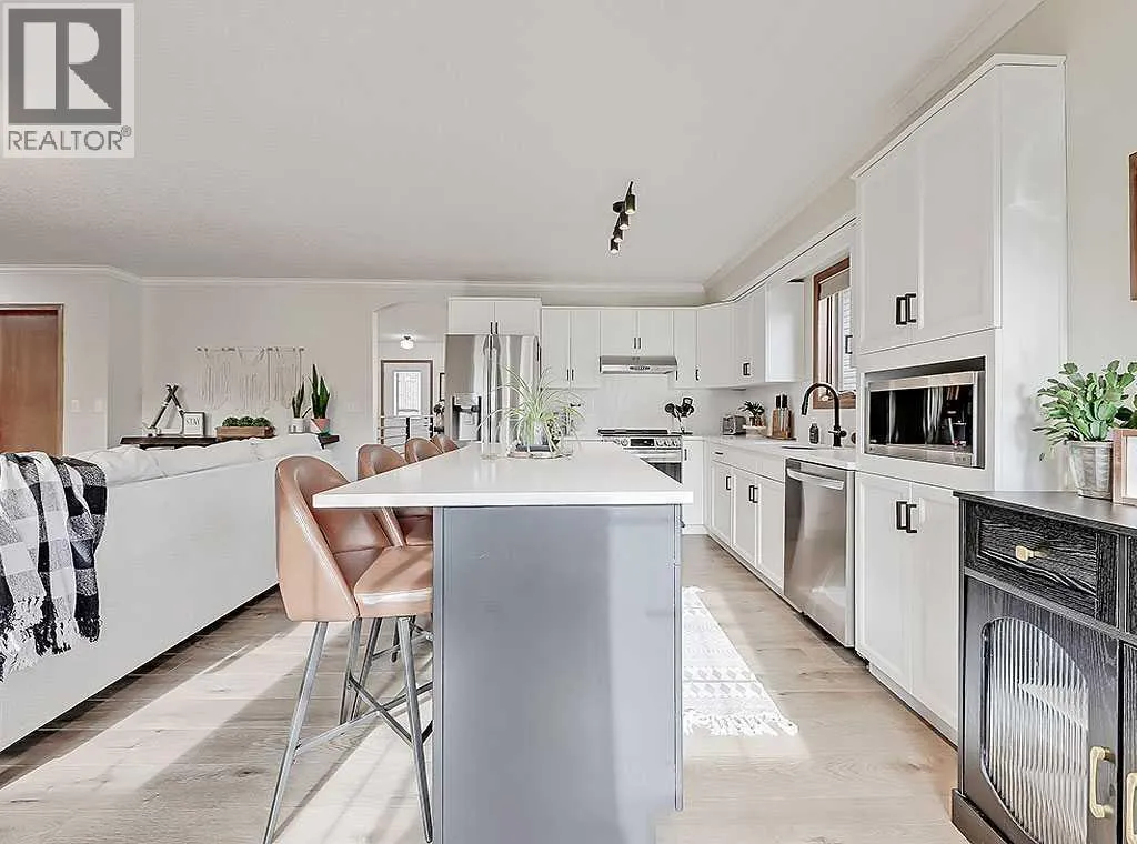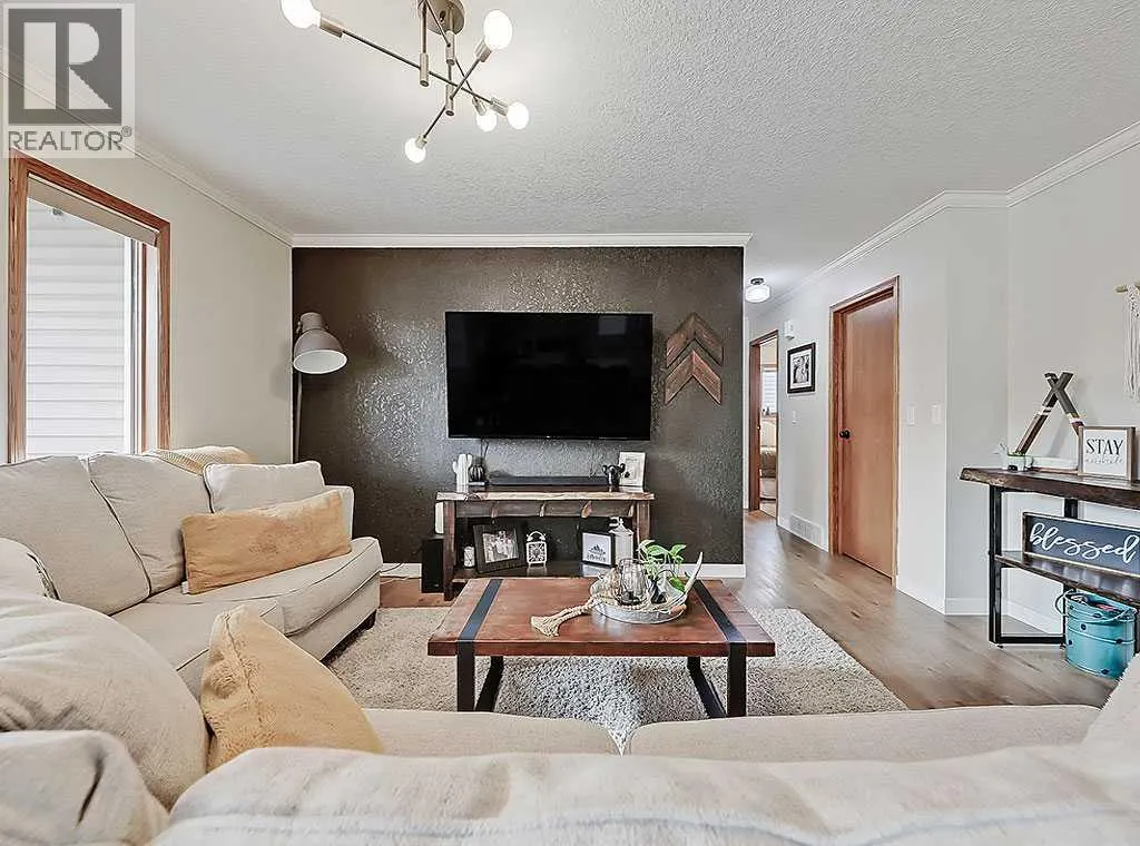 Charming Bungalow on a Quiet Street in Southeast High River.Welcome to this wonderful 4-bedroom home tucked away on a peaceful street located near schools, shopping and walking trails. This beautifully maintained home offers comfort, style, and thoughtful updates throughout.The main floor features a bright and inviting living room with a cozy gas fireplace and an adjacent dining areaâperfect for family gatherings. The updated kitchen boasts new countertops, modern vinyl plank flooring, refreshed cabinetry, and a large island that provides ample storage and workspace. The adjoining family room is spacious and seamlessly connected to the kitchen, creating an ideal layout for everyday living and entertaining.The primary bedroom includes a walk-in closet and a renovated 3-piece ensuite, while a second bedroom and convenient main-floor laundry complete the level.Downstairs, the fully finished basement offers a large rec room with a second gas fireplace, two additional bedrooms, and another 3-piece bathroomâmaking it an ideal space for guests, teens, or extended family.Outside, youâll enjoy a sunny south-facing deck, perfect for summer BBQs, as well as RV parking for your convenience.Donât miss your chance to view this fantastic homeâcall today to schedule your private showing! (id:27476)