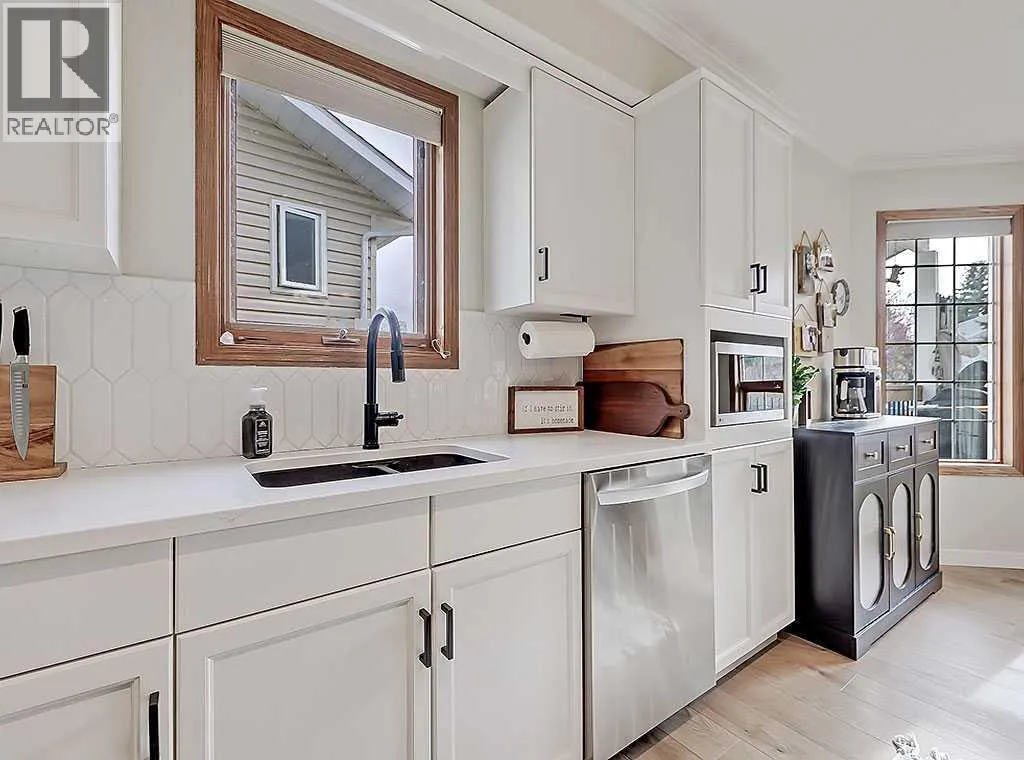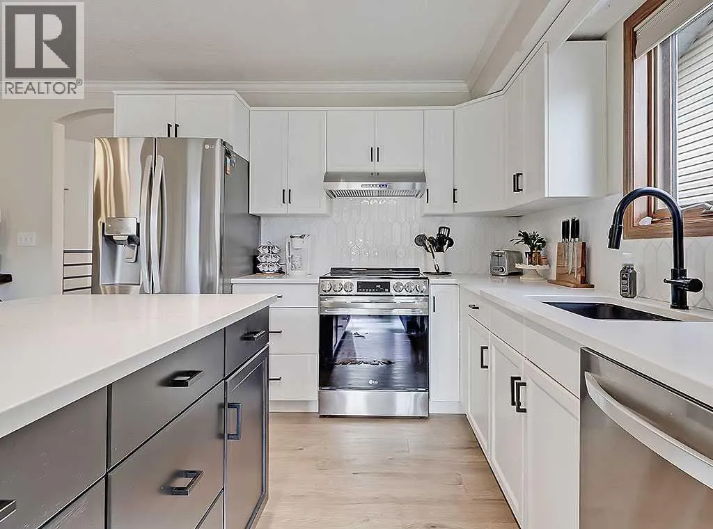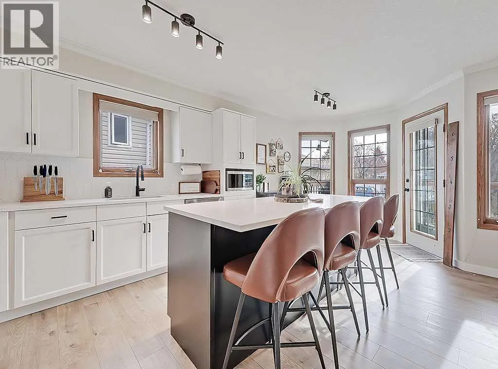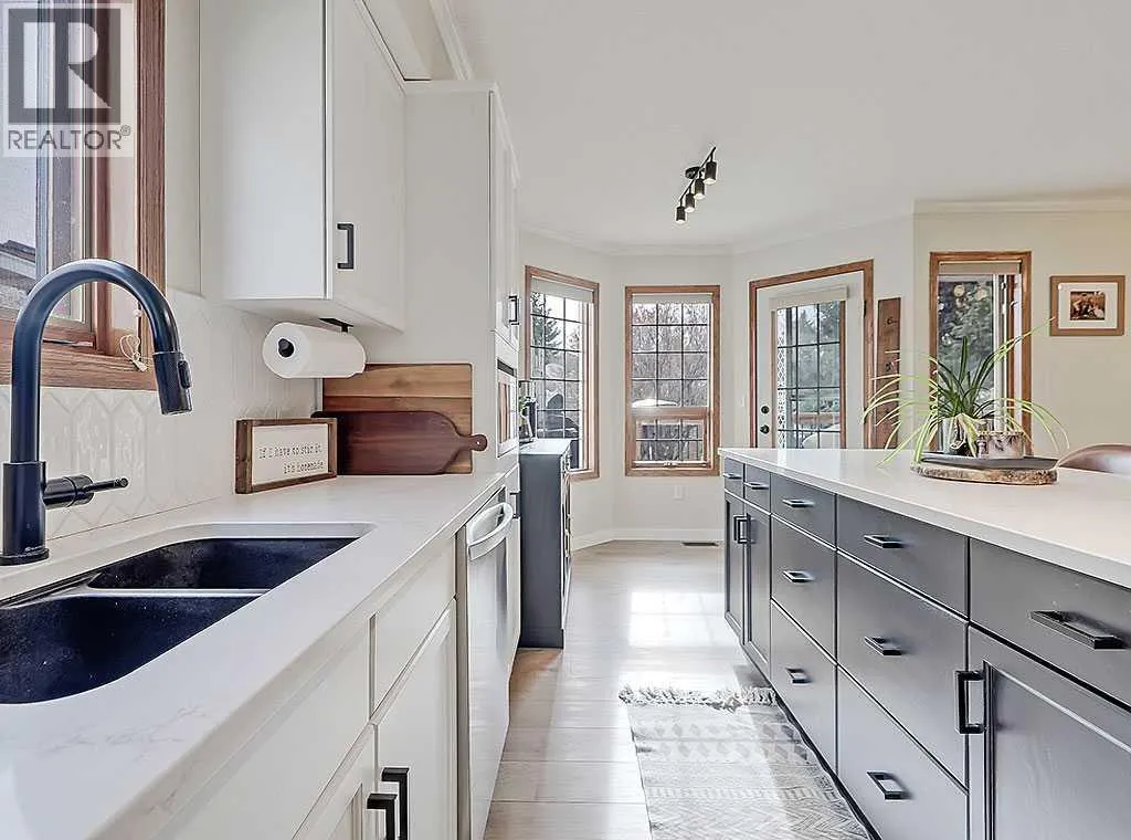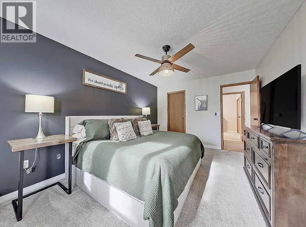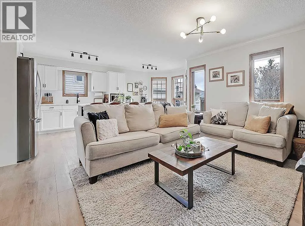 Charming Bungalow on a Quiet Street in Southeast High River.Welcome to this wonderful 4-bedroom home tucked away on a peaceful street located near schools, shopping and walking trails. This beautifully maintained home offers comfort, style, and thoughtful updates throughout.The main floor features a bright and inviting living room with a cozy gas fireplace and an adjacent dining areaâperfect for family gatherings. The updated kitchen boasts new countertops, modern vinyl plank flooring, refreshed cabinetry, and a large island that provides ample storage and workspace. The adjoining family room is spacious and seamlessly connected to the kitchen, creating an ideal layout for everyday living and entertaining.The primary bedroom includes a walk-in closet and a renovated 3-piece ensuite, while a second bedroom and convenient main-floor laundry complete the level.Downstairs, the fully finished basement offers a large rec room with a second gas fireplace, two additional bedrooms, and another 3-piece bathroomâmaking it an ideal space for guests, teens, or extended family.Outside, youâll enjoy a sunny south-facing deck, perfect for summer BBQs, as well as RV parking for your convenience.Donât miss your chance to view this fantastic homeâcall today to schedule your private showing! (id:27476)