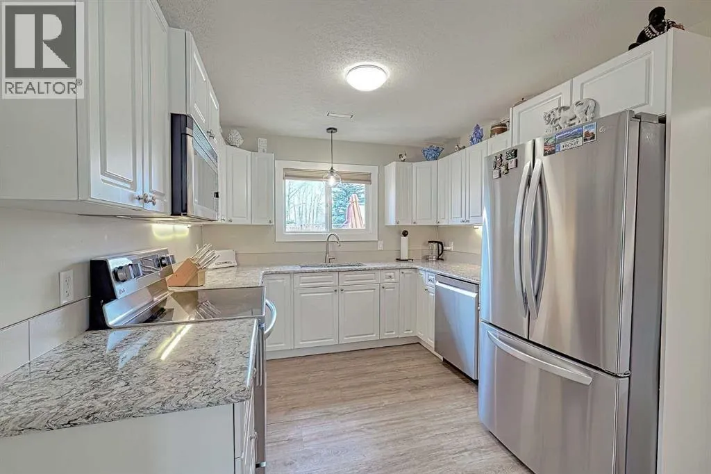 Step inside this 1,270 sq. ft. extensively renovated bungalow & youâre immediately welcomed by bright, sun-filled living & dining rooms, where large windows pour in natural light and create an easy, comfortable flow for everyday lounging or hosting friends. From here, youâre drawn into the heart of the homeâthe kitchenâfeaturing crisp white cabinetry, quartz countertops with an under mount sink, and stainless steel appliances that make the space feel both fresh & functional. Down the hall, the spacious primary bedroom offers a restful retreat with room for a full bedroom suite, while the second bedroom works beautifully as a kidsâ room, nursery, or guest space. The well-appointed bathroom is conveniently located to serve both bedrooms with ease. Toward the back of the home, a generous mudroom and laundry area help keep daily life organized, and an additional family room/flex space can be tailored to your lifestyleâhome office, hobby room, or even a potential third bedroom. Extensively renovated with an effective age of 2013. All of this is set in a fantastic, walkable neighbourhood with great neighbours and easy access to downtown amenities & High Riverâs vibrant calendar of community events. (id:27476)