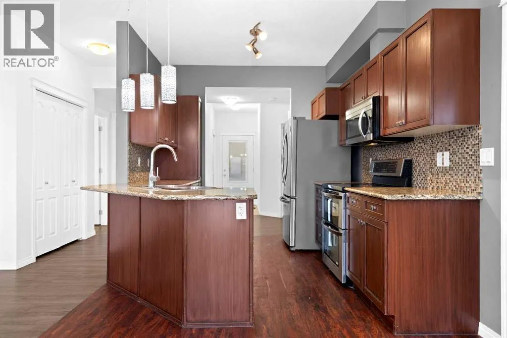 Welcome to this great ground floor 3-bedroom unit, offering lots of space for the family and no stairs! As you walk up to the home you will appreciate the covered East facing patio - a great place to enjoy your morning coffee! Step inside and appreciate the abundance of natural light and the tiled feature wall. This home has no carpets, making it great for anyone with allergies! The kitchen features maple stained cabinetry, gleaming granite countertops, a stylish tiled backsplash, and stainless steel appliancesâincluding a double oven - great for preparing meals! Relax in the bright and inviting living room which features a large west facing window that fills the space with natural light. Entertain in the dining area or step out of the patio doors onto the large west facing patio of a BBQ. There are 3 good sized bedrooms with the spacious primary suite featuring a 4-piece ensuite with granite counters. There is a 4-piece family bathroom. Completing this unit is a laundry with washer and dryer. There is a door from the front patio that provides access to your own private storage room. The property includes two assigned parking spaces, and pets are welcome with board approval. Don't miss out on this lovely home. View 3D tour/virtual tour (id:27476)