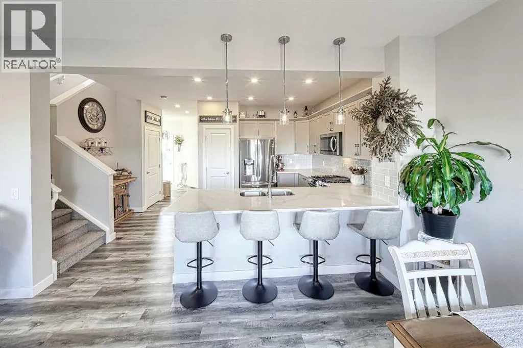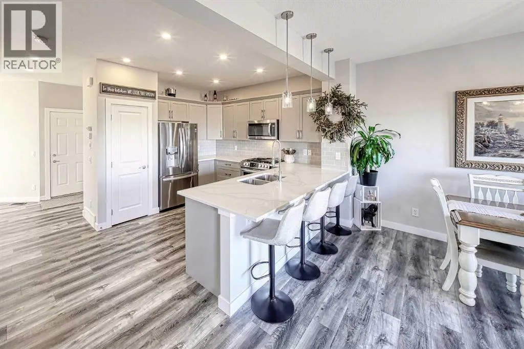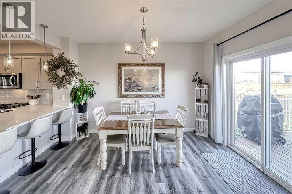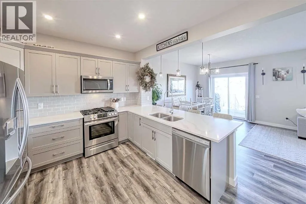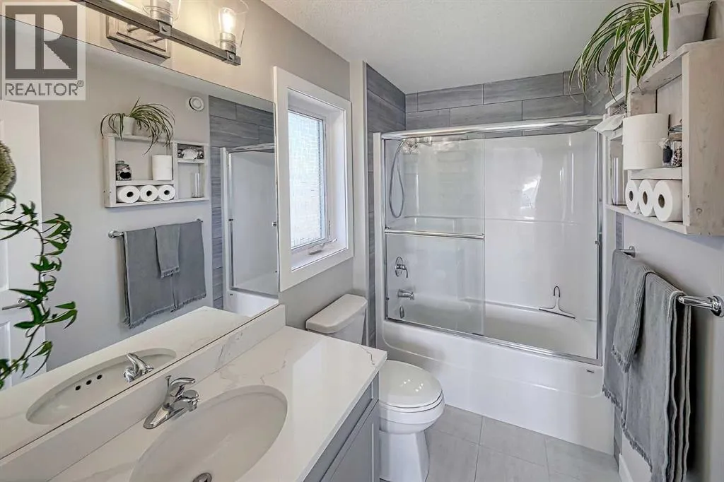 Clean, clean, clean home that is bright, welcoming and fully finished. This Timber Creek built home has 4 bedrooms, 3.5 bathrooms, high ceilings and flows seamlessly throughout. The main floor has an open concept kitchen/living room. The kitchen has stainless steel appliances, which include a gas stove, tons of counter space with quartz counter tops, cabinets and room to entertain. The living room has a large window that will give you all the natural light you would desire and, in the winter, snuggle by the wood fireplace, read a book, watch tv or meditate. Upstairs, the east-facing primary bedroom features an electric fireplace, walk-in closet, 4-piece ensuite with tile flooring and quartz counters. The laundry room on the upper level adds to the everyday convenience. The 2nd and 3rd bedrooms finish the upper level. Downstairs, the finished basement has another family room, the 4th bedroom, 4 pce bath and a large utility/storage room. Enjoy Tankless hot water heater and a separate entrance to the basement. High River is a fantastic place to live, easy travels to Shopping, Schools, Parks, Walking Paths, George Lane Park, Recreation Center, Hospital, Medical/Dental Centers, Wales Theatre, "Take-Out", Golf, and a short drive to the, Drive-In Theatre/Rodeo Grounds and so much more. 25(ish) minutes to Calgary and 20(ish)minutes to Okotoks. (id:27476)