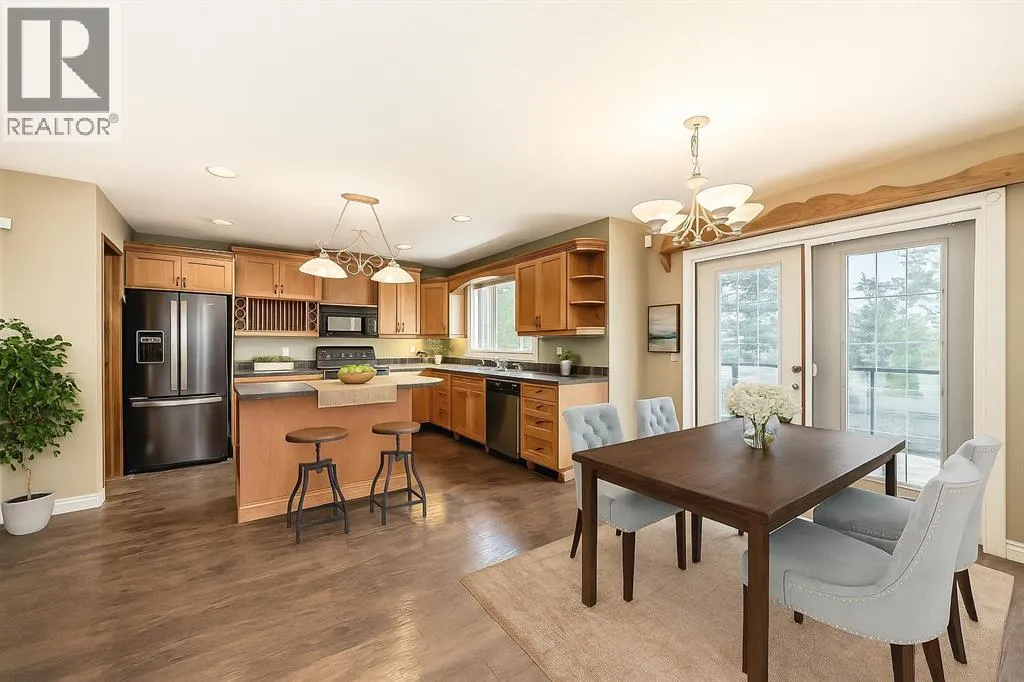 Highly desirable home in High River featuring 5 bedrooms on the upper level plus 2 additional bedrooms in the developed basement, along with 3.5 bathroomsâideal for large or multigenerational families. The main floor offers a versatile front-facing space perfect for a home office, an oversized walk-in pantry off the kitchen, and a living roomâdining room area with a convenient rough-in for a future fireplace. The spacious fenced backyard includes mature apple trees and a stunning larch tree that turns golden in the fall, along with a wide, hot-tub-ready deck and the privacy of no rear neighbours. Situated in a quiet cul-de-sac and less than an hour from Calgary with easy access to the main highway, this home provides exceptional value and comfort. Come and see for yourself! (id:27476)