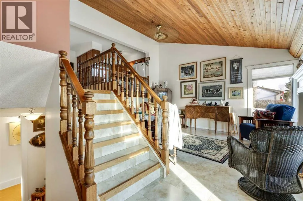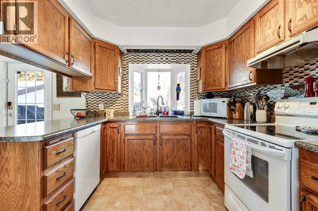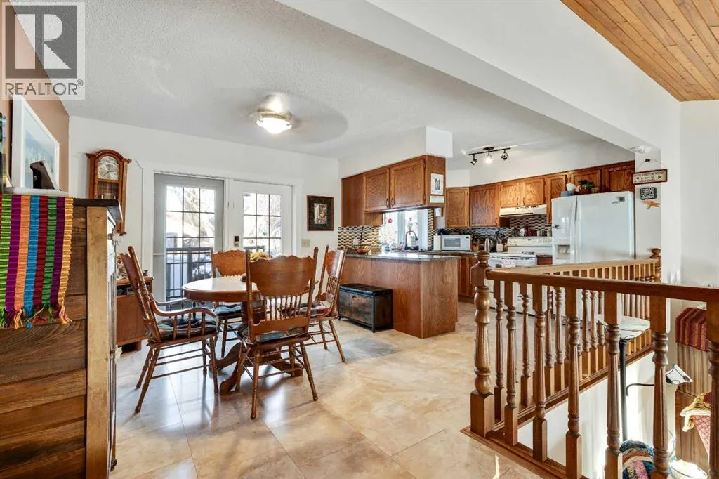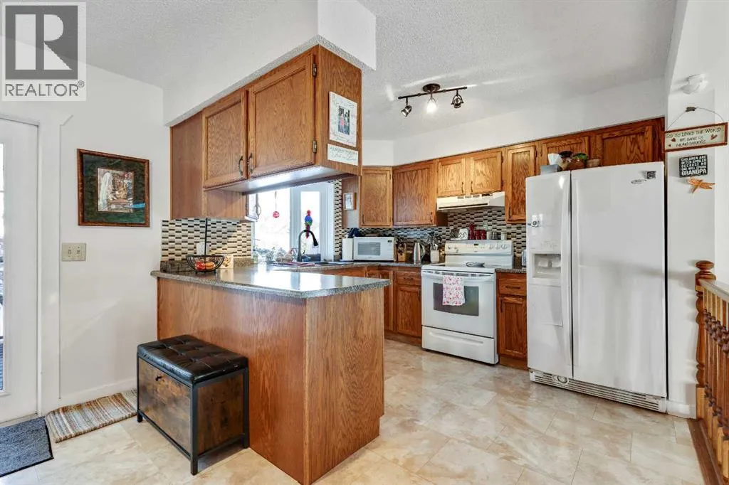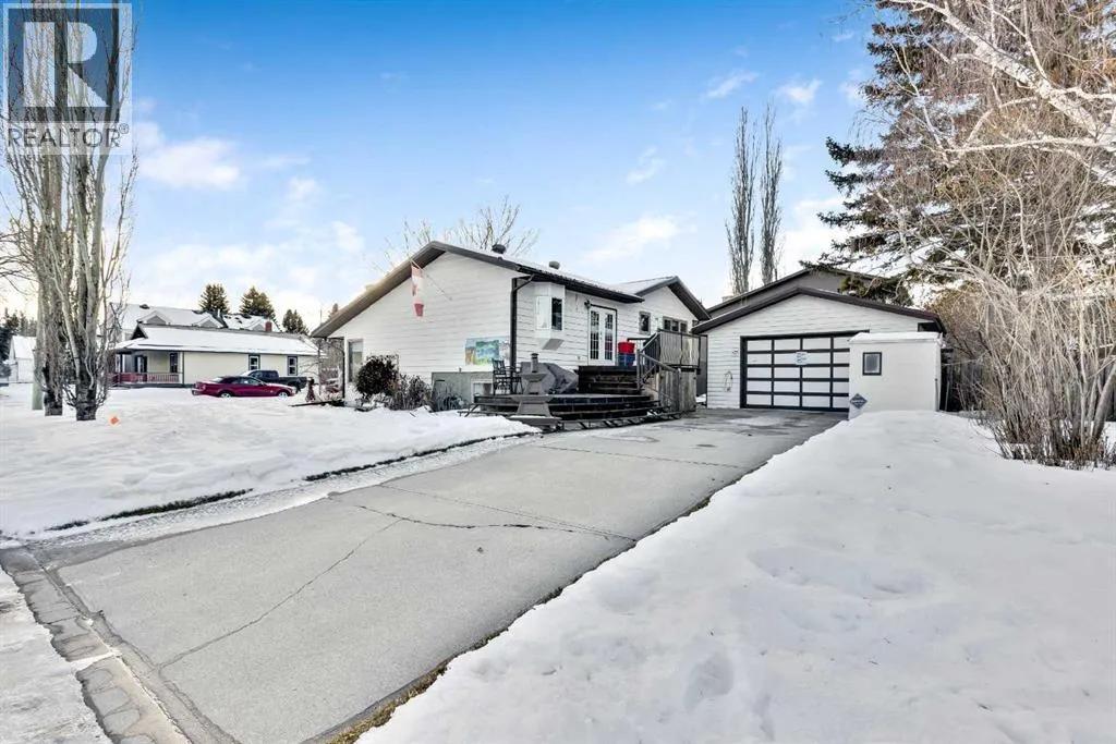 LOCATION, LOCATION, LOCATION!Situated on one of the most sought-after streets in the SW, this beautifully maintained 4-bedroom family home offers the perfect blend of comfort, charm, and convenience.Enjoy sunny mornings on the south-facing front patio, an ideal spot to relax with coffee or chat with neighbors. Inside, the main level welcomes you with a warm family room featuring vaulted ceilings and a cozy gas fireplaceâa perfect place to showcase your holiday décor.Upstairs, the bright dining room flows seamlessly into the kitchen, making family meals and entertaining a breeze. Step right out onto the spacious rear deck, offering ample room for outdoor seating and BBQs (there is a gas line) with a 2-tiered deck. The primary bedroom features two large closets and a beautifully updated ensuite with a full tile walk-in shower and custom cabinetry by Wegener Homes. Two additional bedrooms and a full bathroom complete this level.The lower level is filled with natural light thanks to full-size windows. An oversized family room provides a comfortable space for movie nights or game time. This level also includes a fourth bedroom, full bathroom, private laundry room, mechanical room and access to a partial basementâperfect for seasonal storage.Outside, youâll appreciate the extended driveway leading to a heated oversized single (20'x20') detached garage. Additional storage is abundant with a shed and under-deck space. The maintenance-free fence on the west side, installed by Wegener Homes (2023), adds both privacy and polish.Other updates include: Metal roof (2013), Windows (2013), Interior doors (2013), Hot Water Tank (2013), Furnace (2013), Vacuflo with kitchen toe-kick & 2 hoses (2013), Gutter guards, Exterior professionally re-stained (2022) , New Ensuite toilet (2025).Just one block away, access the Happy Trails pathway system, which leads you to the Highwood River, forested paths, George Lane Park, and onward to downtown. With year-round community eventsâ including the Hot Air Balloon Festival, our Christmas & Little Britches parades, Car Shows, and weekly farmersâ markets in the summer âplus a nearby Elementary school and the High River Hospital, this location offers an unbeatable blend of convenience and small-town charm.This is your chance to own a home in one of High Riverâs most desirable neighborhoods! (id:27476)