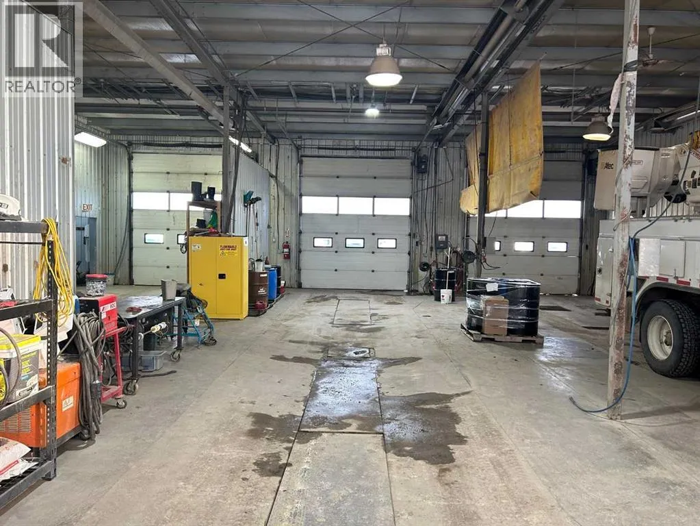 FOR SALE : 1.4 ACRES with a 4200 SQ FT Steel Structure building.... Fully Leased. Property FEATURES 6 - 14 ft Overhead doors allows trucks to drive through ; 3 bays each 60 ft deep ; originally the building was used as a truck and car wash ; ideal site for a potential second building, subdivision of a second lot [subject to town of High River approval ];fenced yard ; gravel packed rear yard ,security fenced and good highway access. New Air Exchange system installed in 2025. (id:27476)