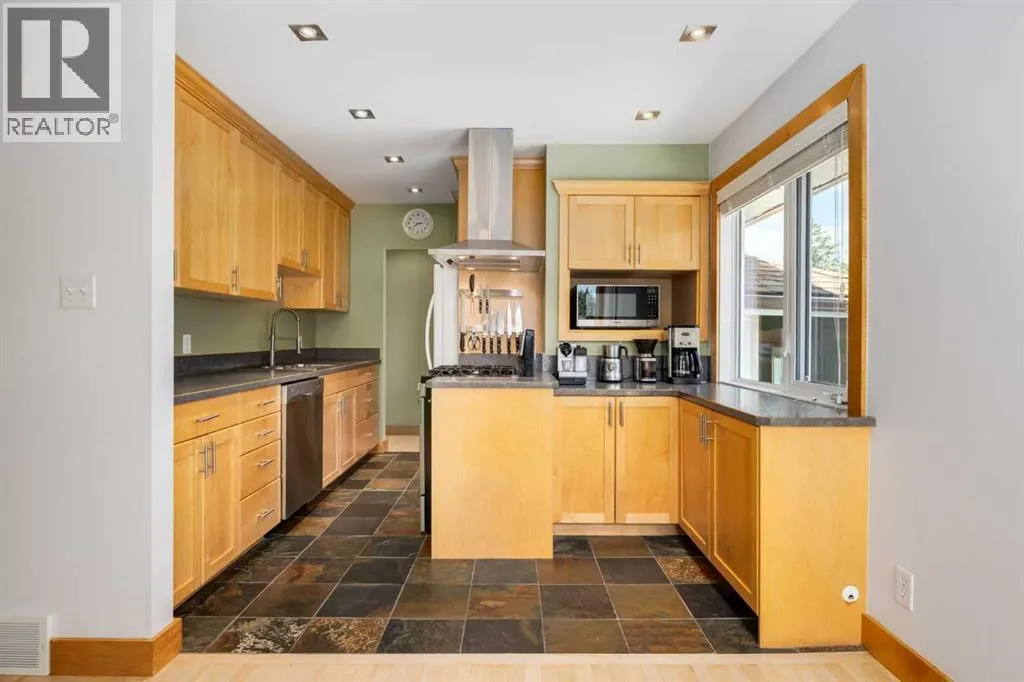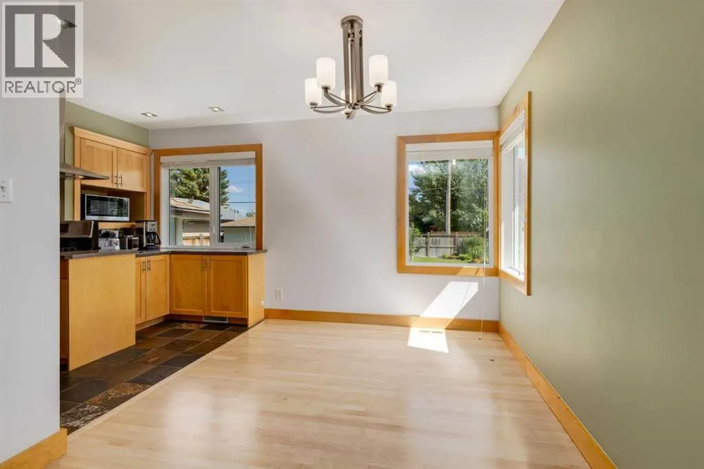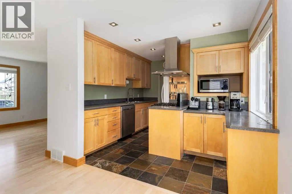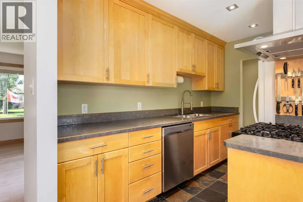 Welcome to your new home in the highly sought-after southwest area of High River! Lovingly maintained and thoughtfully updated, this charming three-bedroom, two-bathroom bungalow sits on an incredible 75â x 130â lot along a quiet, tree-lined street.Step inside to a bright and inviting main floor. The spacious living and dining area are ideal for everyday comfort as well as hosting family and friends. The modern kitchen features custom-built maple cabinetry, slate flooring, and plenty of counter space with a functional layout that flows seamlessly into the dining area. The updates continue throughout with maple hardwood flooring on the main level and slate tile in the kitchen, bathroom, and entryways, adding both beauty and durability.The large primary bedroom easily accommodates a king-size bed and offers flexibility, it can be converted back into two separate rooms, transforming the home into a four-bedroom layout. A full bathroom with custom maple cabinetry completes the main floor.The fully finished lower level provides even more living space with a versatile rec room, perfect for movie nights, games, or relaxing with loved ones. Youâll also find an additional bedroom, a full bathroom, a large laundry/storage room, and a separate pantry.Outdoors, your private backyard oasis awaits. Fully fenced and beautifully landscaped, itâs perfect for family gatherings, summer evenings, or simply unwinding. The large lot offers versatility for any lifestyle, and the included storage shed ensures everything has its place.Car enthusiasts, hobbyists, or anyone needing extra workspace will love the two garage options. A double garage (20â x 24â), insulated, heated, and fully equipped with water and sewage is ideal for vehicles, projects, or a workshop. A single garage (14â x 24â), also insulated and heated, perfect for a third vehicle or a dedicated workspace.Over the years, the home has been carefully updated while retaining its warmth and character. Notable improveme nts include: basement renovation, new hot water tank (2023), new roof (2023), new garage doors on both garages (2024) and refinished hardwood floors (2025).Perfectly located, this home is within walking distance to the hospital, schools and is just minutes from all of High Riverâs amenities. Whether youâre looking for a family home, room to grow, or a peaceful retreat with modern updates, this property truly has it all. (id:27476)