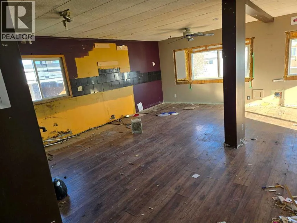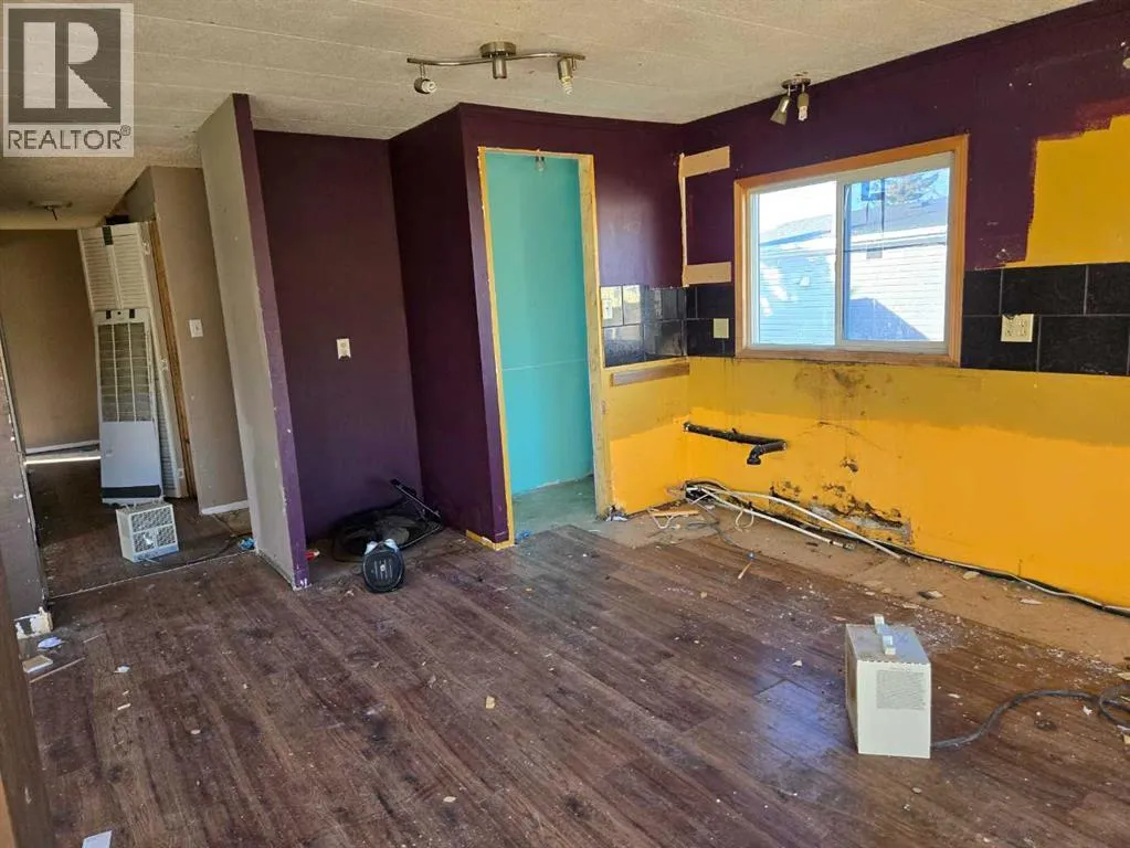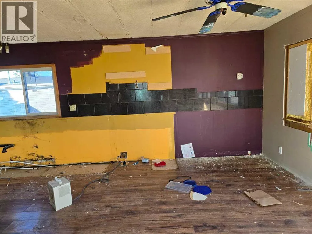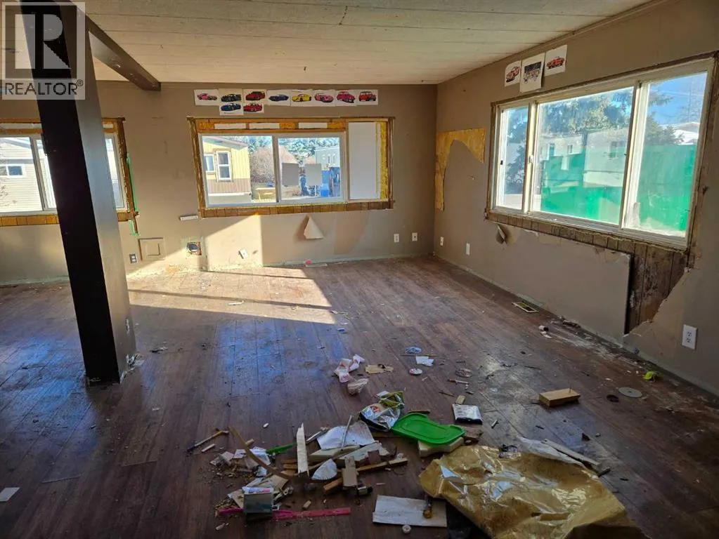 High River Village is a quiet, family friendly park with generous lots in NE High River. This is a 3 bedroom, 1 bath double wide home with the potential to be a nice family home. It does require an extensive amount of work to fulfill its potential. the bathroom and kitchen have been removed, walls and floors need extensive reapir. No appliances on site. What it does have is vinyl windows, vinyl siding exterior and a metal roof. There is 1 shed in the large yard. The seller is Cove Homes, the park management company. They offer a benefits package that may include financing at a great rates, or more. Beyond the purchase price, all sites in the park rent for $959 per month which includes water, sewer and garbage removal. (id:27476)