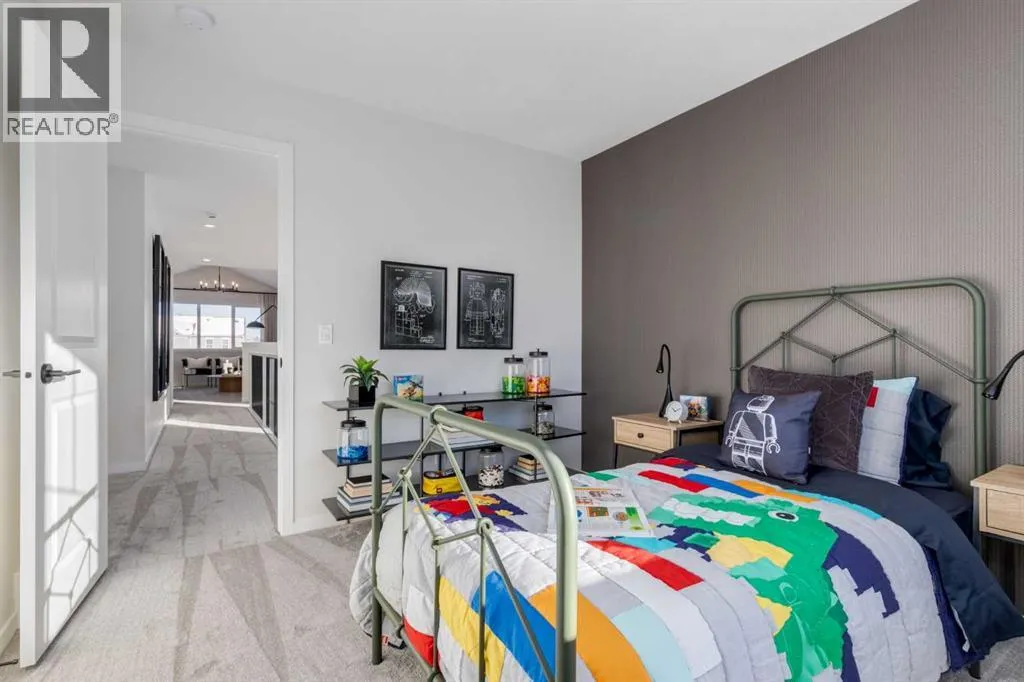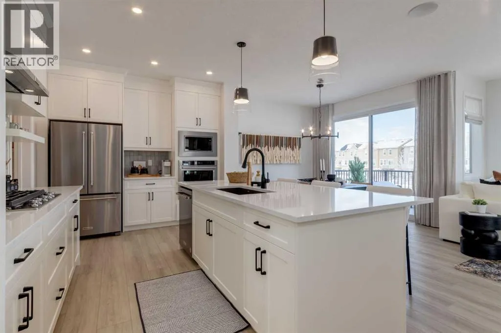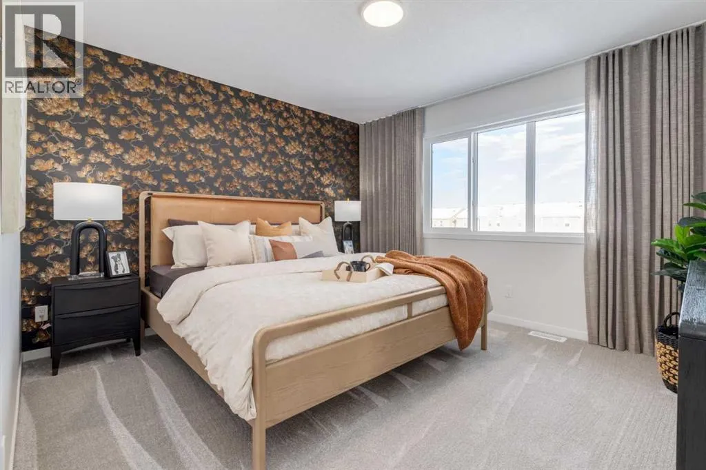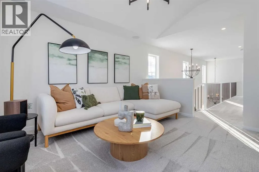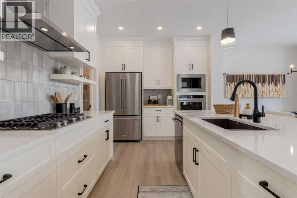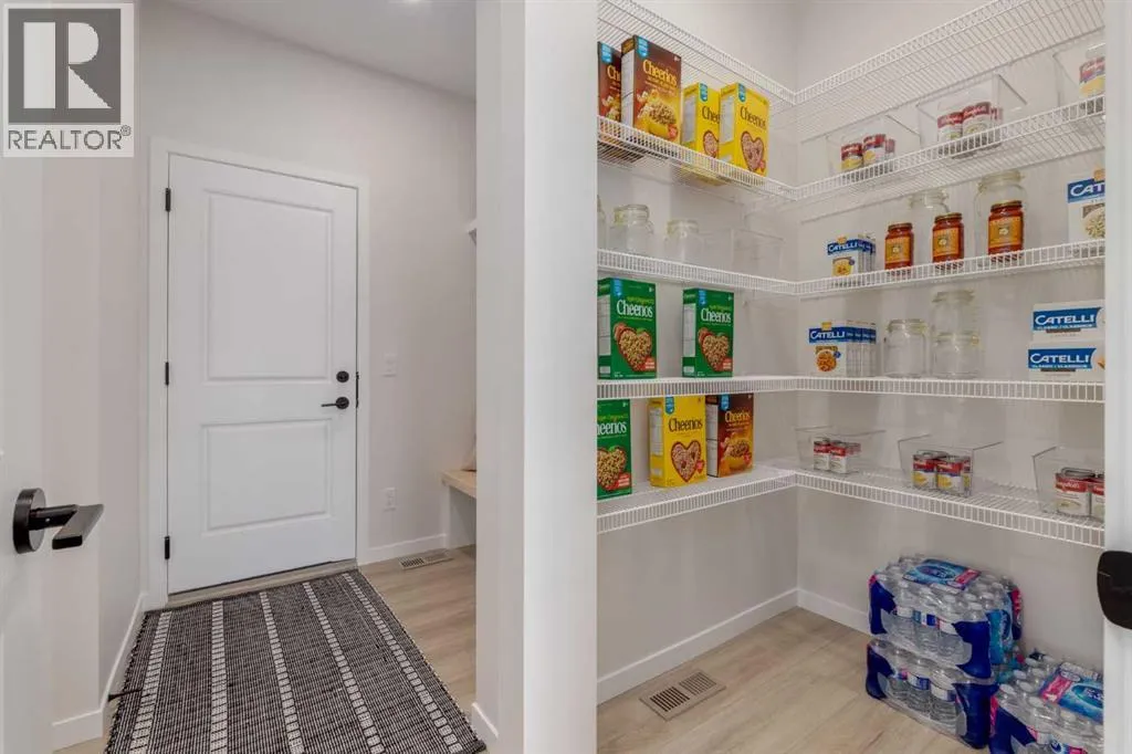 Meet The Stricklandâa thoughtfully designed 2,093 sq. ft. home that blends everyday function with elevated finishes. With 3 bedrooms, 2.5 baths, a double attached garage, and a rear wood deck, this plan is built for modern family living and easy entertaining. A grand entryway makes a great first impression, paired with an oversized front closet that keeps coats, boots, and gear out of sight. At the back of the home, the mudroom with built-in locker creates the perfect drop zone for backpacks and busy routines. The main floor is designed around connection, with a centralized kitchen that links the living and dining areas so you can cook, visit, and relax in one open, welcoming space. The gourmet kitchen upgrade is the showpiece: full-height cabinetry, quartz countertops, two sets of pot & pan drawers, and a statement chimney hood fan framed by open shelving and finished with a tile backsplash to the ceiling. The premium KitchenAid appliance package includes a built-in wall oven & microwave, 5-burner gas cooktop, French door/bottom freezer fridge, and dishwasher. An oversized island is highlighted by upgraded matte black pendant lighting, and a smart walk-through pantry keeps clutter tucked away and grocery days simple. Luxury vinyl plank flooring spans the main level, with upgraded windows and an electric fireplace adding warmth. Upstairs, the thoughtful plan continues. A vaulted bonus room becomes your private family hubâmovie nights, a kidsâ lounge, or a quiet retreat away from the main level. Second-floor laundry is centrally located to simplify day-to-day life. The front kidsâ wing features two spacious secondary bedrooms with easy access to the family bath, while the primary suite is a true escape with a large walk-in closet and a spa-inspired 5-piece ensuite with generous vanity space and storage. Outside, enjoy summer evenings and weekend BBQs on your rear wood deck and appreciate the durability and curb appeal of a Hardie board exterior. Modern details contin ue with metal railings on the stairs and upper floor. Future-focused features include solar-ready infrastructure with 200-amp service, a 64-panel breaker, and conduit to the roof. Montrose is a master-planned community on High Riverâs south side with parks, pathways, and a signature pondâgreat for walks, biking, and year-round time outdoors. Enjoy quick access to schools, recreation, and everyday amenities. A home thatâs stylish, bright, and built around real lifeâThe Strickland is one youâll want to experience in person. **Photos are from the show home/previous builds to demonstrate quality of construction & finishes and may not be an exact representation of this home** (id:27476)