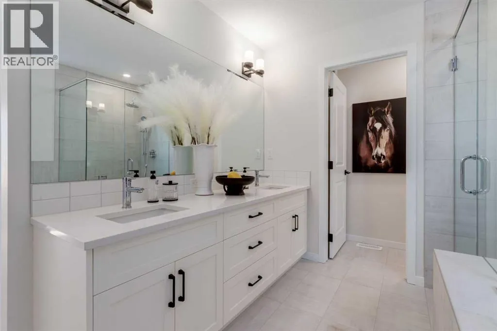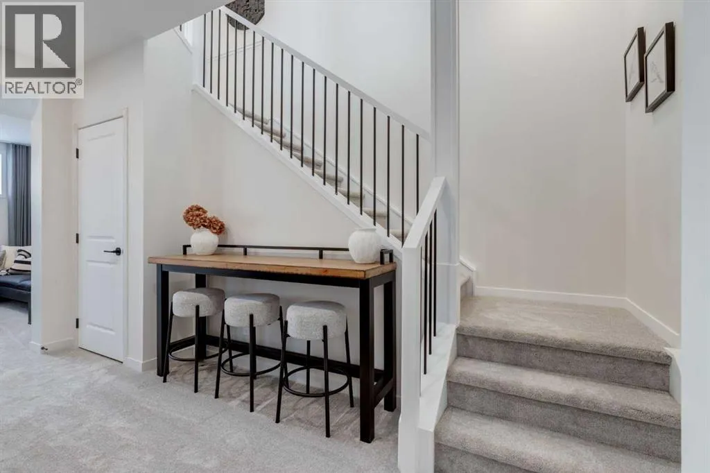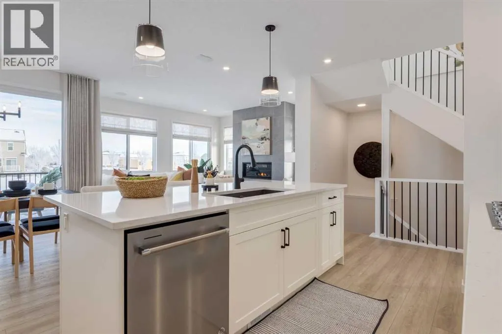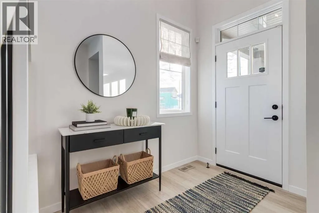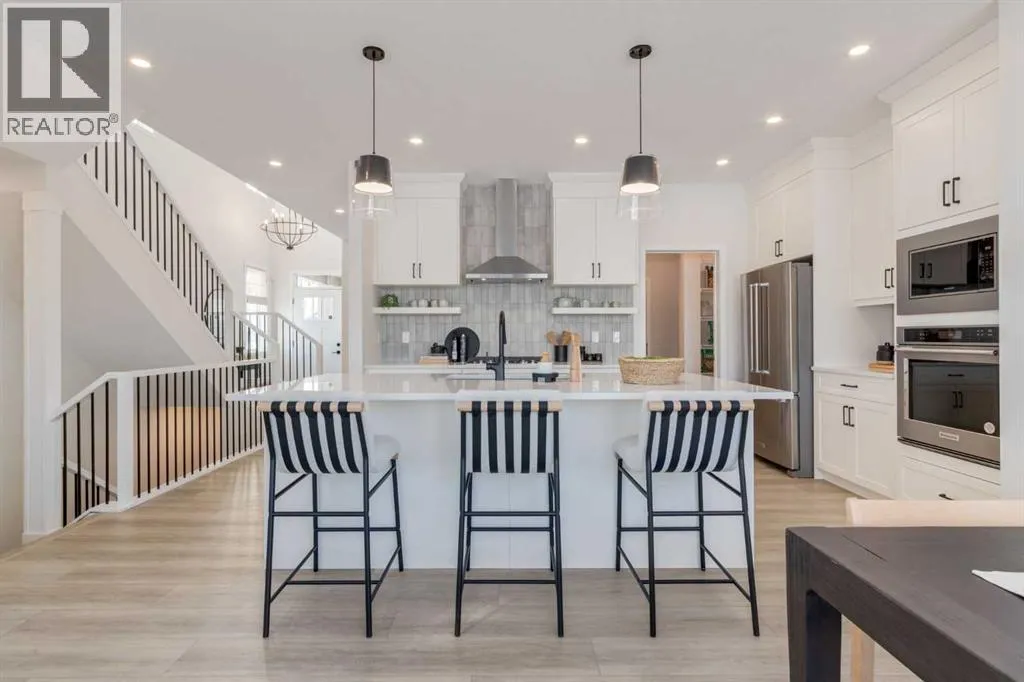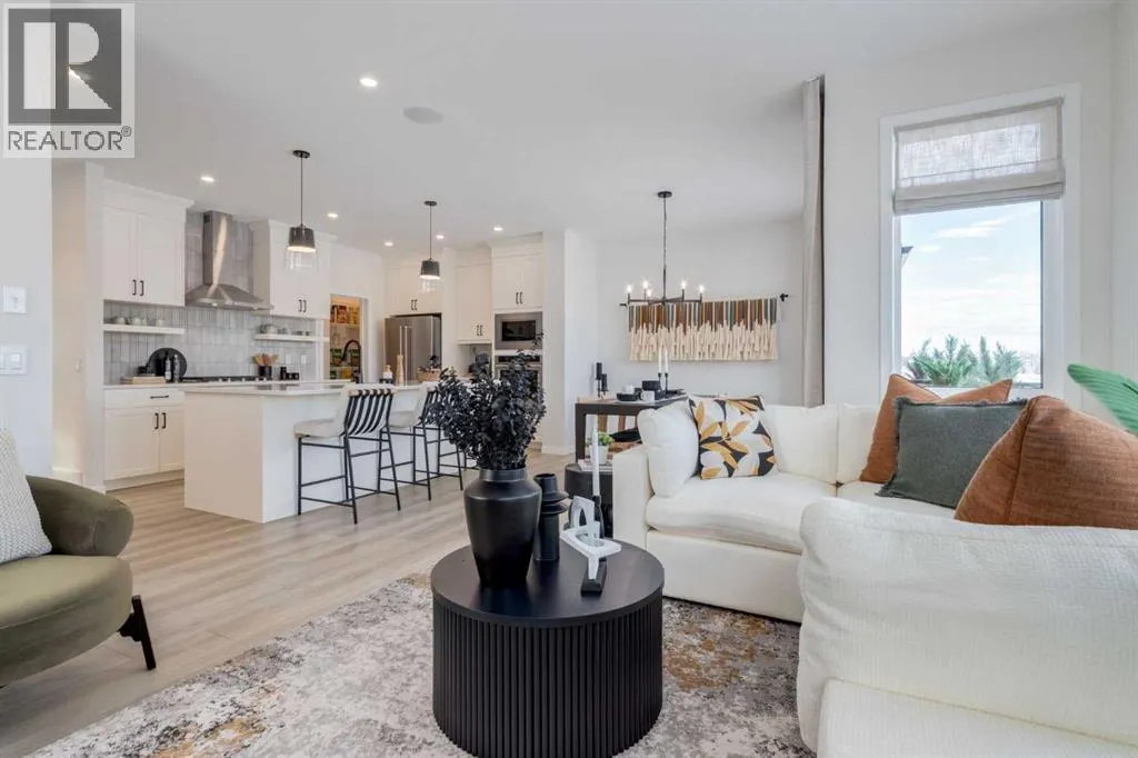 Meet The Stricklandâa thoughtfully designed 2,093 sq. ft. home that blends everyday function with elevated finishes. With 3 bedrooms, 2.5 baths, a double attached garage, and a rear wood deck, this plan is built for modern family living and easy entertaining. A grand entryway makes a great first impression, paired with an oversized front closet that keeps coats, boots, and gear out of sight. At the back of the home, the mudroom with built-in locker creates the perfect drop zone for backpacks and busy routines. The main floor is designed around connection, with a centralized kitchen that links the living and dining areas so you can cook, visit, and relax in one open, welcoming space. The gourmet kitchen upgrade is the showpiece: full-height cabinetry, quartz countertops, two sets of pot & pan drawers, and a statement chimney hood fan framed by open shelving and finished with a tile backsplash to the ceiling. The premium KitchenAid appliance package includes a built-in wall oven & microwave, 5-burner gas cooktop, French door/bottom freezer fridge, and dishwasher. An oversized island is highlighted by upgraded matte black pendant lighting, and a smart walk-through pantry keeps clutter tucked away and grocery days simple. Luxury vinyl plank flooring spans the main level, with upgraded windows and an electric fireplace adding warmth. Upstairs, the thoughtful plan continues. A vaulted bonus room becomes your private family hubâmovie nights, a kidsâ lounge, or a quiet retreat away from the main level. Second-floor laundry is centrally located to simplify day-to-day life. The front kidsâ wing features two spacious secondary bedrooms with easy access to the family bath, while the primary suite is a true escape with a large walk-in closet and a spa-inspired 5-piece ensuite with generous vanity space and storage. Outside, enjoy summer evenings and weekend BBQs on your rear wood deck and appreciate the durability and curb appeal of a Hardie board exterior. Modern details contin ue with metal railings on the stairs and upper floor. Future-focused features include solar-ready infrastructure with 200-amp service, a 64-panel breaker, and conduit to the roof. Montrose is a master-planned community on High Riverâs south side with parks, pathways, and a signature pondâgreat for walks, biking, and year-round time outdoors. Enjoy quick access to schools, recreation, and everyday amenities. A home thatâs stylish, bright, and built around real lifeâThe Strickland is one youâll want to experience in person. **Photos are from the show home/previous builds to demonstrate quality of construction & finishes and may not be an exact representation of this home** (id:27476)
