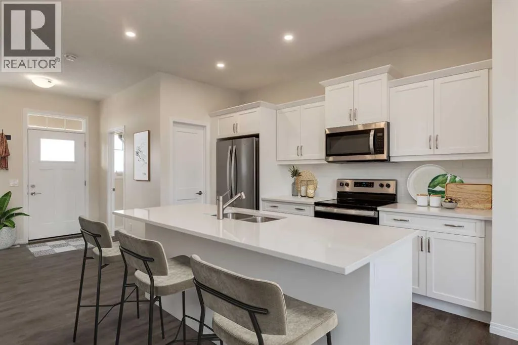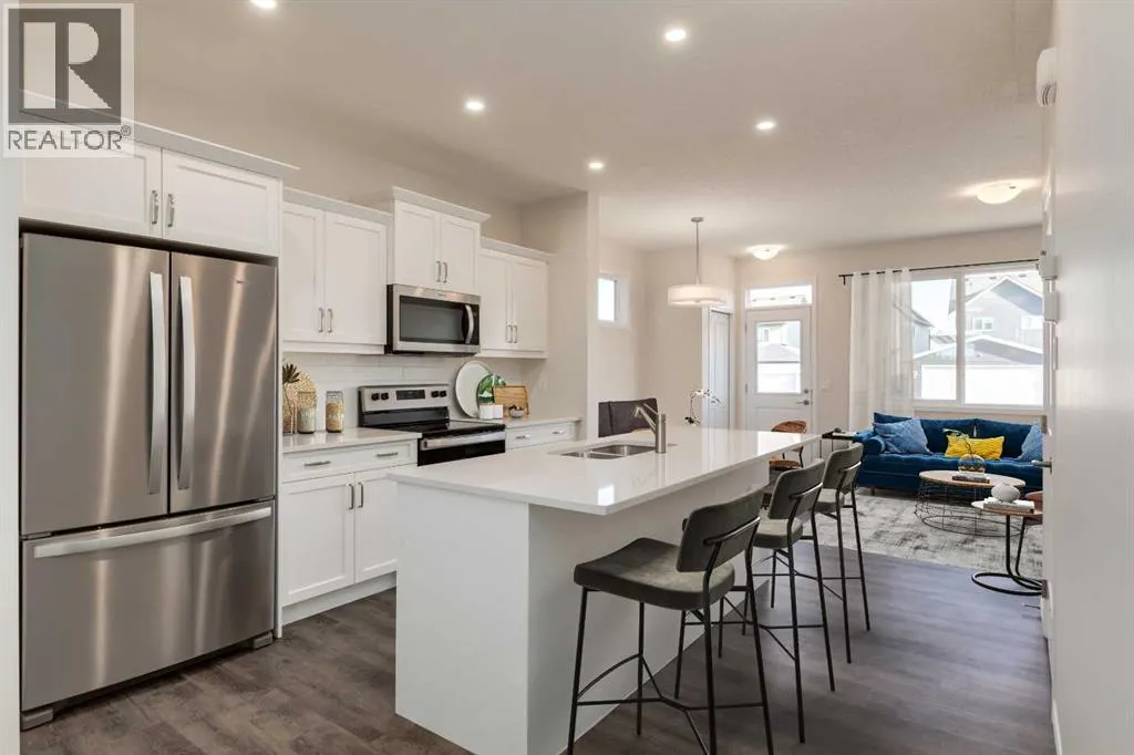 Welcome to "The Kinley", a bright, modern detached two-storey home in the sought after community of Montrose, one of High Riverâs most family-friendly communities. This open concept floor plan offers 1,255 sq. ft., 3 bedrooms, and 2.5 bathrooms, with an open layout designed to feel connected, comfortable, and easy for everyday life. Step inside and youâll immediately notice the natural light and the way the main floor is built for real family routinesâmorning breakfasts, homework at the table, and weekend hangouts that naturally flow from one space to the next. At the heart of the home, the kitchen pairs clean, timeless finishes with modern contrast including quartz countertops, classic stacked-tile backsplash, âmushroomâ coloured cabinetry, and black hardware that ties it all together. The galley-style kitchen with a large island keeps everything within reach, while a walk-in pantry makes day-to-day storage simple. One of the most unique (and practical) features is the built-in banquet bench seating in the dining area, perfect for kidsâ meals, board games, and those âeveryone pile inâ moments when friends come over. And because the main floor is oriented to the backyard, itâs easy to keep an eye on the action outside while you cook or entertain. Upstairs, the layout continues to impress with a winged bedroom design that adds privacy between roomsâideal for families with kids, guests, or a home office setup. The ownerâs suite includes a walk-in closet and a 4-piece ensuite, creating a calm retreat at the end of the day. The full basement offers a ton of future potential, think playroom now, gym or extra living space later. Outside, youâll love the west-facing yard for sunny afternoons and evening light, great for BBQs, patio time, and watching the kids play after school. Thereâs also a concrete parking pad, adding everyday convenience right from day one. And then thereâs the communityâMontrose is built for families who want more than just a house. The neighbourhood is anchored by a weaving pond system, playgrounds, walking trails, and sports courts, plus standout amenities like a shaded pergola lookout, community gardens, and tennis/pickleball courts. The community is designed so you can actually live locally, an easy walk to everyday needs (including groceries) and a pedestrian-friendly network of pathways throughout. School options are also a big plus, with designated schools easy to reach by walking or biking. If youâre looking for a home thatâs stylish, functional, and set in a community where kids can grow up with parks, pathways, and neighbours close by, this might just be the one. **Photos are from the show home/previous builds to demonstrate quality of construction & finishes and may not be an exact representation of this home** (id:27476)