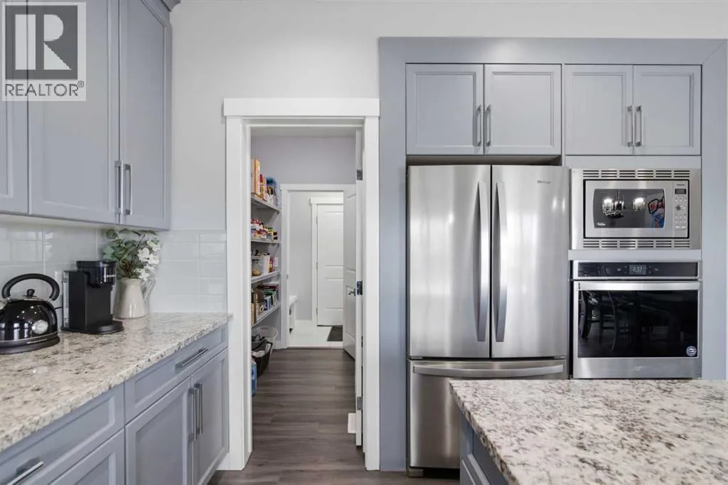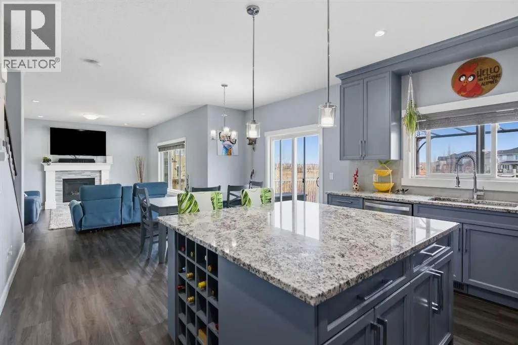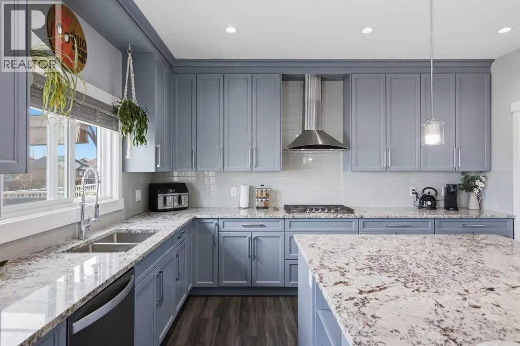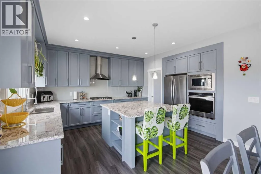 ***OPEN HOUSE Sunday March 22 from 2pm-4pm***Come view this High River detached 2200 sq ft home, with a fully developed Walk Out basement adding an additional 1000 sq ft of living space. Beautifully appointed 5-bedroom, 4-bath home is in like-new condition and perfectly situated at the end of a quiet cul-de-sac, backing onto a tranquil pond and park in the community of Montrose. Designed to maximize natural light and picturesque views, the kitchen, living room, dining room, primary suite, and walkout level all overlook the water. High-quality finishes are showcased throughout, including durable laminate floors, granite countertops, custom tile, 9' ceilings, a striking 40" wide staircase, and premium cabinetry and woodwork throughout. The chefâs kitchen features a large island, walk-through pantry, and built-in high-end stainless-steel appliances with a gas cooktop. The thoughtful layout includes a private main-floor office, bright bonus room, second-floor laundry, and a well-designed mudroom. Outdoor living is exceptional with an oversized 22' deck and a poured patio on the walkout level. Set on a large pie-shaped, fully fenced lot, this home offers luxury, privacy, and an unbeatable location. Close to schools and shopping, come check out your new home today. (id:27476)