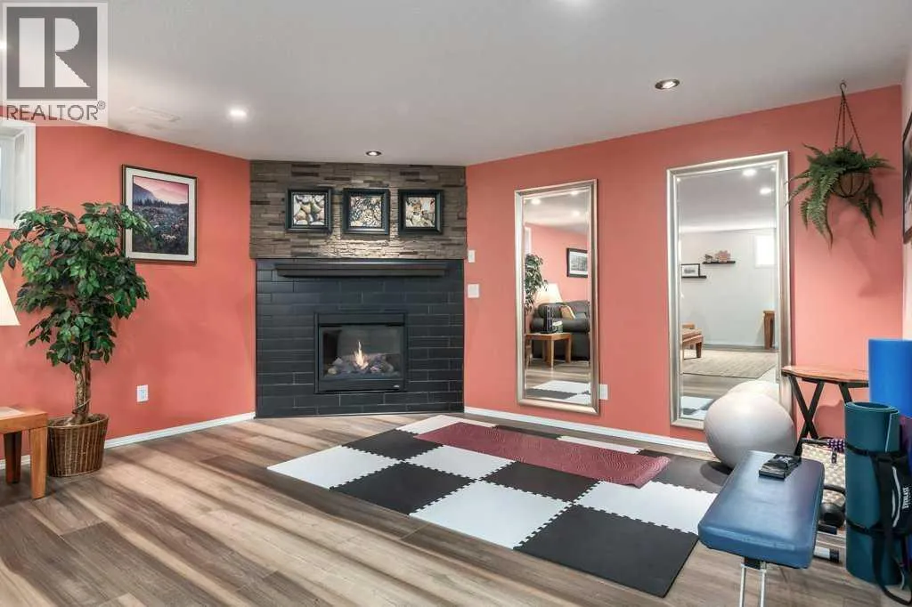 This immaculate fully finished villa backs onto a lovely big park and is oriented to the South and West for maximum natural light. It is 1,282 sq ft in excellent condition and is impeccably clean. The home is beautifully decorated with all hard surface flooring in the main areas. The kitchen has quartz counters, undercounter lighting, stainless steel appliances, clean white tiles, a pantry and lots of natural light. The living and dining room have a vaulted ceiling, and the living room has a beautiful stone fireplace. A spacious primary bedroom is 17â x 11â and has a walk-in closet and an ensuite with a stall shower. Also on the main floor is a laundry room with cupboards, a second full bathroom, and a second bedroom or den. Downstairs is fully finished, including a big family room with a second fireplace, a full bathroom, a large bedroom, and lots of storage. There is central air conditioning, and the poly-b plumbing in the home has been replaced. The enlarged 16â x 10â covered deck is shady and private and has been rebuilt with maintenance free material. Click the multimedia tab for an interactive virtual 3D tour, additional photos and floor plans. (id:27476)