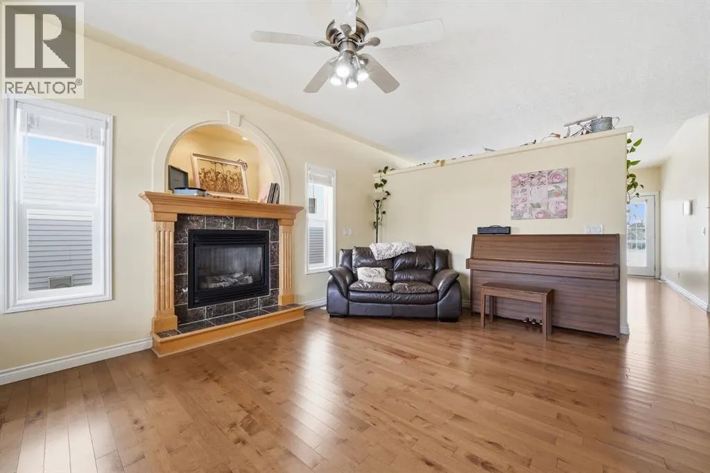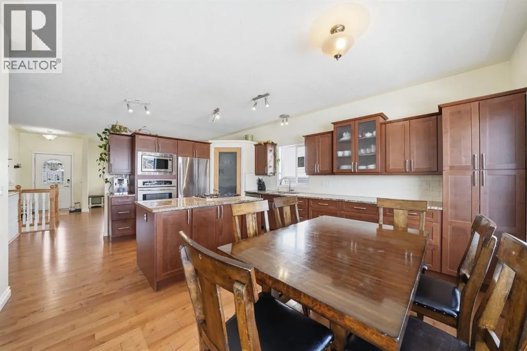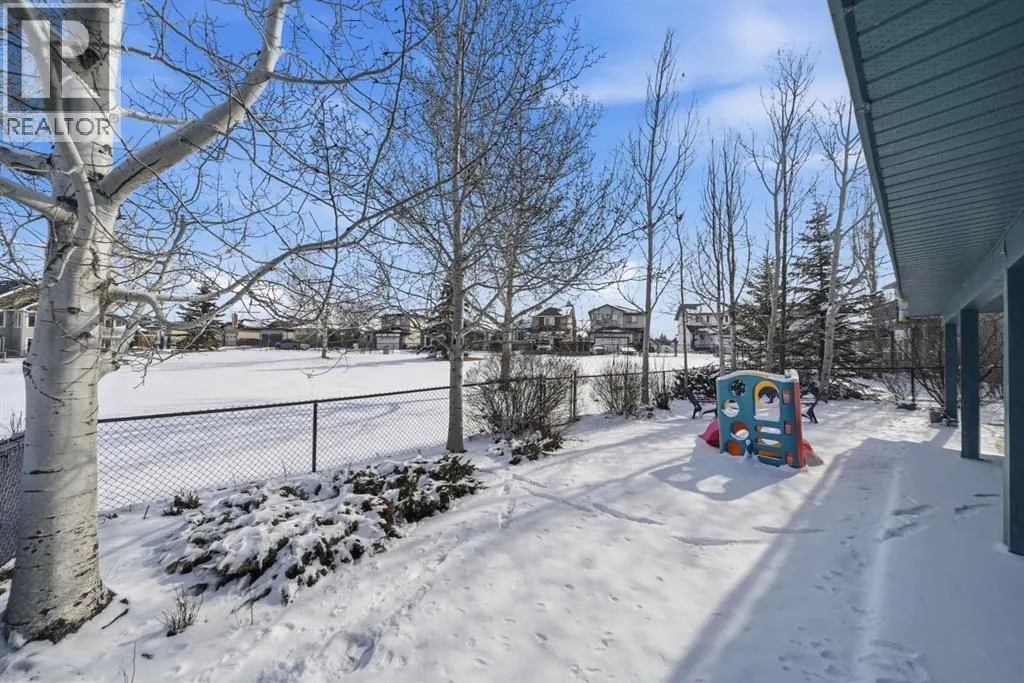 Welcome to this fully finished 4 bedroom, 3 bathroom walkout bungalow backing onto green space with a playground. This well-designed home offers 2 bedrooms up and 2 down, plus a dedicated office in the basement. The main floor features hardwood flooring and an oversized living room and kitchen area, complete with granite countertops, built-in oven and microwave, and a large island with countertop stove. The primary bedroom includes a spacious 4 piece ensuite, a great sized walk-in closet, and direct access to the full-width rear deck, which is also accessible from the kitchen, creating a great indoor-outdoor flow. The walkout basement opens to a poured concrete patio with a hot tub included, making the backyard space functional and private. This home is equipped with a solar system designed to significantly offset electricity costs, with current usage resulting in minimal to no power bills (details available). A great opportunity in a family-friendly location with direct access to green space. (id:27476)