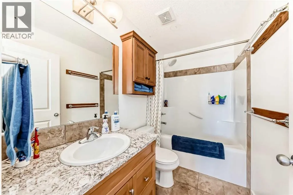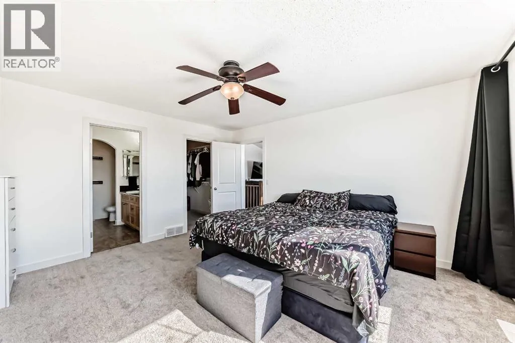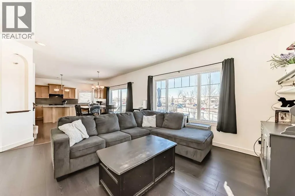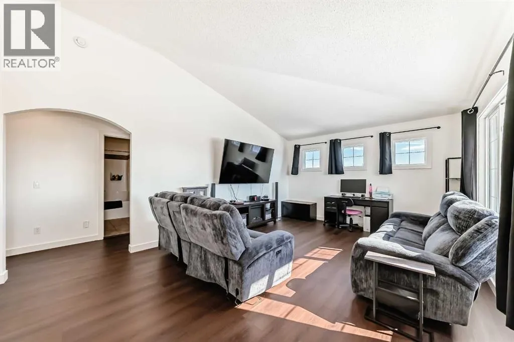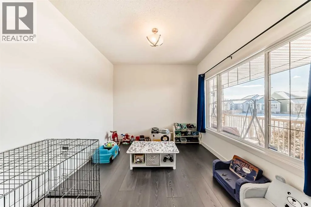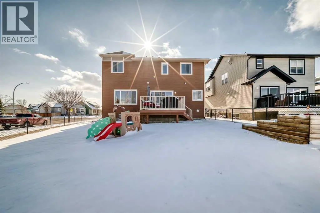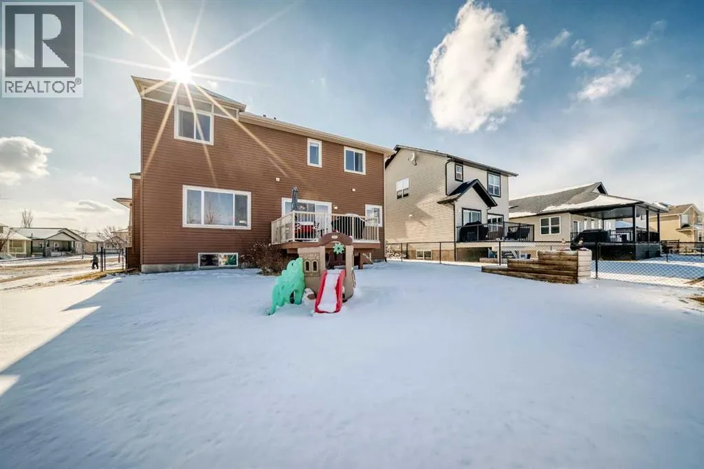 Welcome to this beautifully updated, freshly painted and AIR CONDITIONED former show home in Highwood Village, perfectly located on a quiet street and backing directly onto a park.Set on a large corner lot with a huge yard, this home offers direct access to a playground, bike pump track, and spray park â an ideal setup for families. The school bus conveniently stops right outside the front door.Inside, the home is bright and inviting with an abundance of windows throughout. The main floor features a sunny front flex room, a functional mudroom off the double attached garage, and an open-concept living space anchored by a well-appointed kitchen with stone countertops, a large pantry, and extra windows.Upstairs includes three bedrooms, convenient upper laundry, and a spacious bonus room with vaulted ceilings. The primary suite offers a generous layout, a double vanity, soaker tub, separate shower, and a large organized closet.Recent updates include fresh paint and new flooring throughout, with carpet only on the stairs and in the bedrooms.Additional features include air conditioning, irrigation system blown out and ready to go, water softener, humidifier, and a wrap-around porch. A rare opportunity to own a move-in ready home in a family-focused community with parks, pathways, and golf nearby, along with easy access to Hwy 2 to have you on your way to your next adventure. (id:27476)