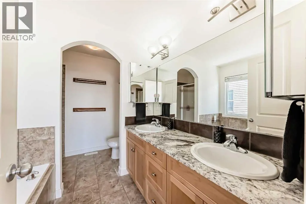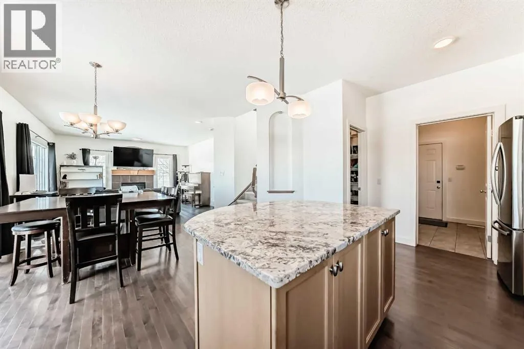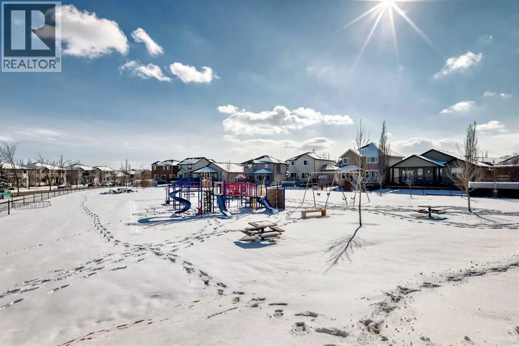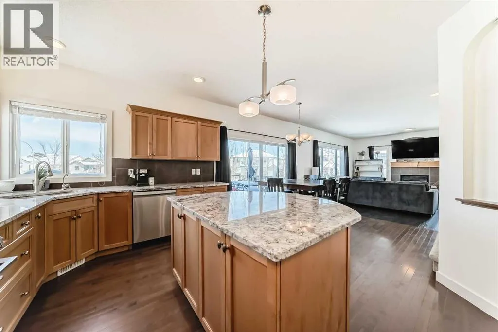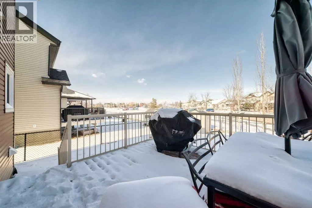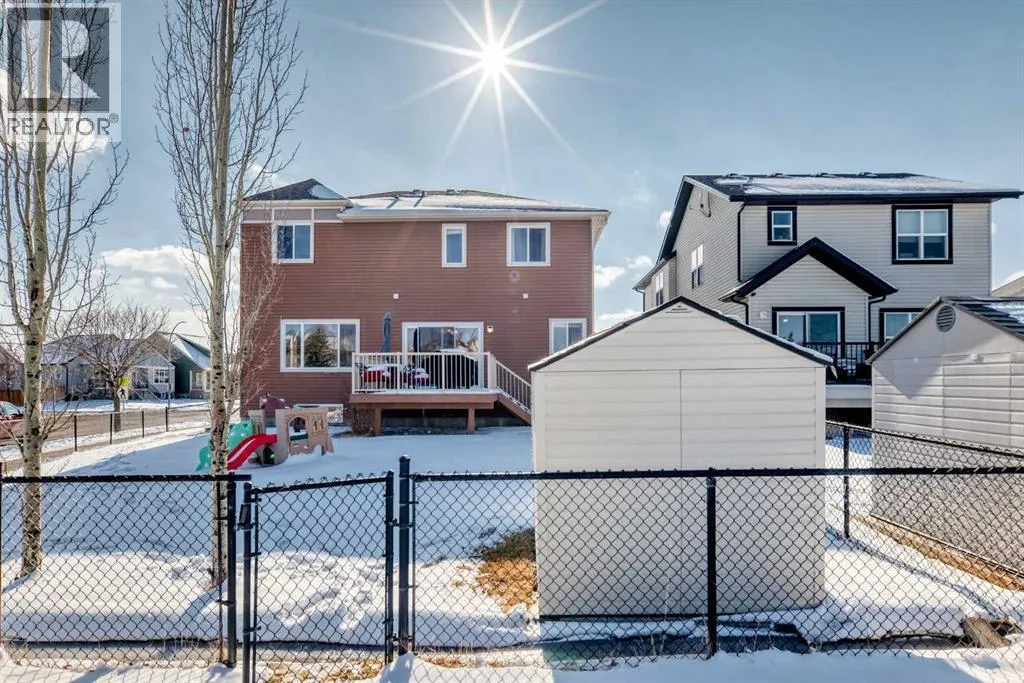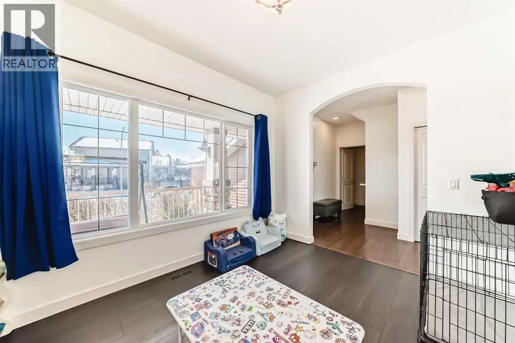 Welcome to this beautifully updated, freshly painted and AIR CONDITIONED former show home in Highwood Village, perfectly located on a quiet street and backing directly onto a park.Set on a large corner lot with a huge yard, this home offers direct access to a playground, bike pump track, and spray park â an ideal setup for families. The school bus conveniently stops right outside the front door.Inside, the home is bright and inviting with an abundance of windows throughout. The main floor features a sunny front flex room, a functional mudroom off the double attached garage, and an open-concept living space anchored by a well-appointed kitchen with stone countertops, a large pantry, and extra windows.Upstairs includes three bedrooms, convenient upper laundry, and a spacious bonus room with vaulted ceilings. The primary suite offers a generous layout, a double vanity, soaker tub, separate shower, and a large organized closet.Recent updates include fresh paint and new flooring throughout, with carpet only on the stairs and in the bedrooms.Additional features include air conditioning, irrigation system blown out and ready to go, water softener, humidifier, and a wrap-around porch. A rare opportunity to own a move-in ready home in a family-focused community with parks, pathways, and golf nearby, along with easy access to Hwy 2 to have you on your way to your next adventure. (id:27476)